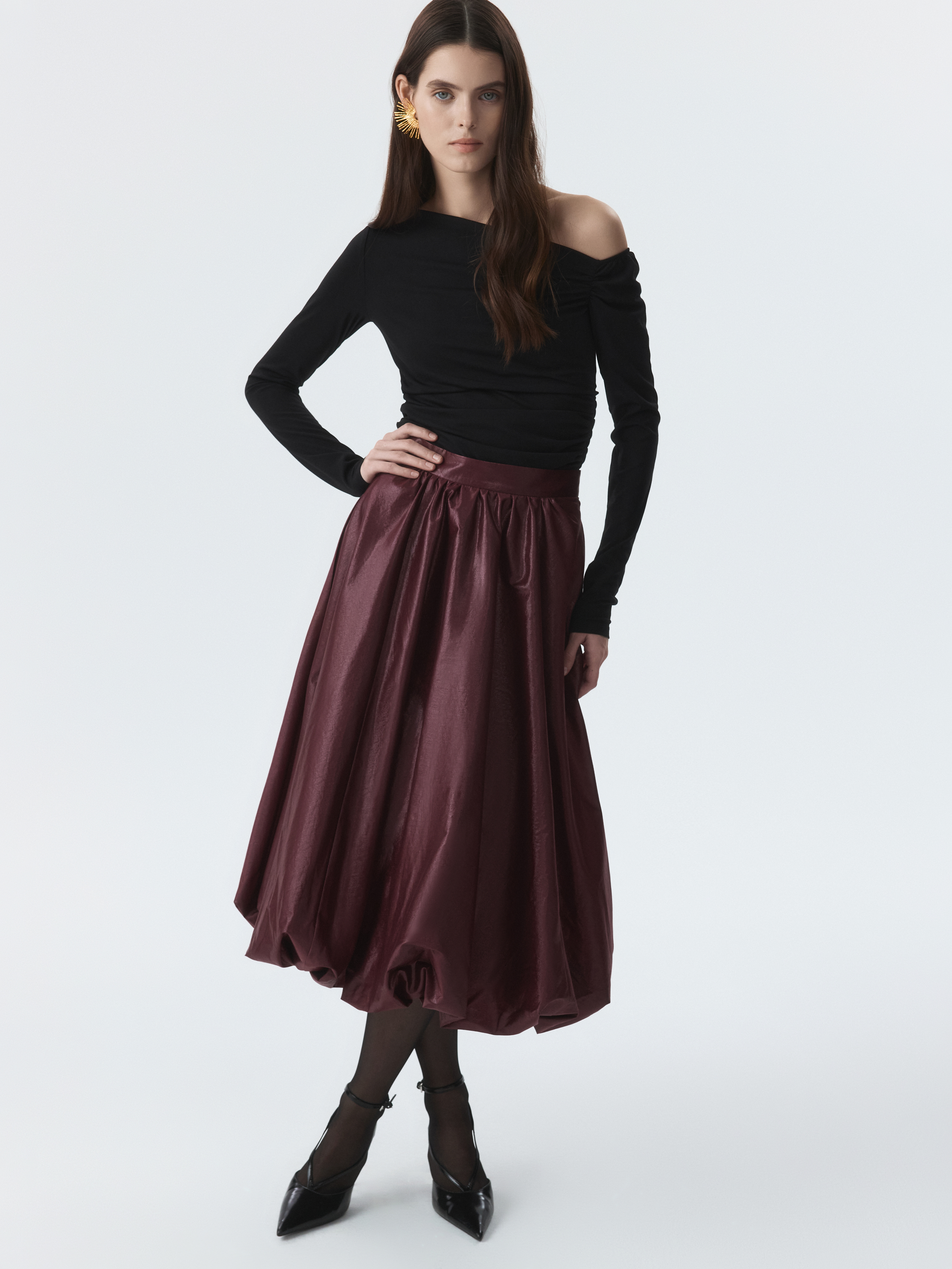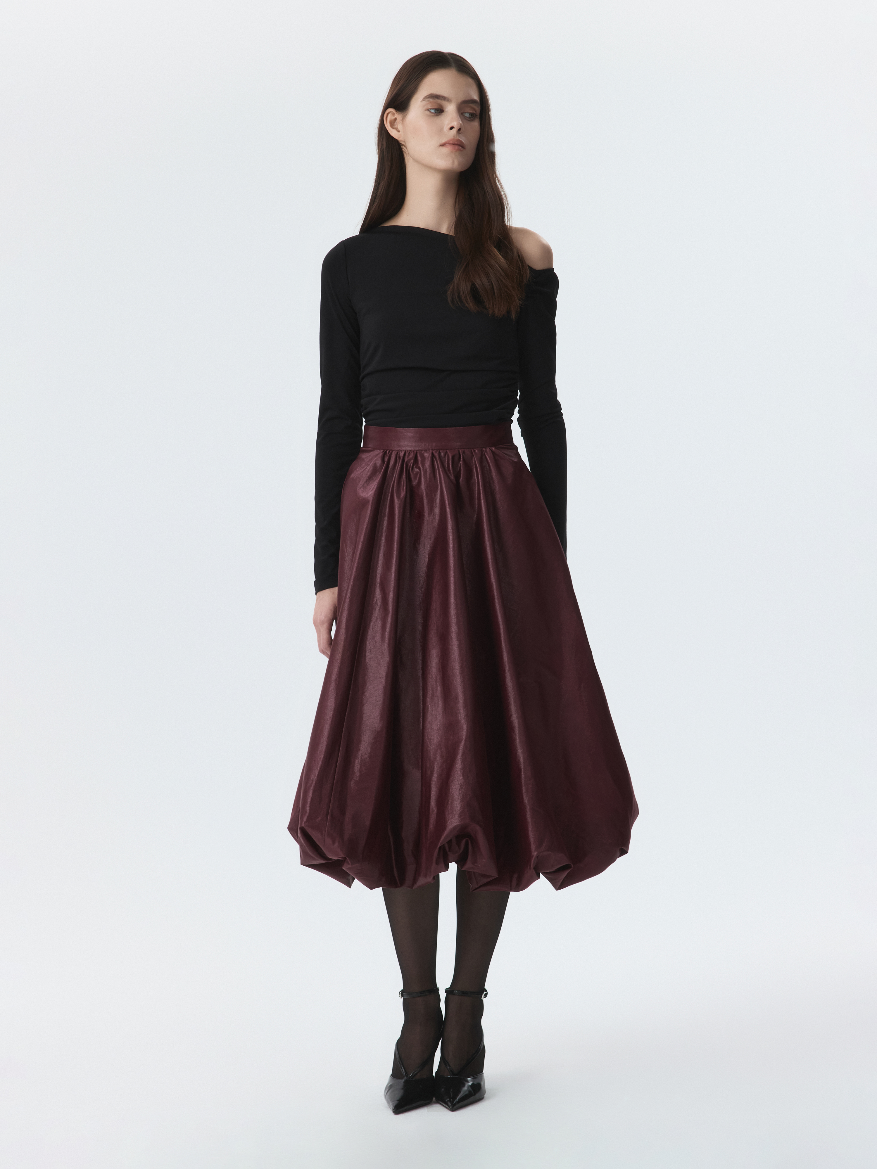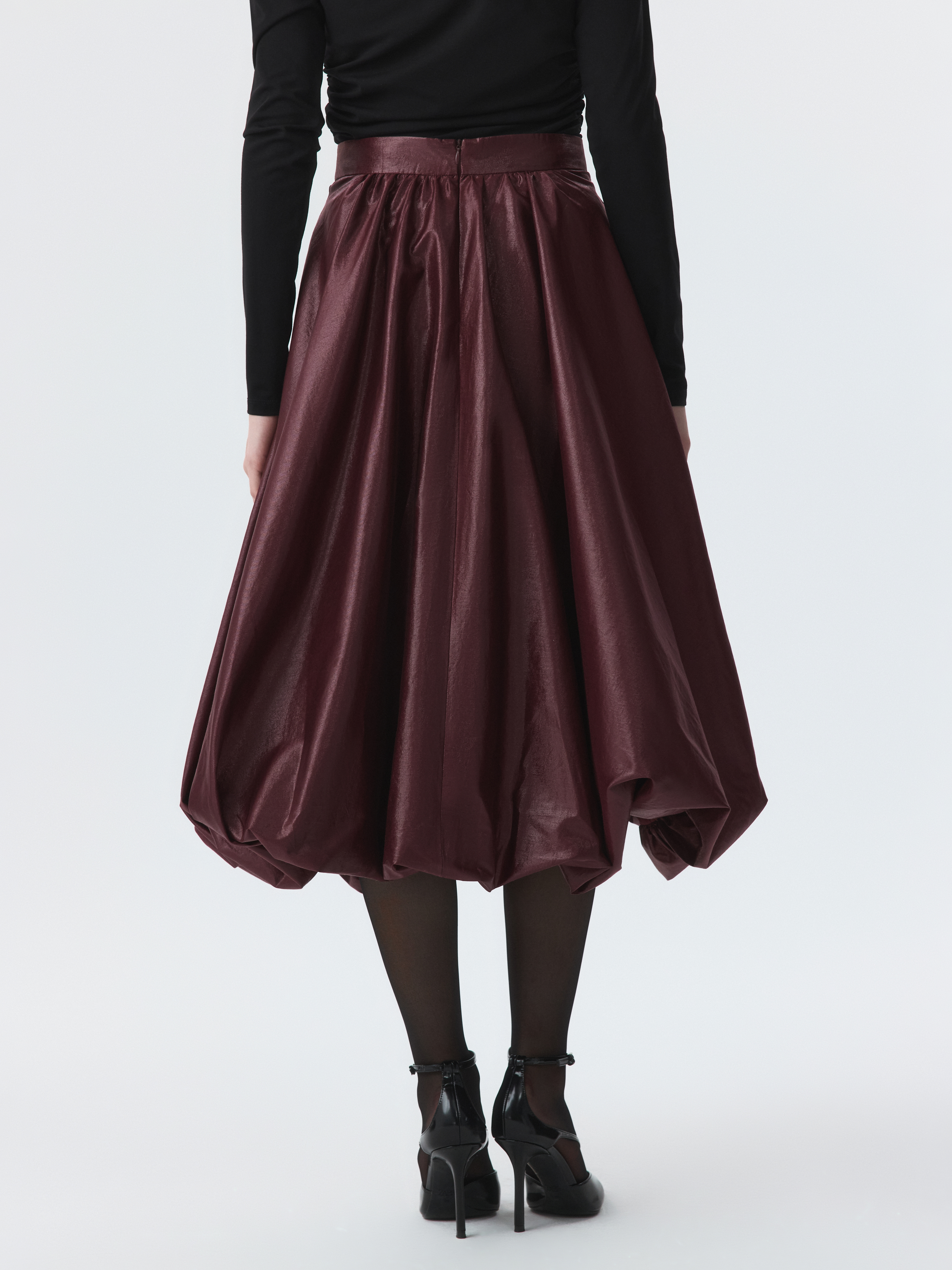 Юбка-баллон – идеальный выбор для праздничных поводов, которая станет главным акцентом в образе. Тонкий гладкий текстиль на основе хлопка хорошо держит пышную форму за счет подкладки, а блеск ткани подчеркивает торжественность момента. Боковые карманы – функциональная деталь.