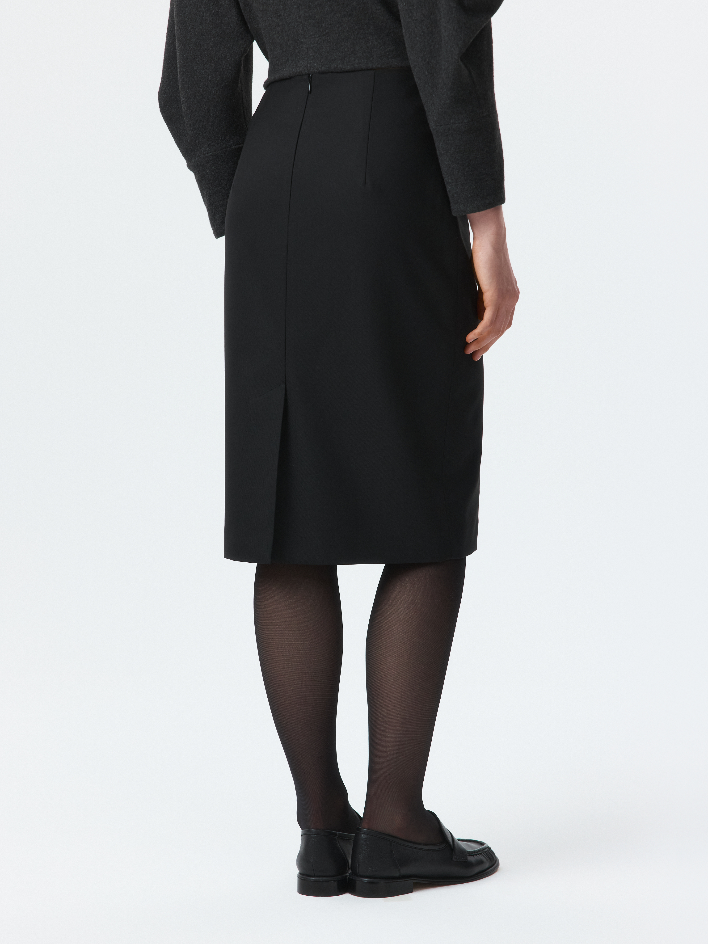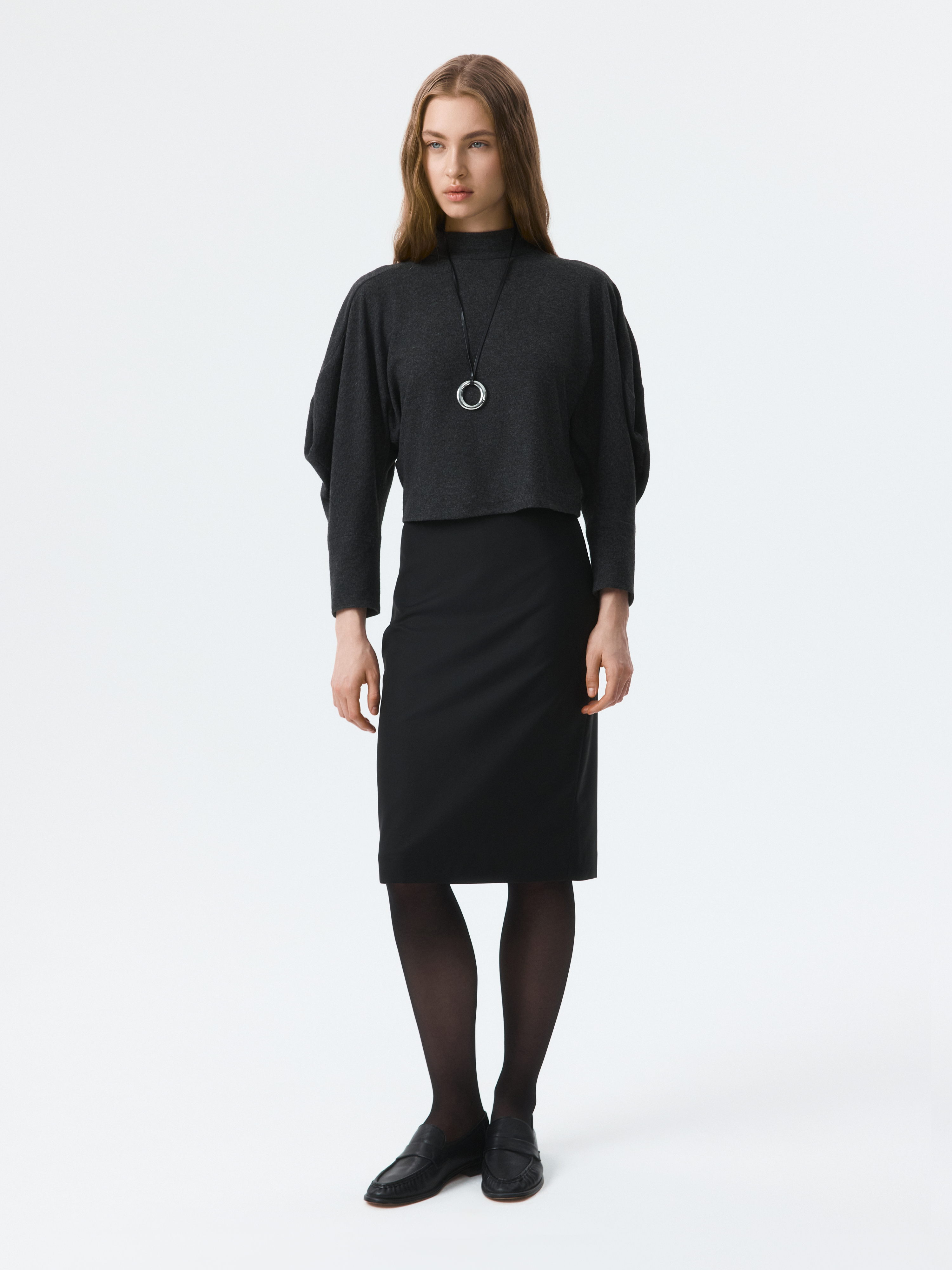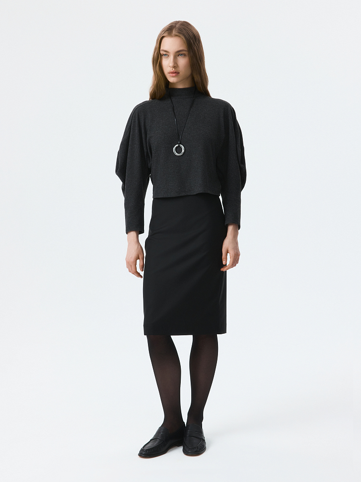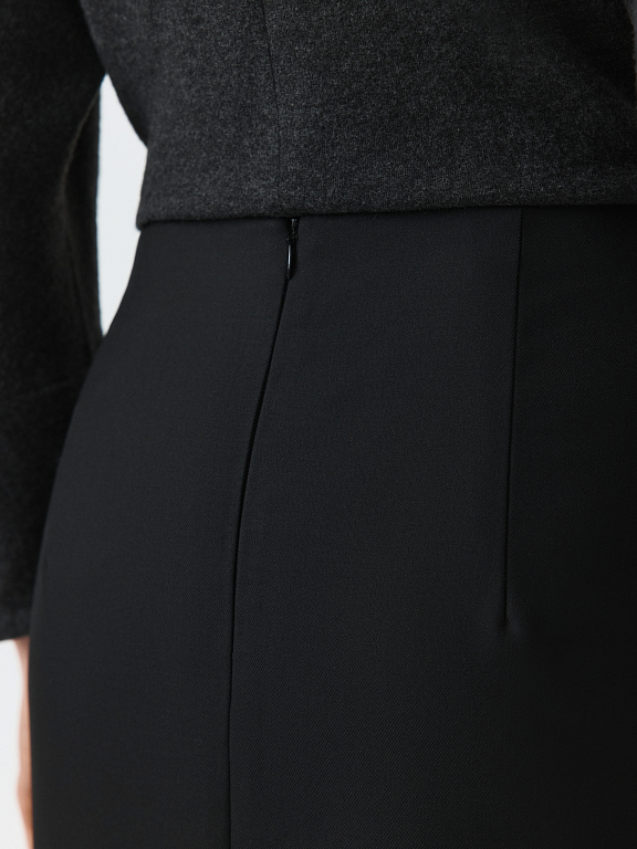 Костюмная юбка в длине миди – универсальная база для офиса и стилизаций на каждый день. Плотный текстиль из поливискозы не тянется и не требует особого ухода, а благодаря гладкой подкладке комфортно прилегает к телу. Шлица не ограничивает свободу шага.