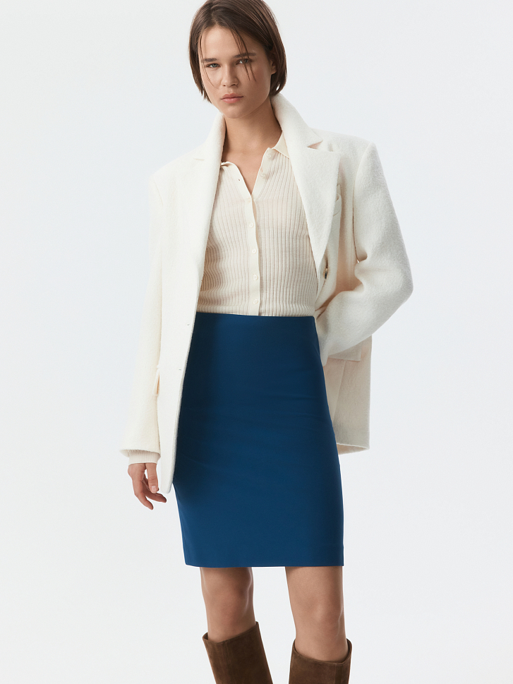 Короткая костюмная юбка – для образов без лишней строгости, но с характером. В меру плотный текстиль из поливискозы не тянется, подчеркивая силуэт, а благодаря гладкой подкладке комфортно прилегает к телу. Такая модель стильно сочетается как с базовым трикотажем, так и с классическими рубашками.