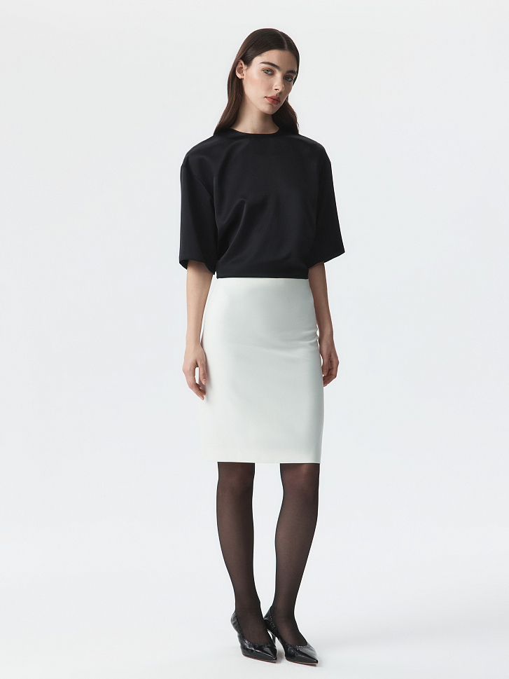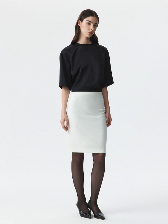 Лаконичная мини-юбка станет ключевым элементом в гардеробе. Плотный костюмный текстиль из поливикозы не тянется и комфортно прилегает благодаря гладкой подкладке. Лучшим дополнением к изделию будет жакет из комплекта.