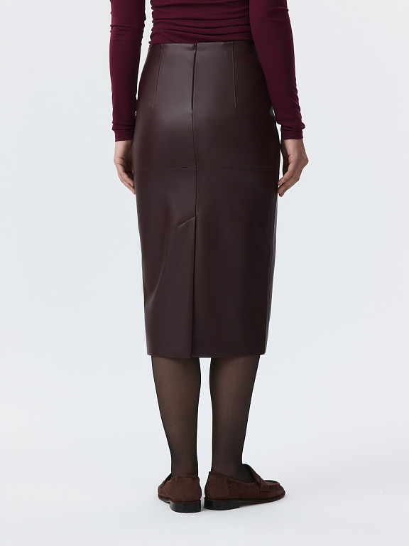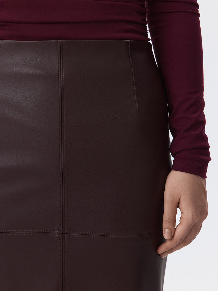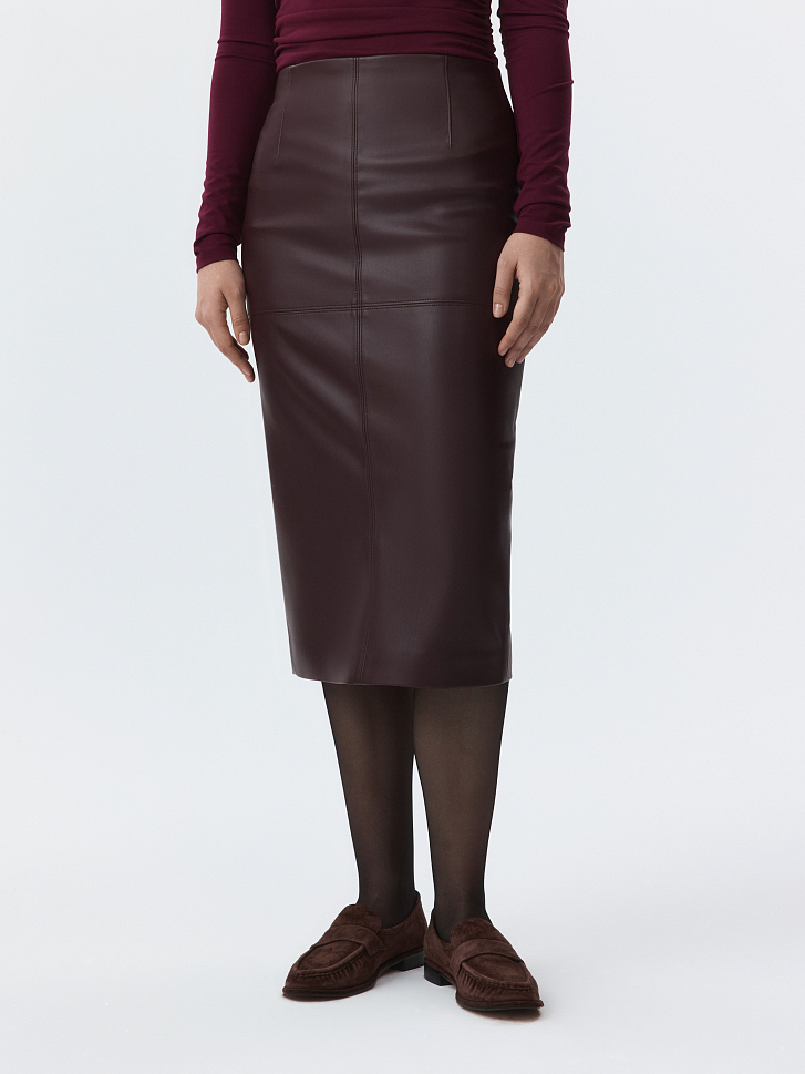 Юбка-карандаш выручит во всех ситуациях — от офисных будней до светских мероприятий. Плотная экокожа с матовым блеском хорошо держит форму и для комфорта продублирована гладкой подкладкой. Модель прямого кроя сделает силуэт визуально более точеным.