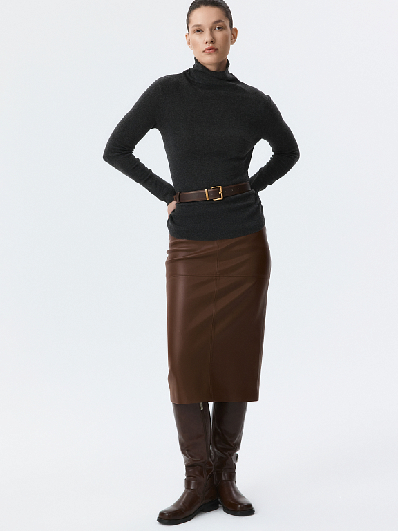 Юбка-карандаш выручит во всех ситуациях — от офисных будней до светских мероприятий. Плотная экокожа с матовым блеском хорошо держит форму и для комфорта продублирована гладкой подкладкой. Модель прямого кроя сделает силуэт визуально более точеным.