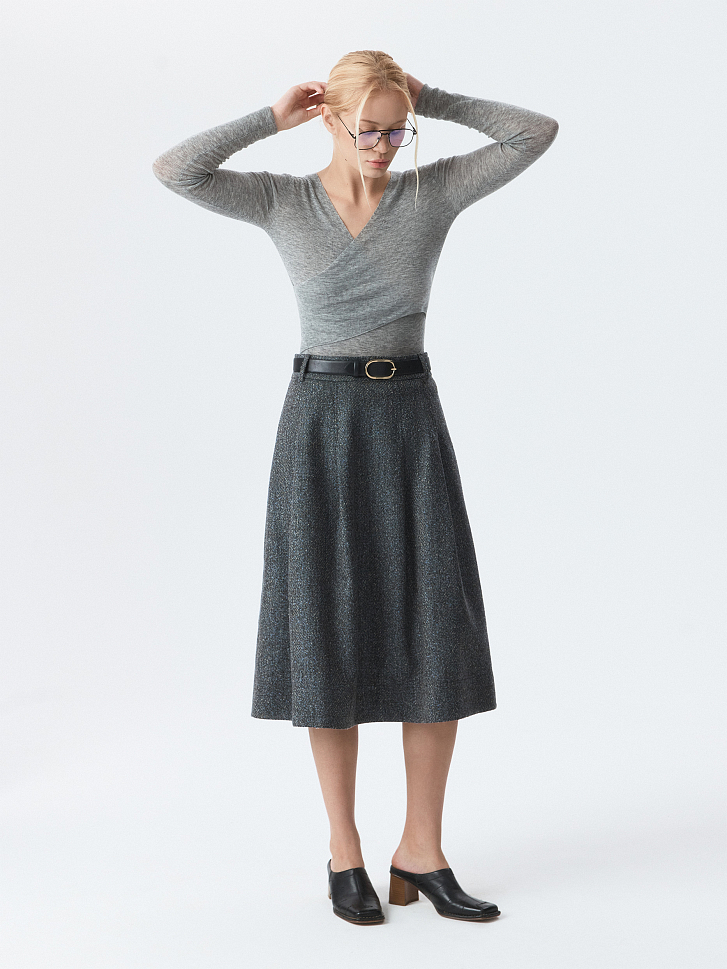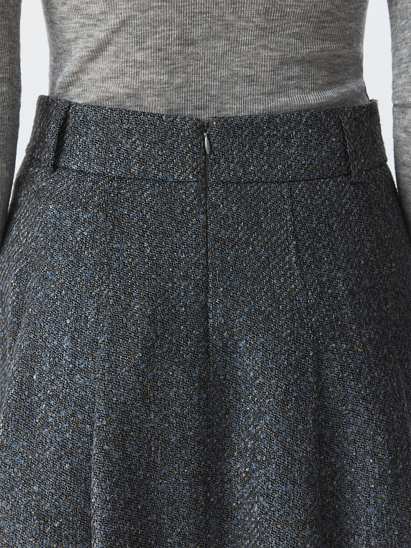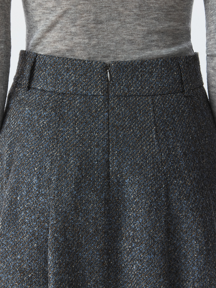Юбка-миди с защипами создаст одновременно элегантный и уютный образ. Плотный текстиль букле не тянется и хорошо держит форму складок, а гладкая подкладка дарит комфортное прилегание. Расклешенная модель обеспечивает свободу движений и подчеркивает архитектуру кроя.