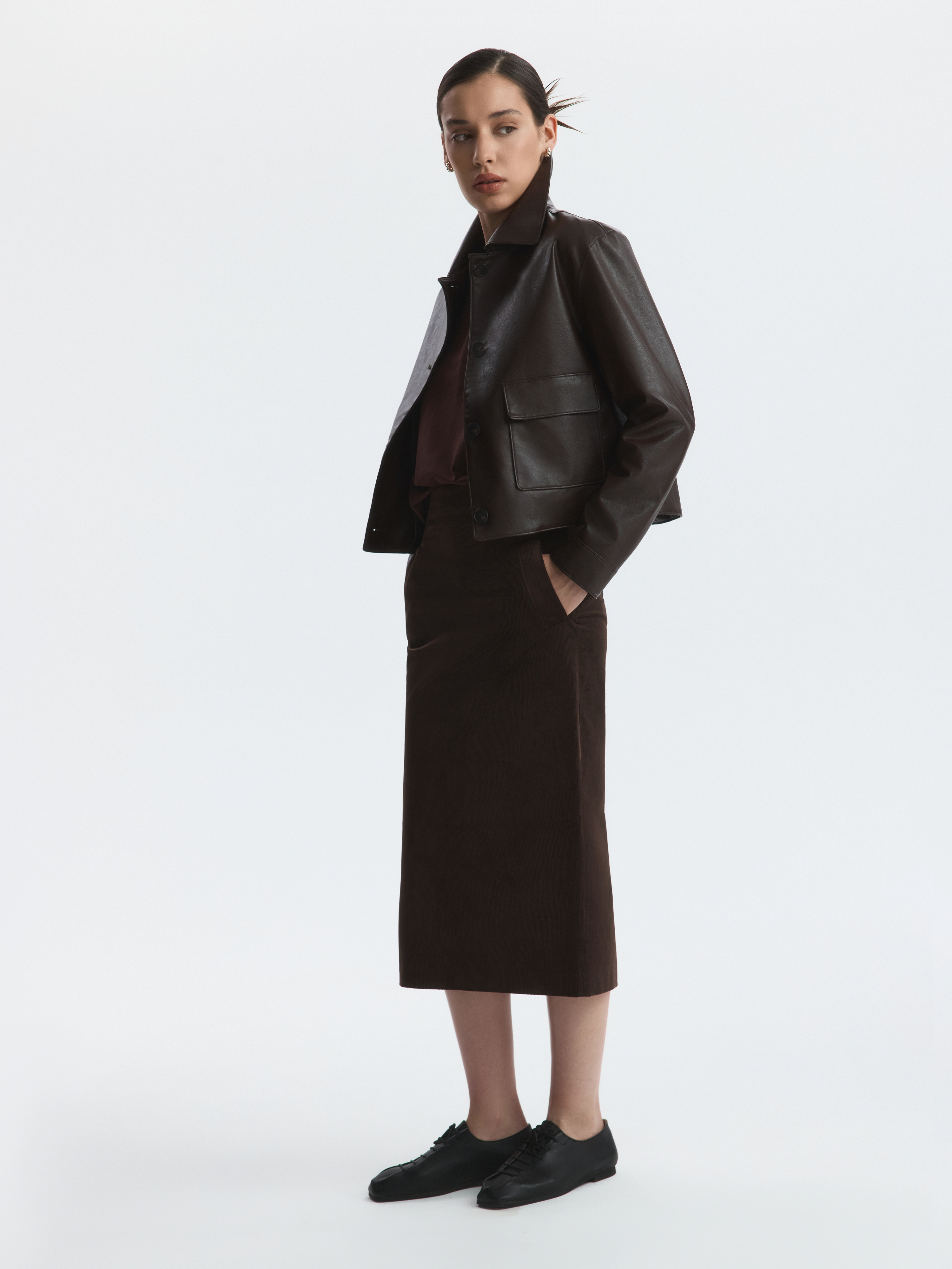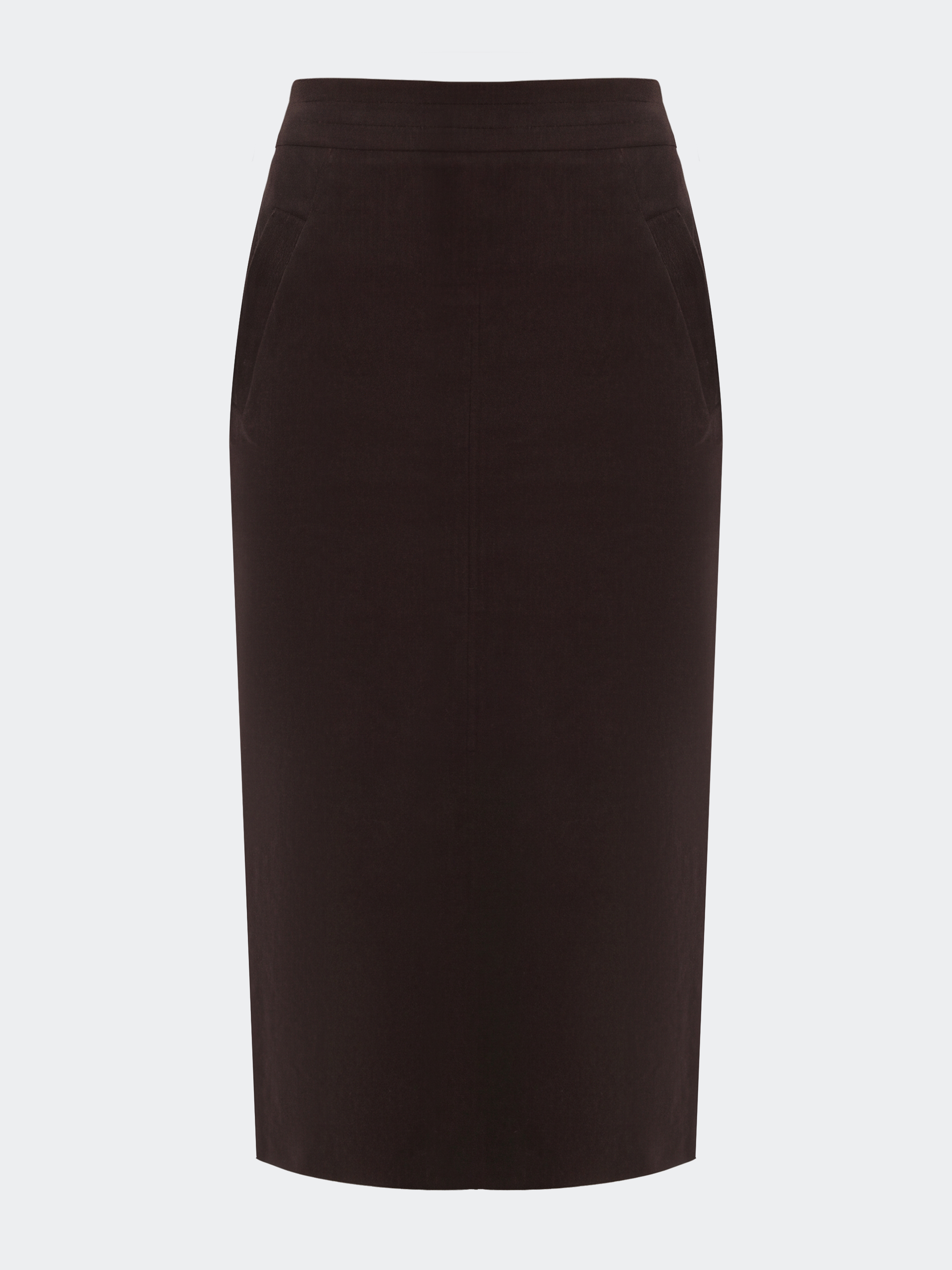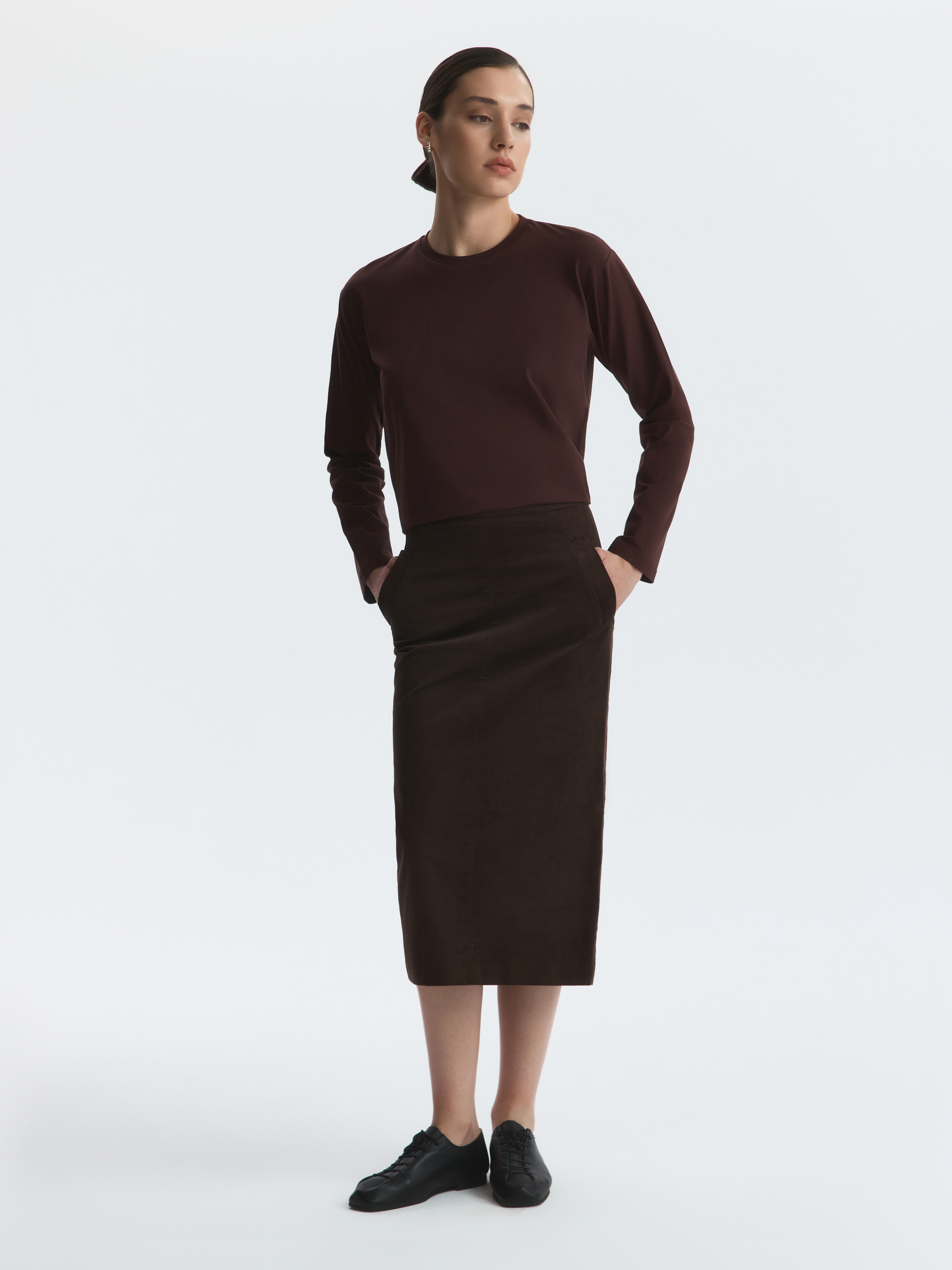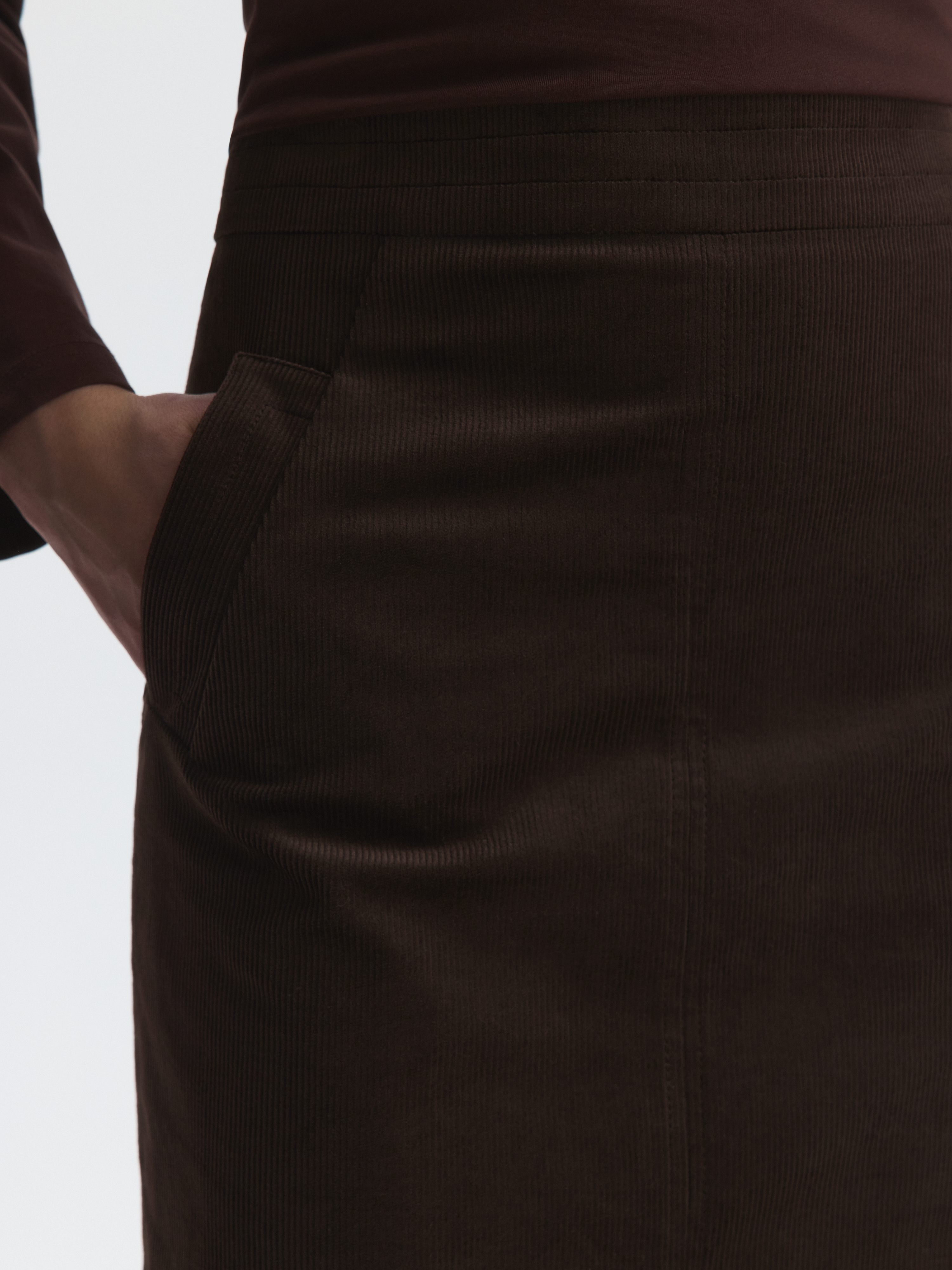 Вельветовая юбка – идеальное решение для гардероба на каждый день или в офис. Хлопковый текстиль средней плотности не тянется, мягко прилегает и комфортно сидит по фигуре. При составлении образа модель можно сочетать с жакетом из такой же ткани.