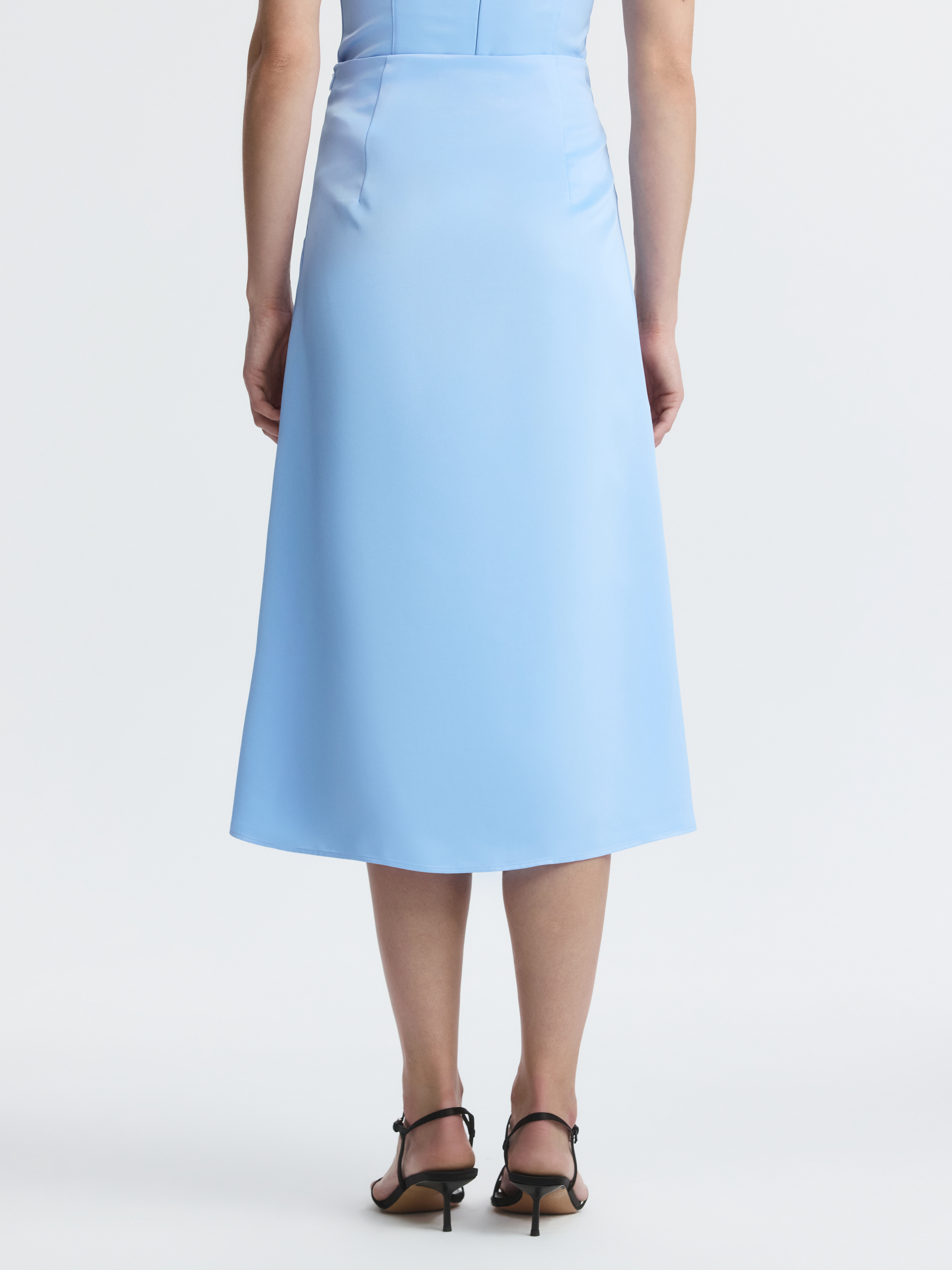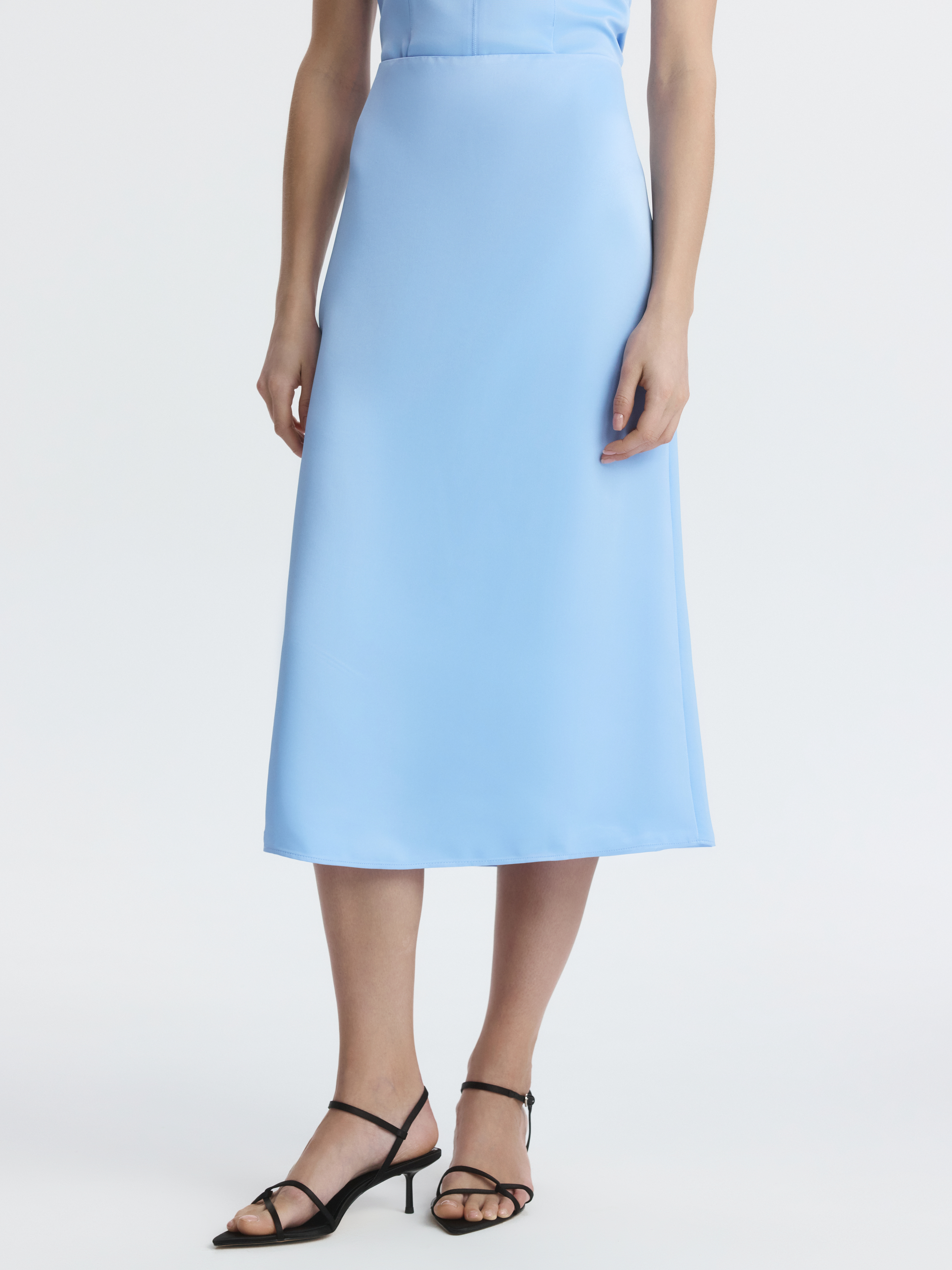 Атласная юбка подойдет как для повседневных образов, так и для особых случаев. Плотный шелковистый текстиль красиво струится вдоль тела, а благодаря шифоновой подкладке менее электризуется.