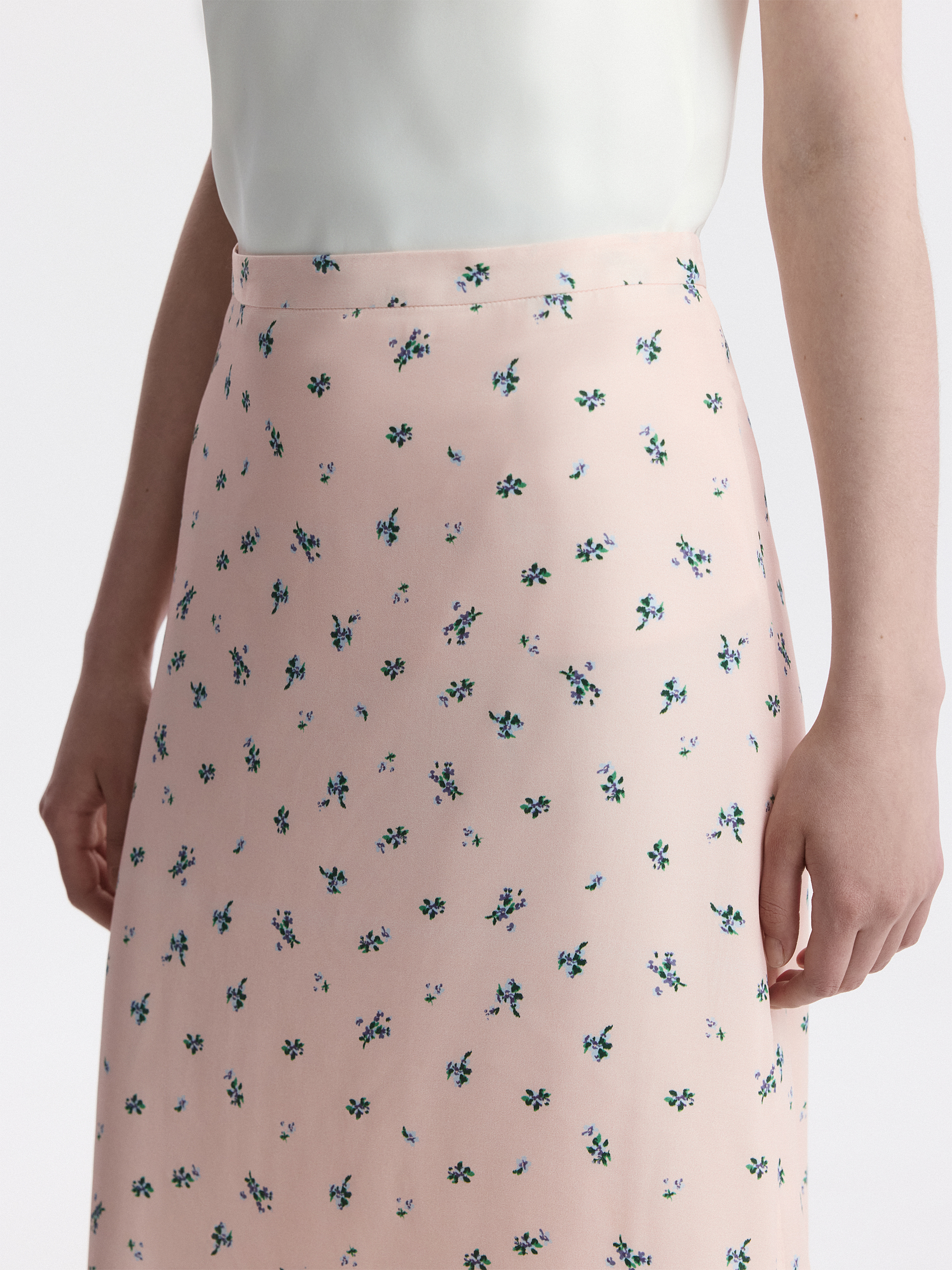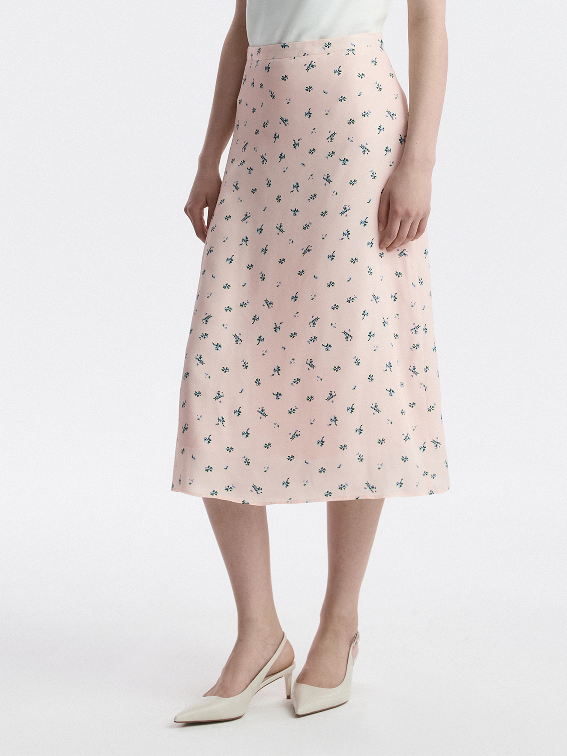 Юбка-миди с цветочным принтом добавит романтичное настроение в образы. Модель сшили из гладкой струящейся вискозы с комфортной подкладкой, которая не просвечивает. Трапециевидный крой дарит свободу движений.