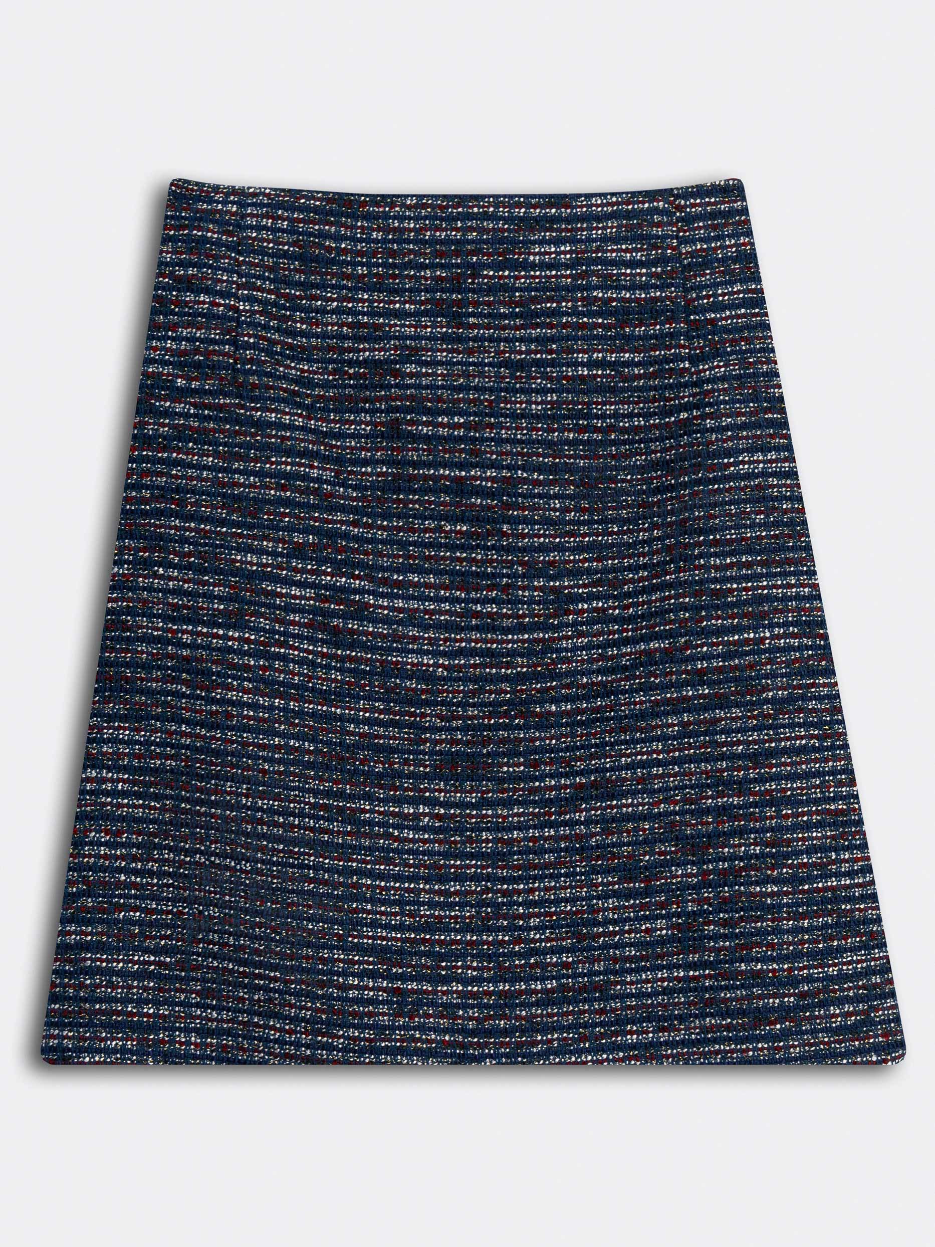 Юбка длины мини из буклированной ткани. Высокая посадка, приталенный крой, подкладка. Застегивается на потайную молнию.