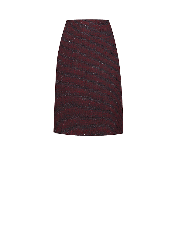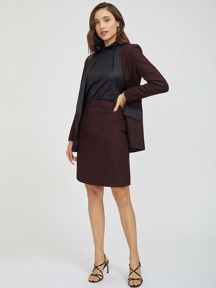 Короткая юбка из ткани букле с люрексом и пайетками. Высокая посадка, облегающий крой, подкладка. Застегивается на потайную молнию сзади.