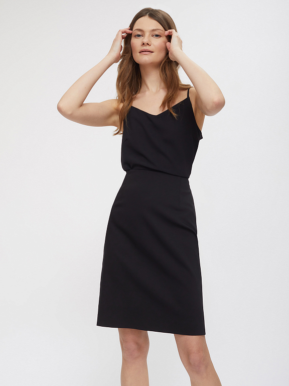 Однотонная юбка длины мини, выполненная из смесового хлопка. Прямой крой, высокая посадка, подкладка, застежка на молнию.