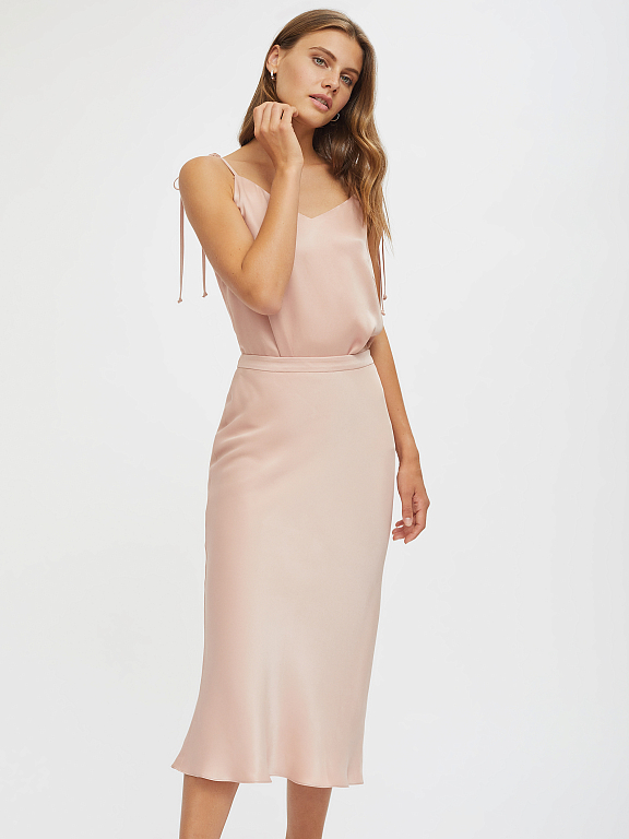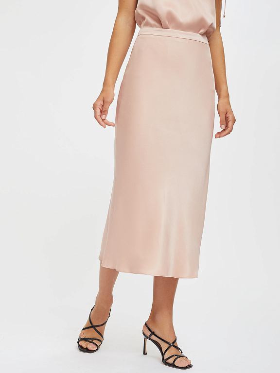 Однотонная юбка из струящейся вискозы. Высокая посадка, втачной пояс, подклад.