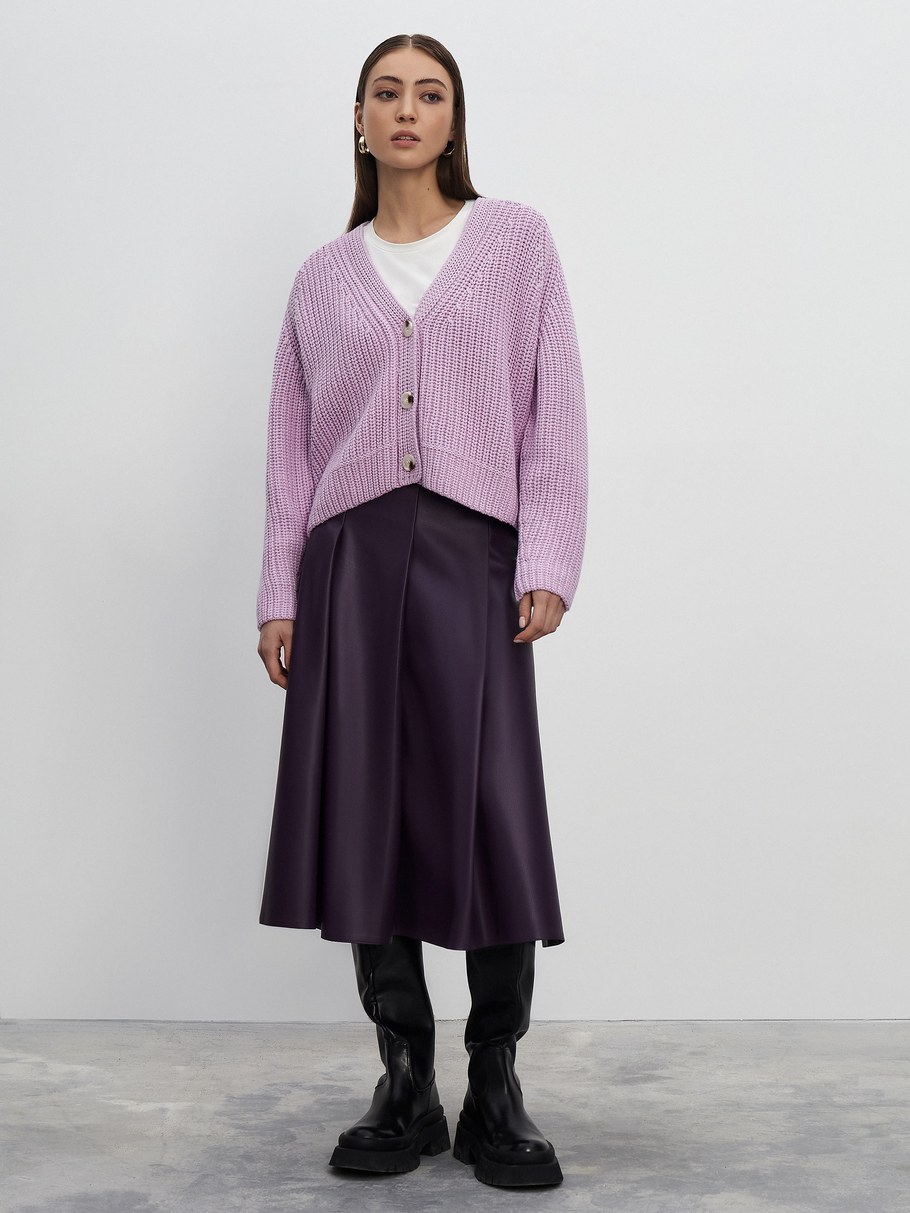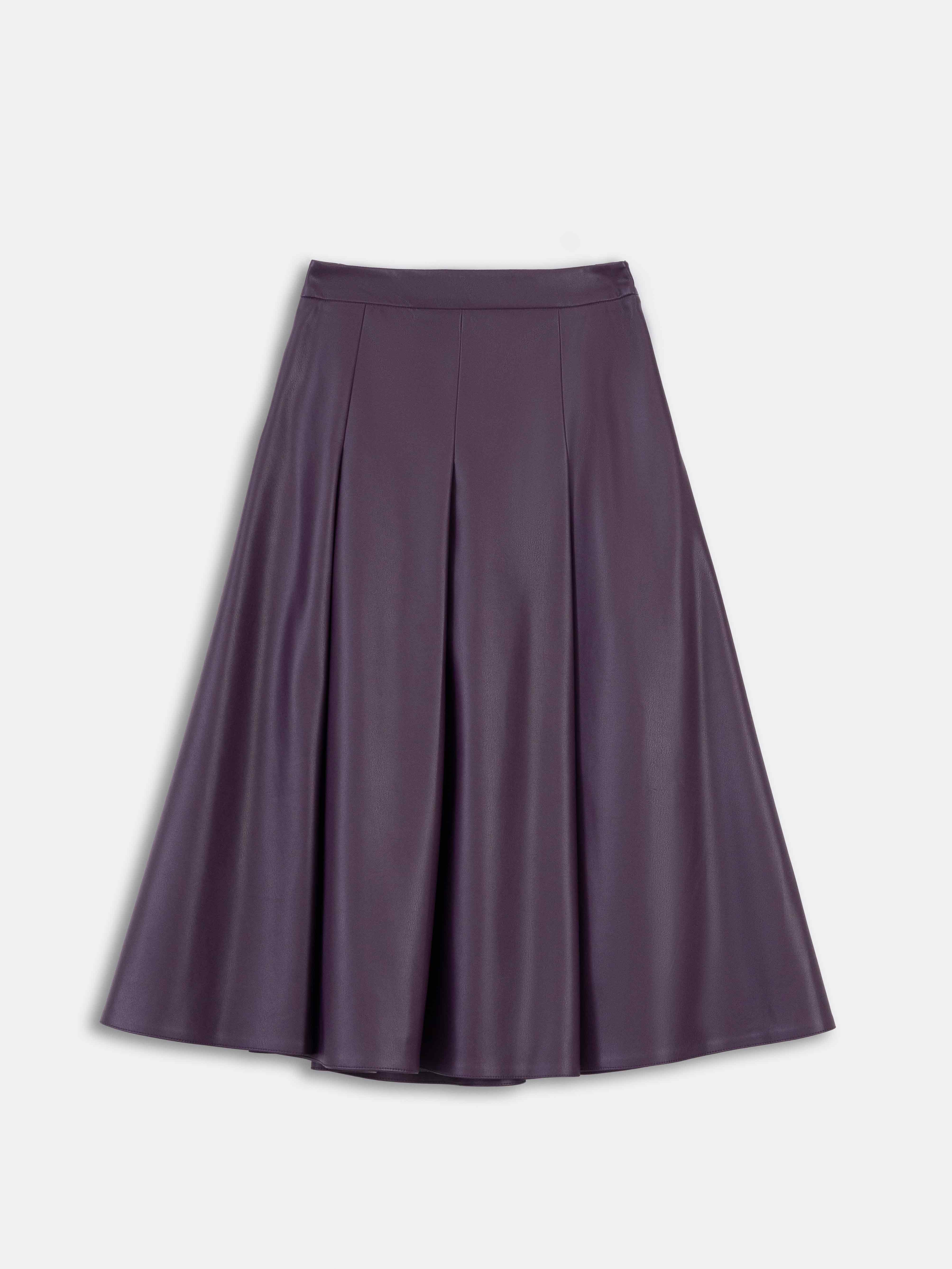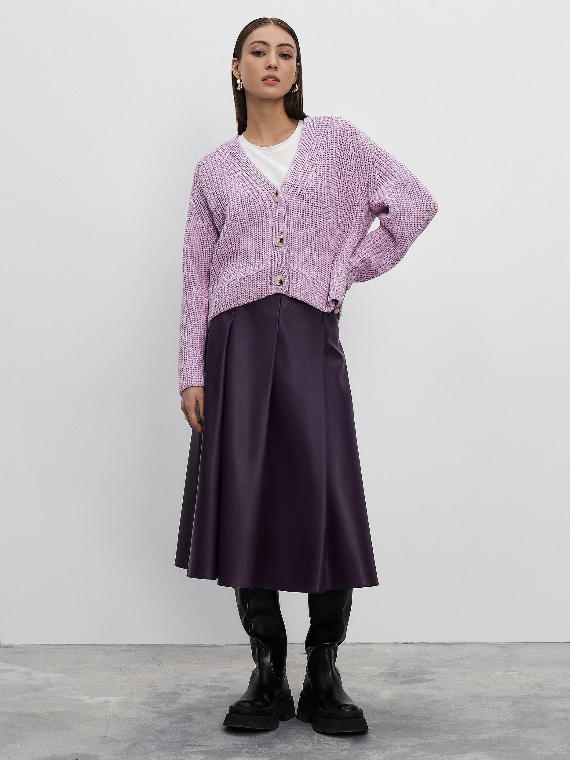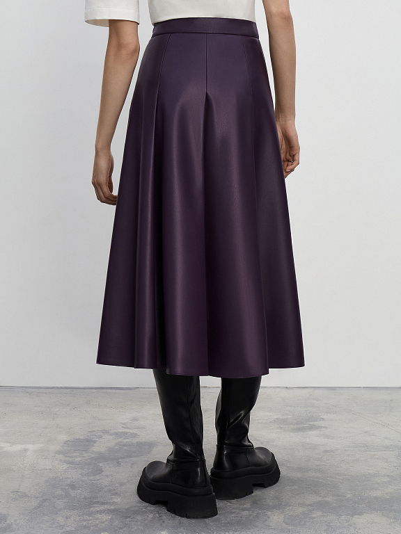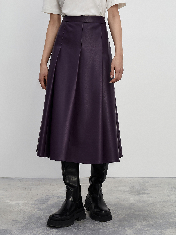 Юбка из экокожи легко впишется в гардероб каждой девушки. Силуэт-солнце и мягкие складки добавят легкости. Такой юбкой легко разбавить базовый образ благодаря ее эффектному материалу. Сочетайте с блузами, топами и объемными джемперами.