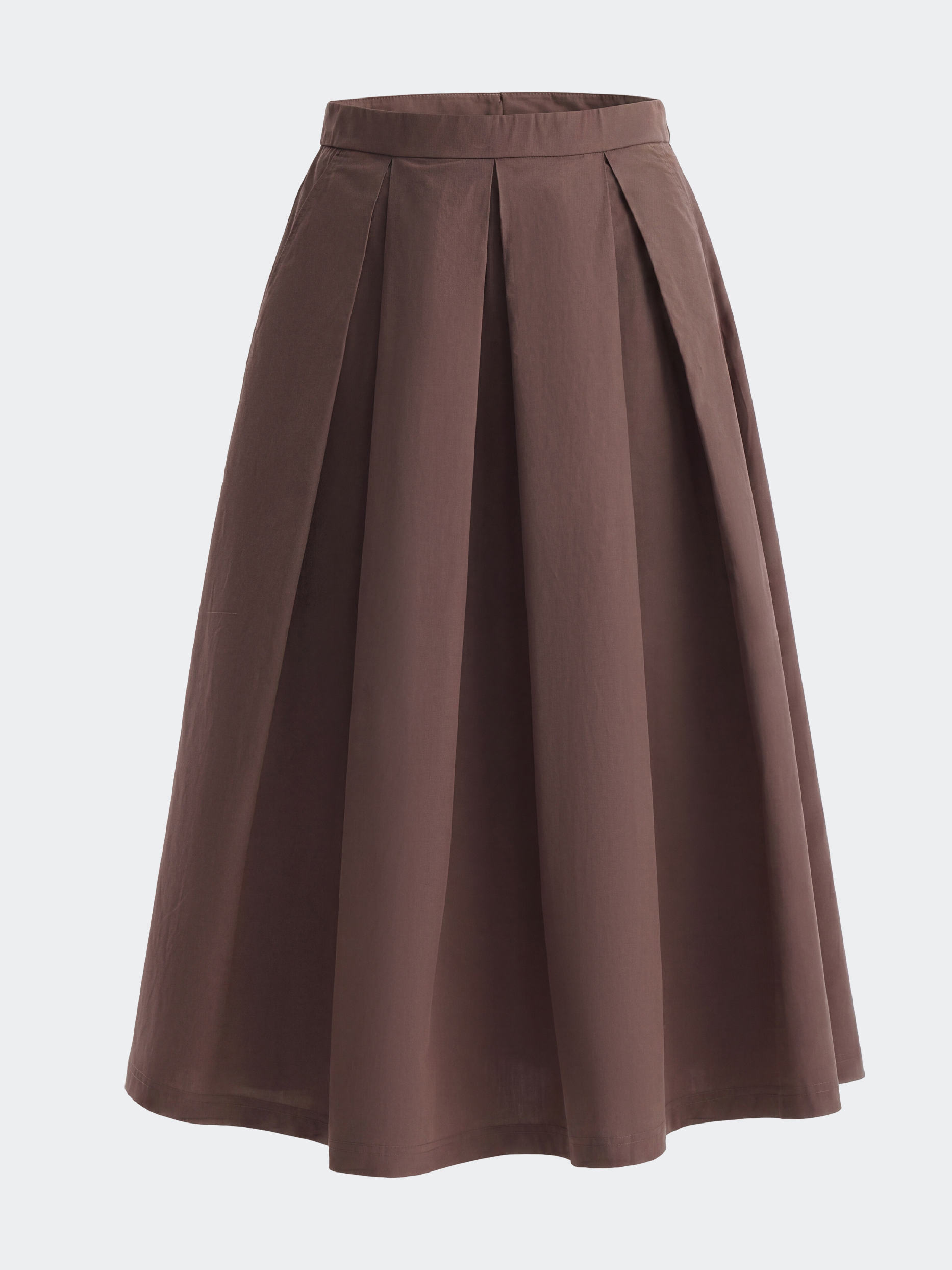 Расклешенная юбка со складками создает выразительный и графичный образ. Легкий дышащий текстиль из натурального хлопка комфортно прилегает и не просвечивает даже без подкладки. Боковые карманы придают функциональности.