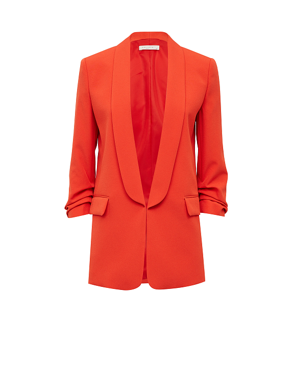 Удлиненный жакет с рукавами длиной 3/4 с драпировкой. Декоративные карманы с клапанами.