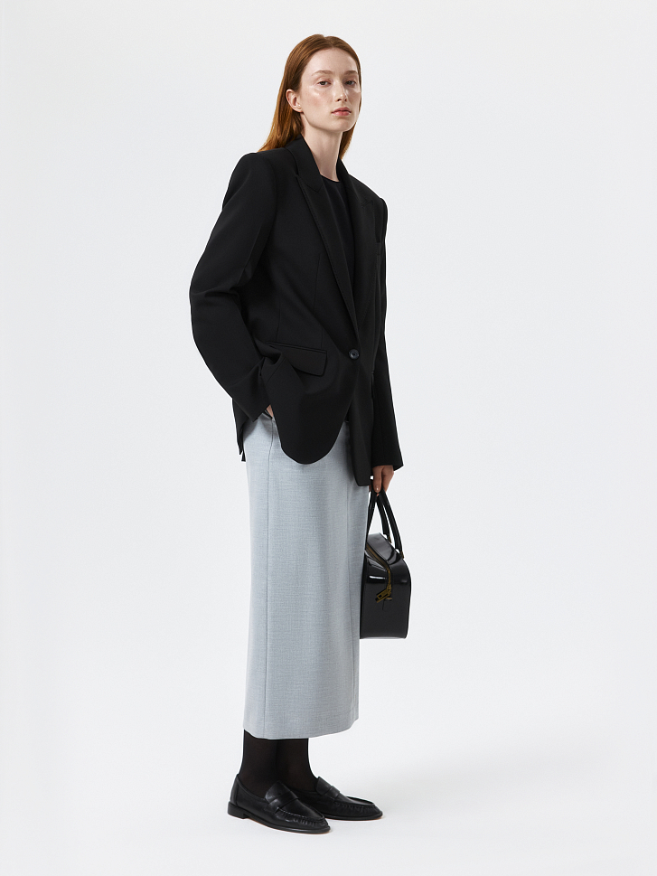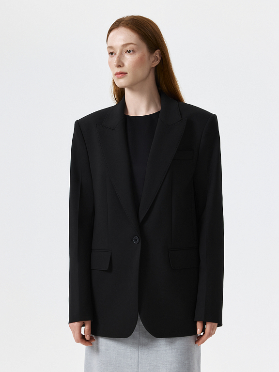 Однобортный жакет свободного кроя – идеальный выбор для делового образа. Плотный костюмный текстиль из поливискозы не мнется и хорошо держит форму лацканов. Такой материал обладает износоустойчивостью и не требует особого ухода, поэтому жакет прослужит несколько сезонов.