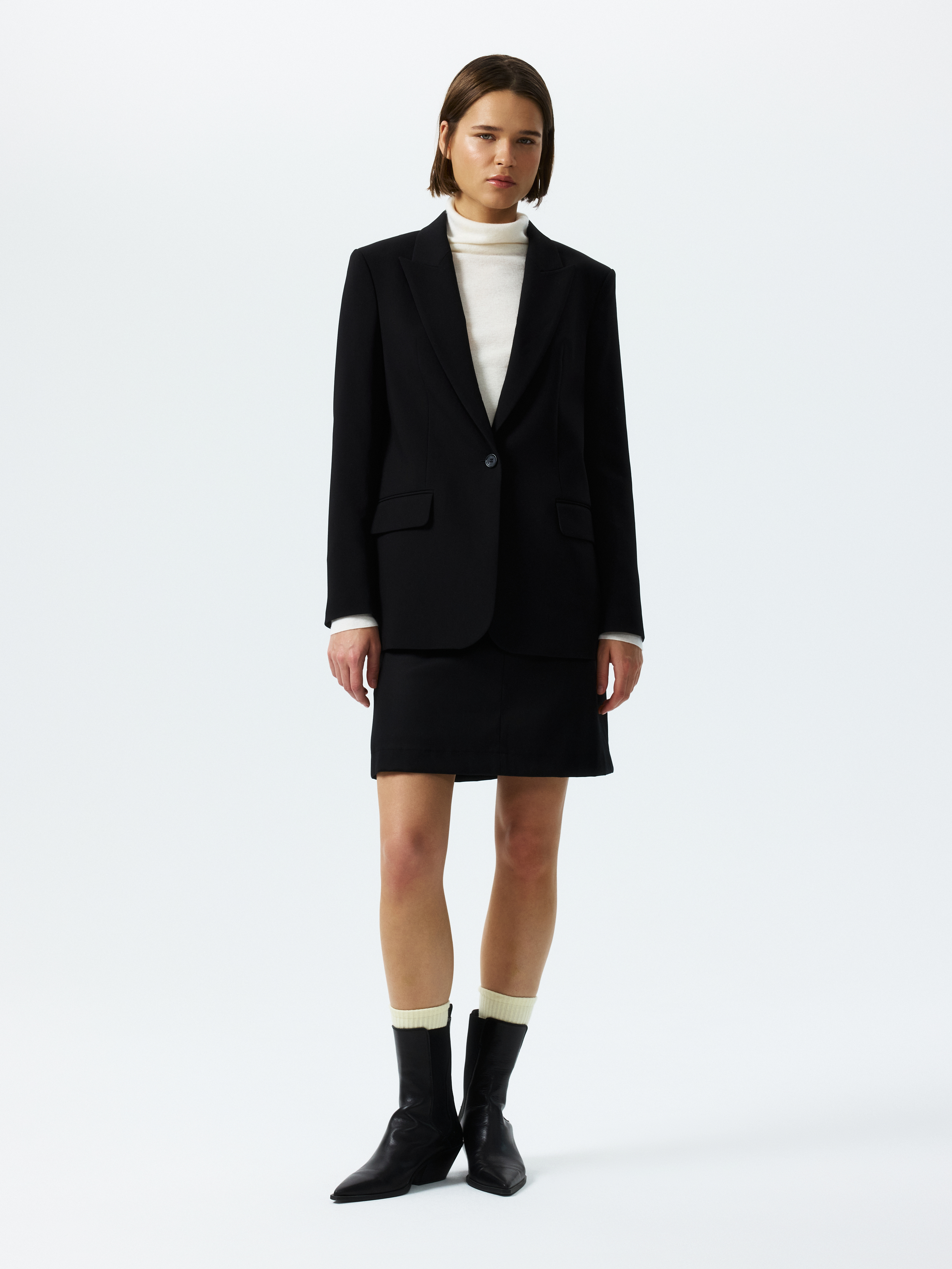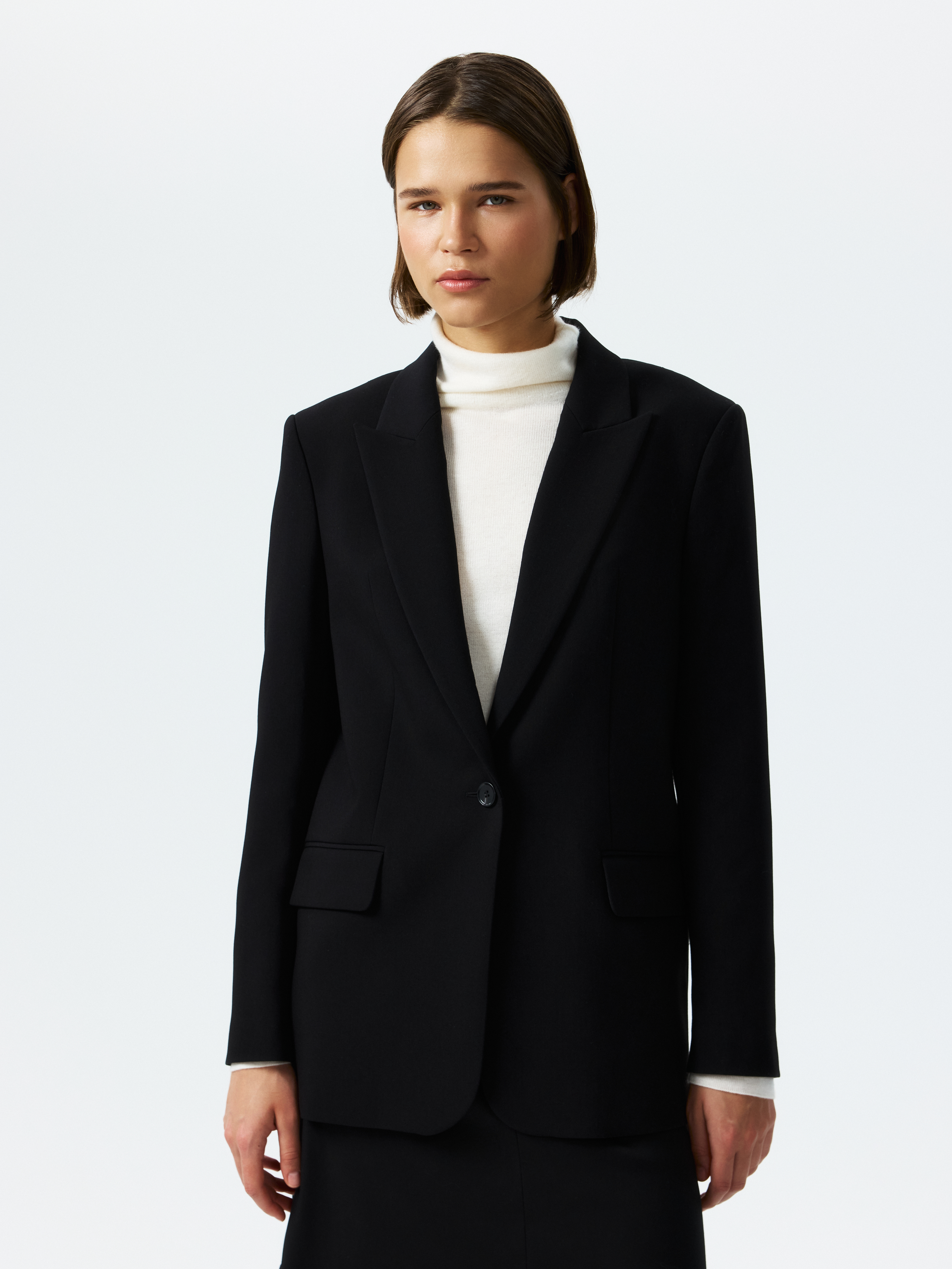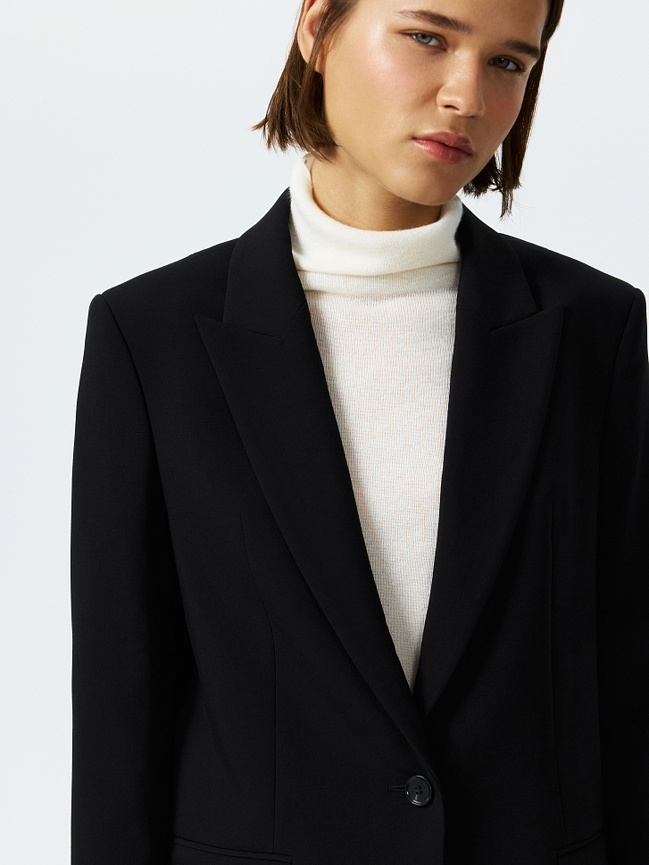 Жакет в классическом стиле – маст-хэв для офисного и повседневного гардероба. Костюмный текстиль средней плотности не мнется и не прихотлив в уходе, а гладкая подкладка дарит комфортное прилегание. Чтобы составить полноценный деловой образ, выбирайте брюки из аналогичного материала.