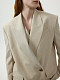 Жакет расслабленного кроя со смещенной застежкой и широкой линией плеч – классический силуэт в современном исполнении. В меру плотный текстиль со льном не вытягивается и комфортно прилегает. К жакету можно подобрать однотонные брюки или в полоску, которые будут гармонировать с акцентным лацканом.