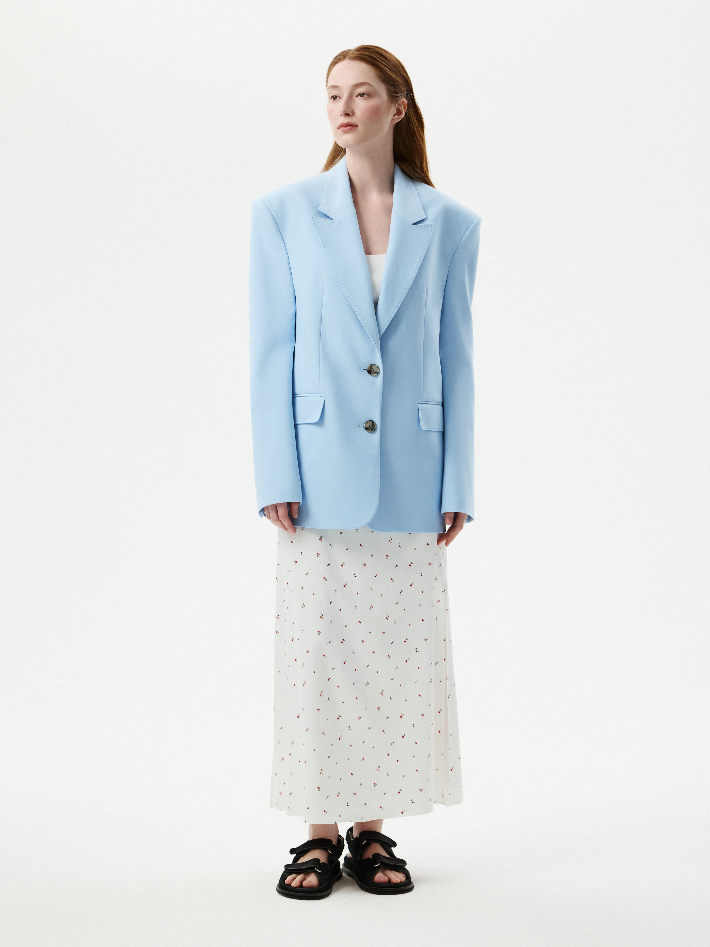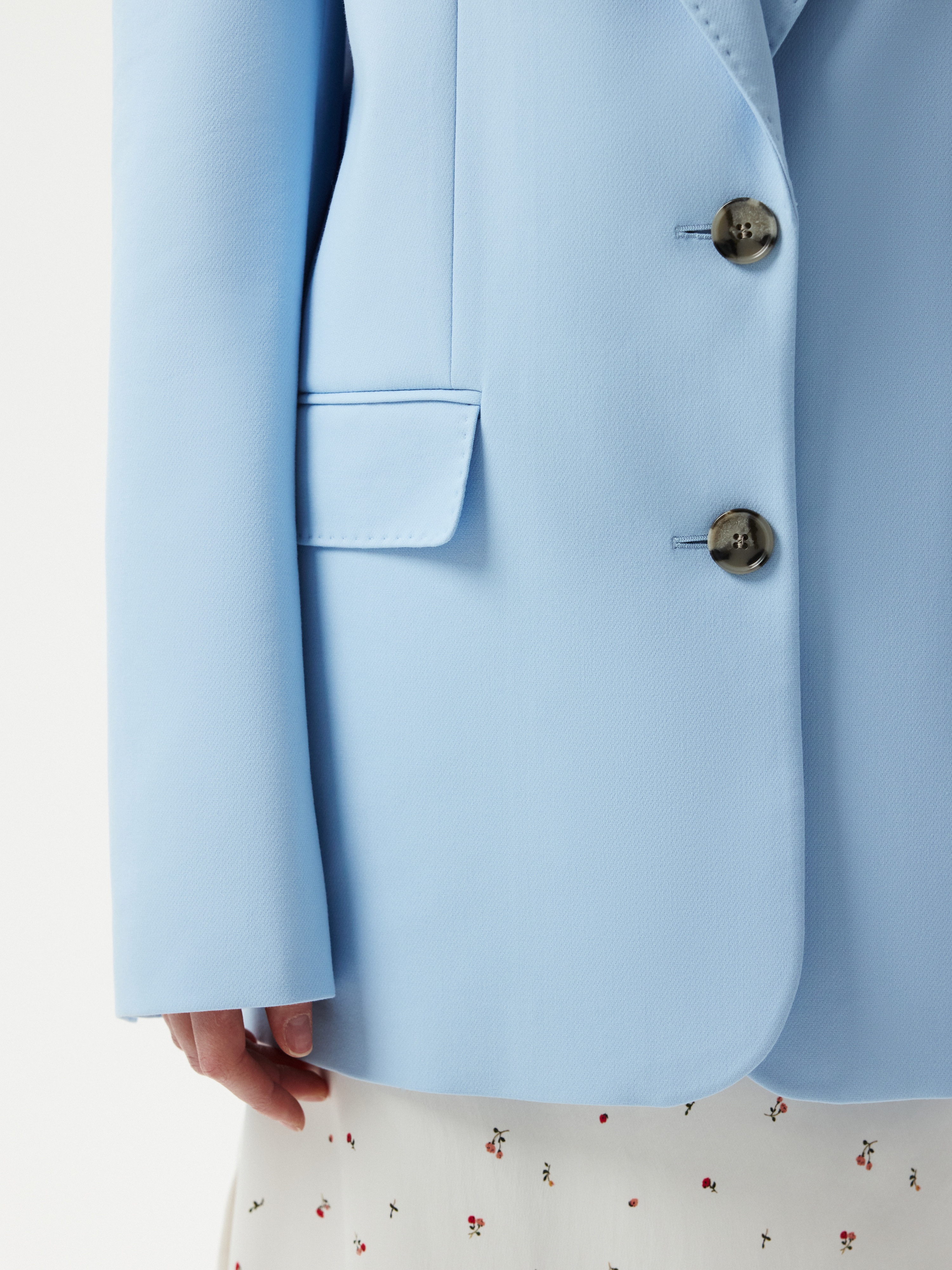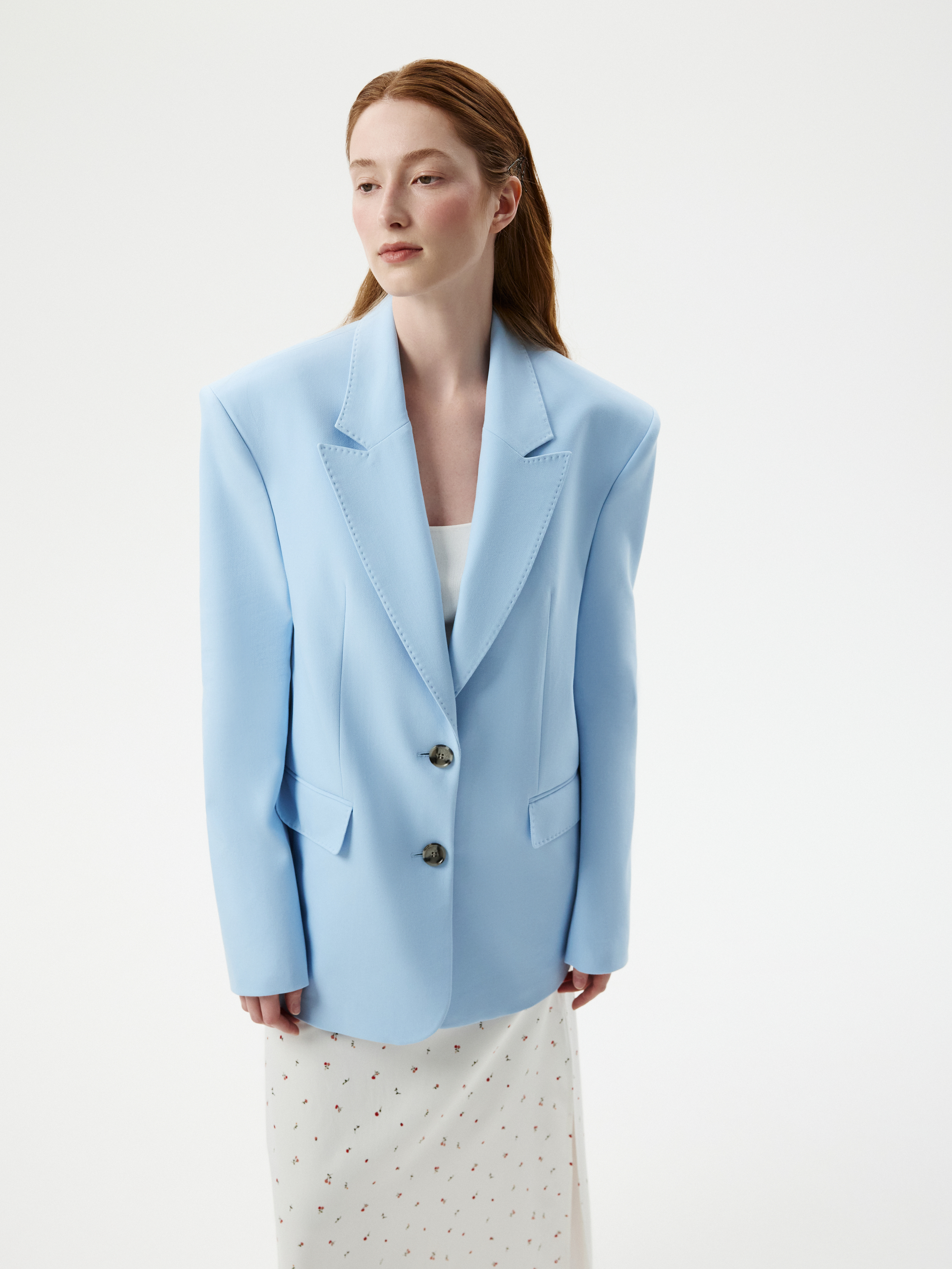 Прямой однобортный жакет позволяет подобрать массу стильных сочетаний: комплектные брюки, джинсы или струящееся платье. Благодаря комфортному составу на основе хлопка материал получился прочным и мягким на ощупь. Расслабленный силуэт не ограничивает свободу движений.