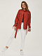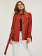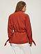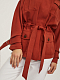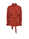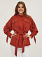 Свободный жакет с крупными накладными карманами. Пояс-хомут, пропущенный через кулиску на талии, спущенная линия плеч, широкие рукава, ремешки на манжетах в тон основной ткани, воротник-стойка. Застегивается на молнию и крупные пуговицы.