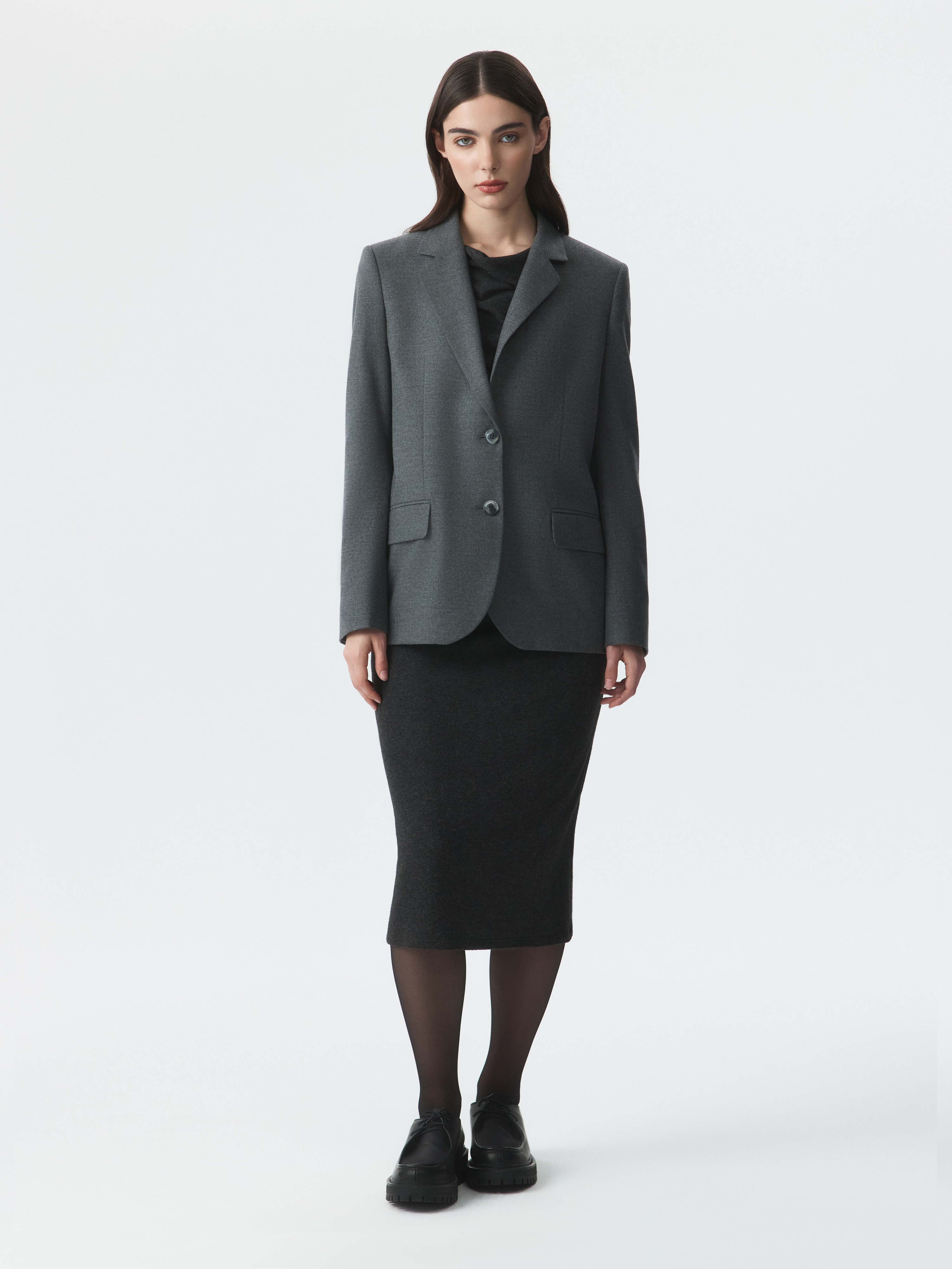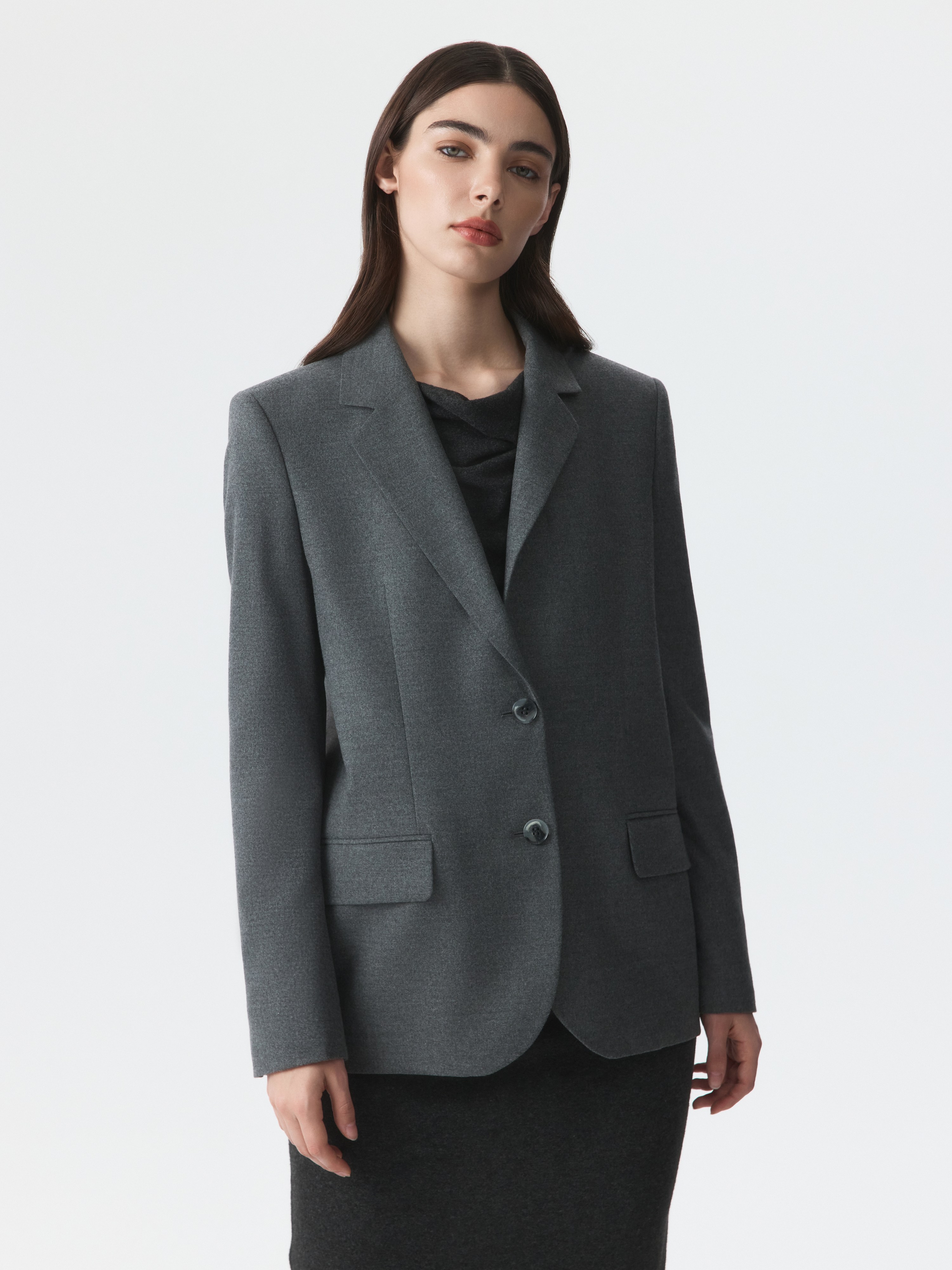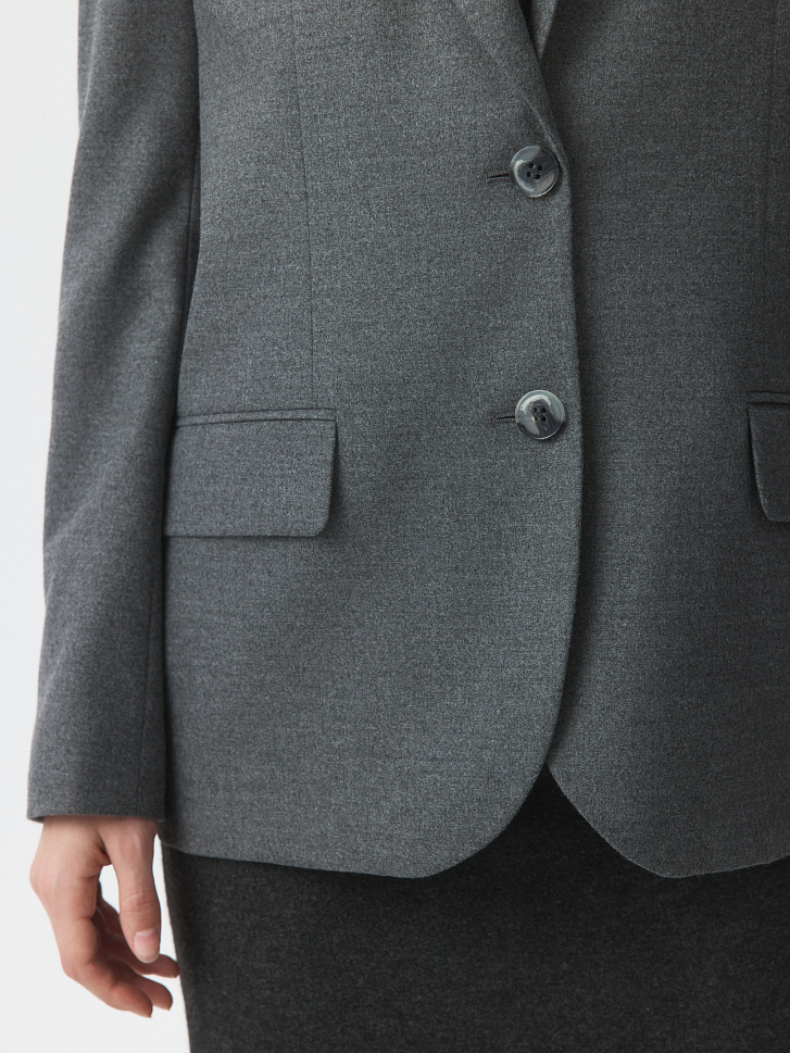 Прямой однобортный жакет – воплощение классического стиля и элегантности. В меру плотный текстиль из поливискозы не вытягивается, сохраняет безупречный внешний вид, а гладкая подкладка обеспечивает комфортное прилегание. Идеальное завершение образа – брюки из алогичной ткани или деним.