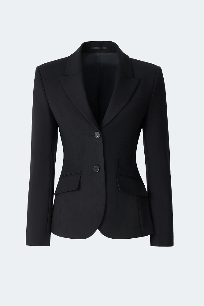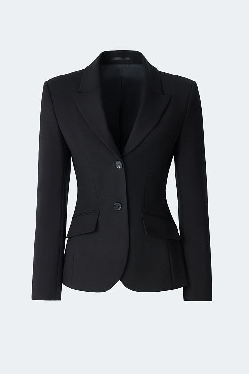 Приталенный однобортный жакет с равным успехом сработает и в деловых, и в вечерних образах. Для пошива модели выбрали плотный текстиль на основе вискозы, который не тянется и комфортно садится по фигуре за счет гладкой подкладки. Завершить костюм можно брюками из аналогичного материла.
