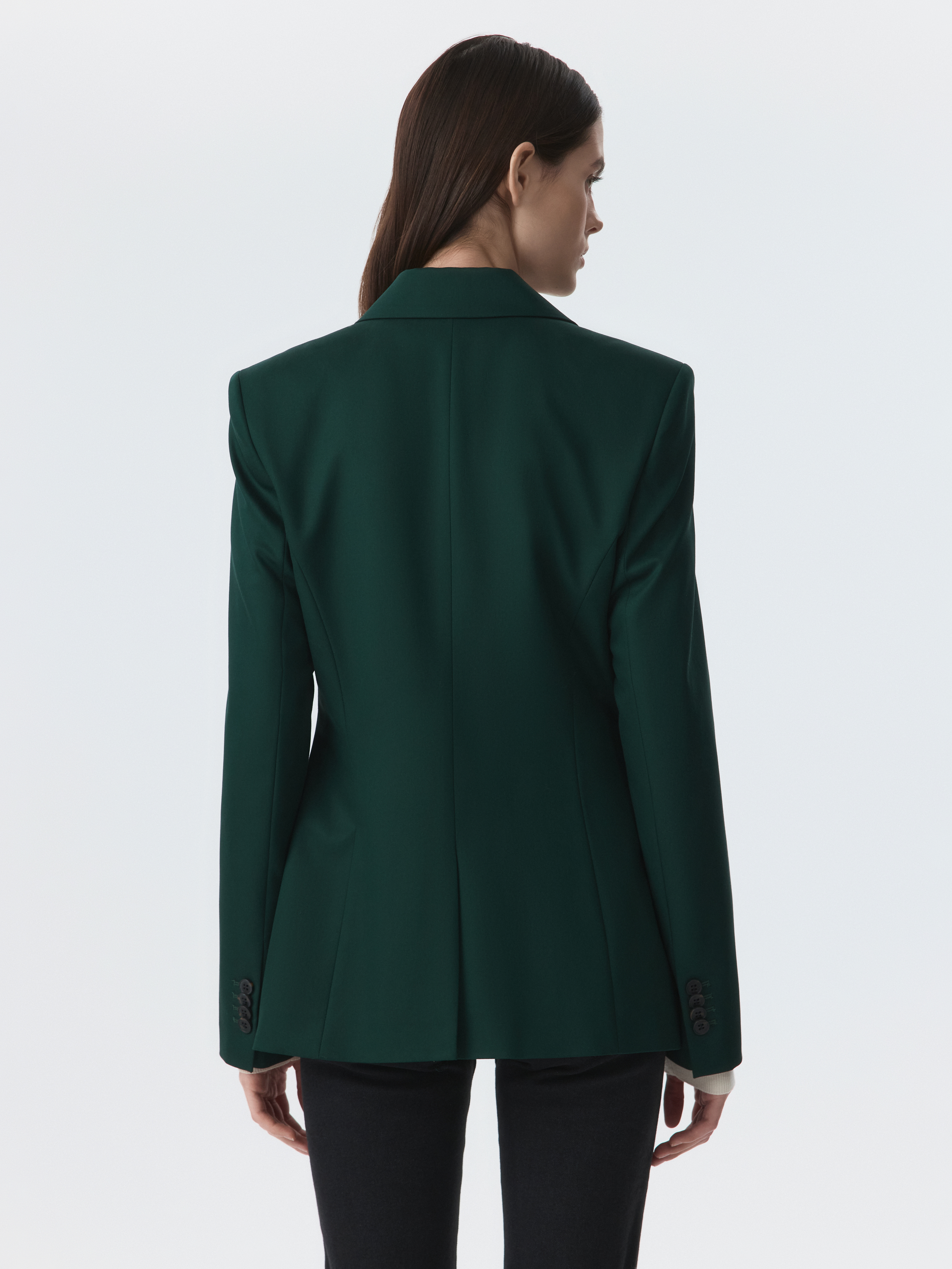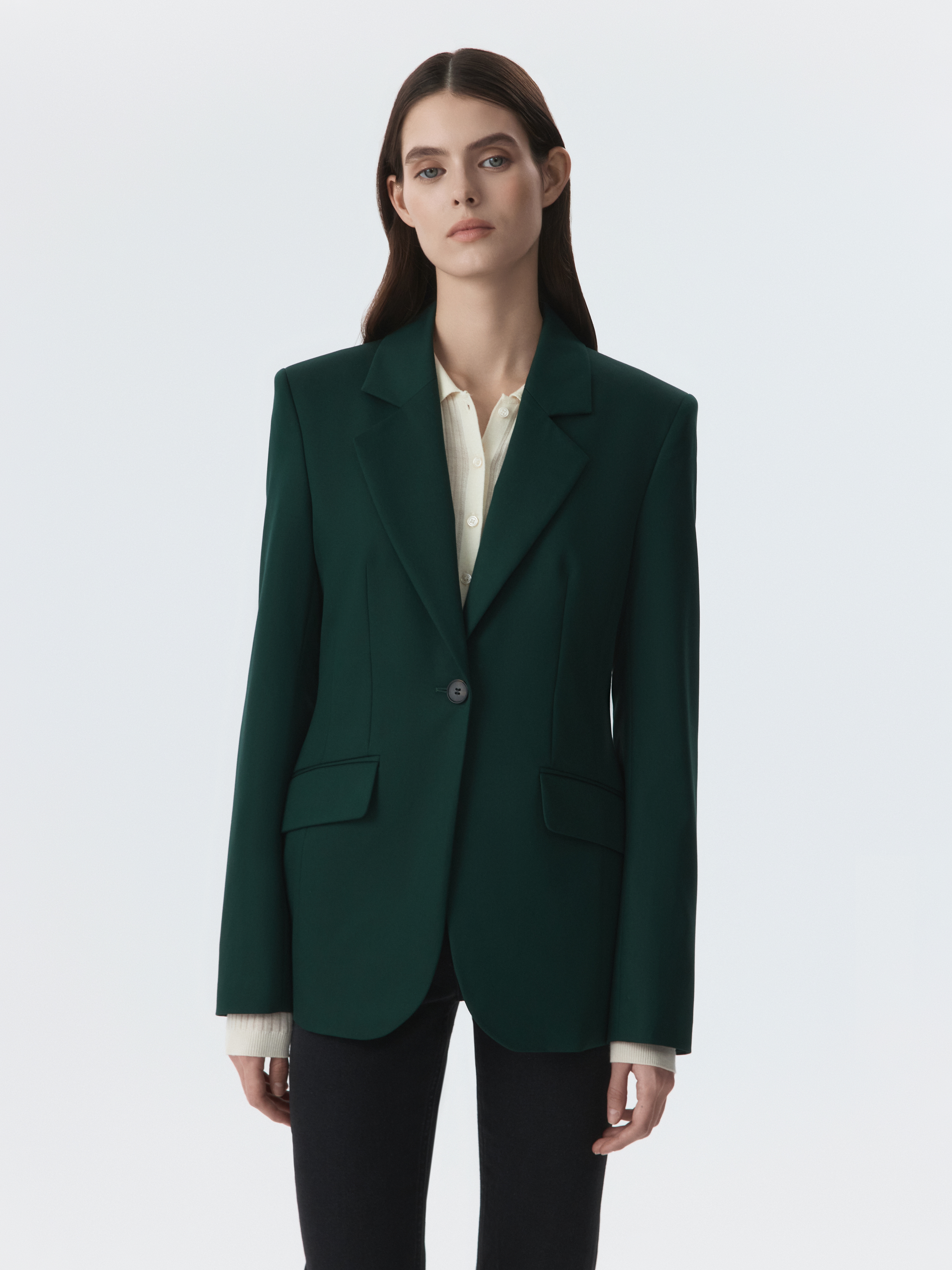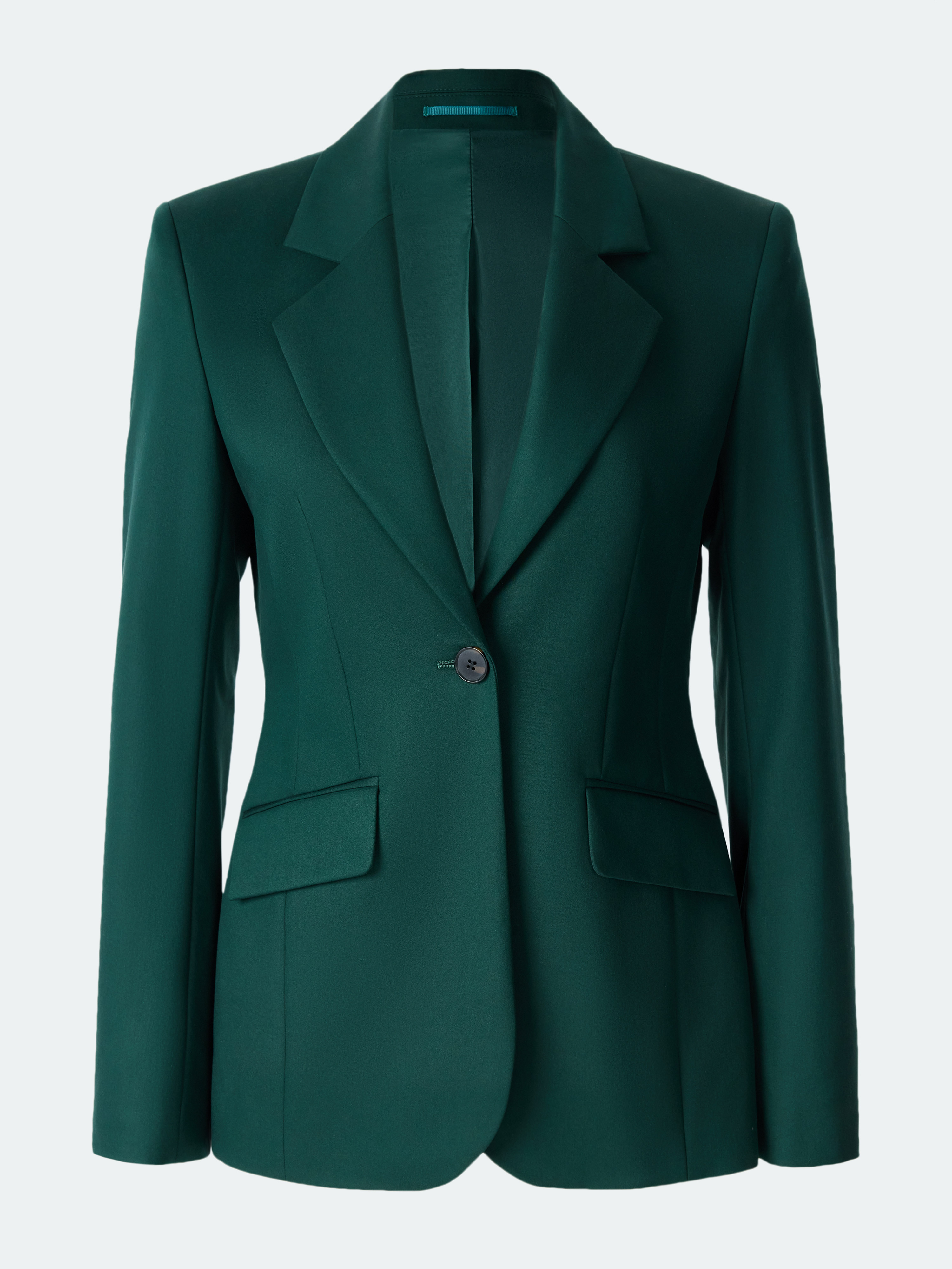 Классический жакет – базовый элемент в деловом гардеробе, но благодаря трендовой расцветке, его легко интегрировать в стиль casual. Симметричные вытачки создают идеальную посадку по фигуре. Однобортный жакет застегивается на металлическую пуговицу для создания эффектного образа.