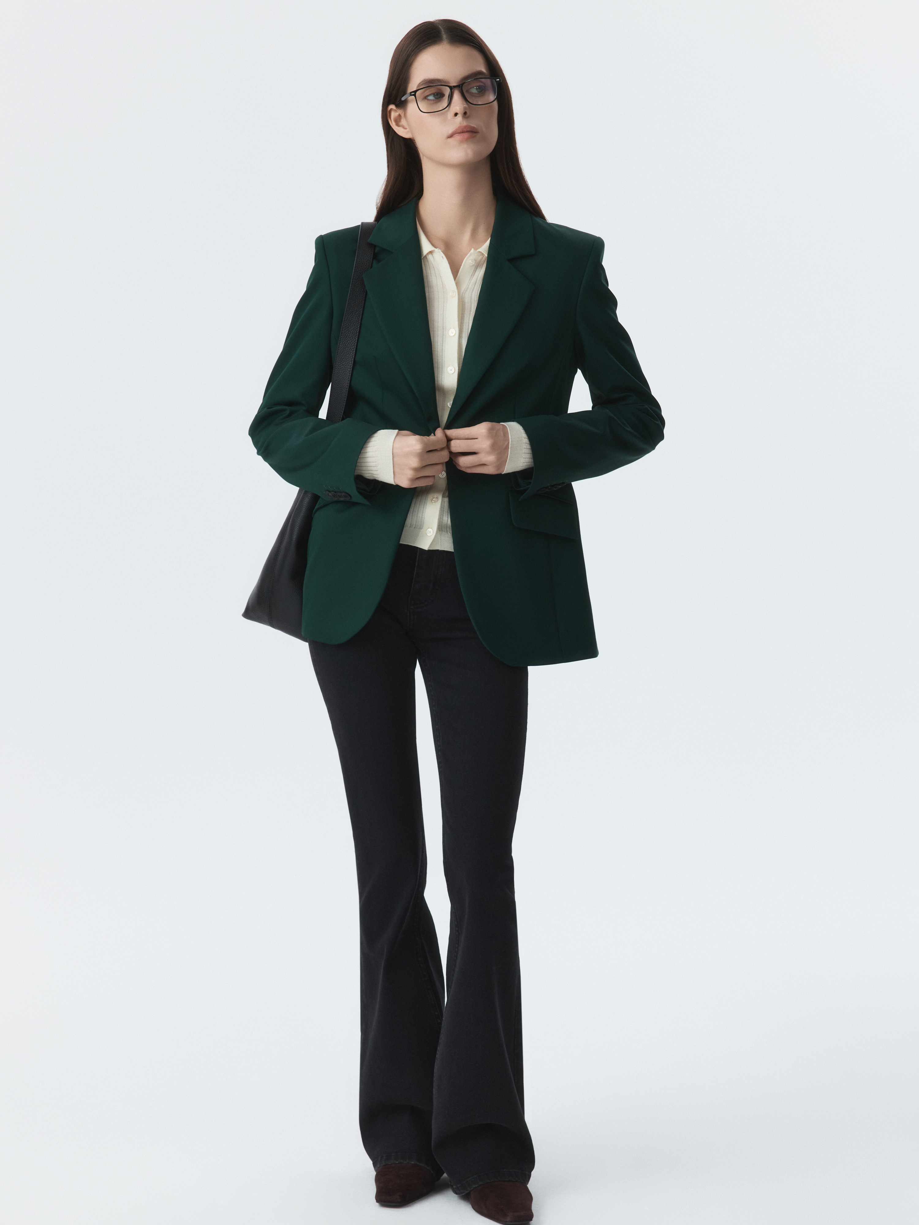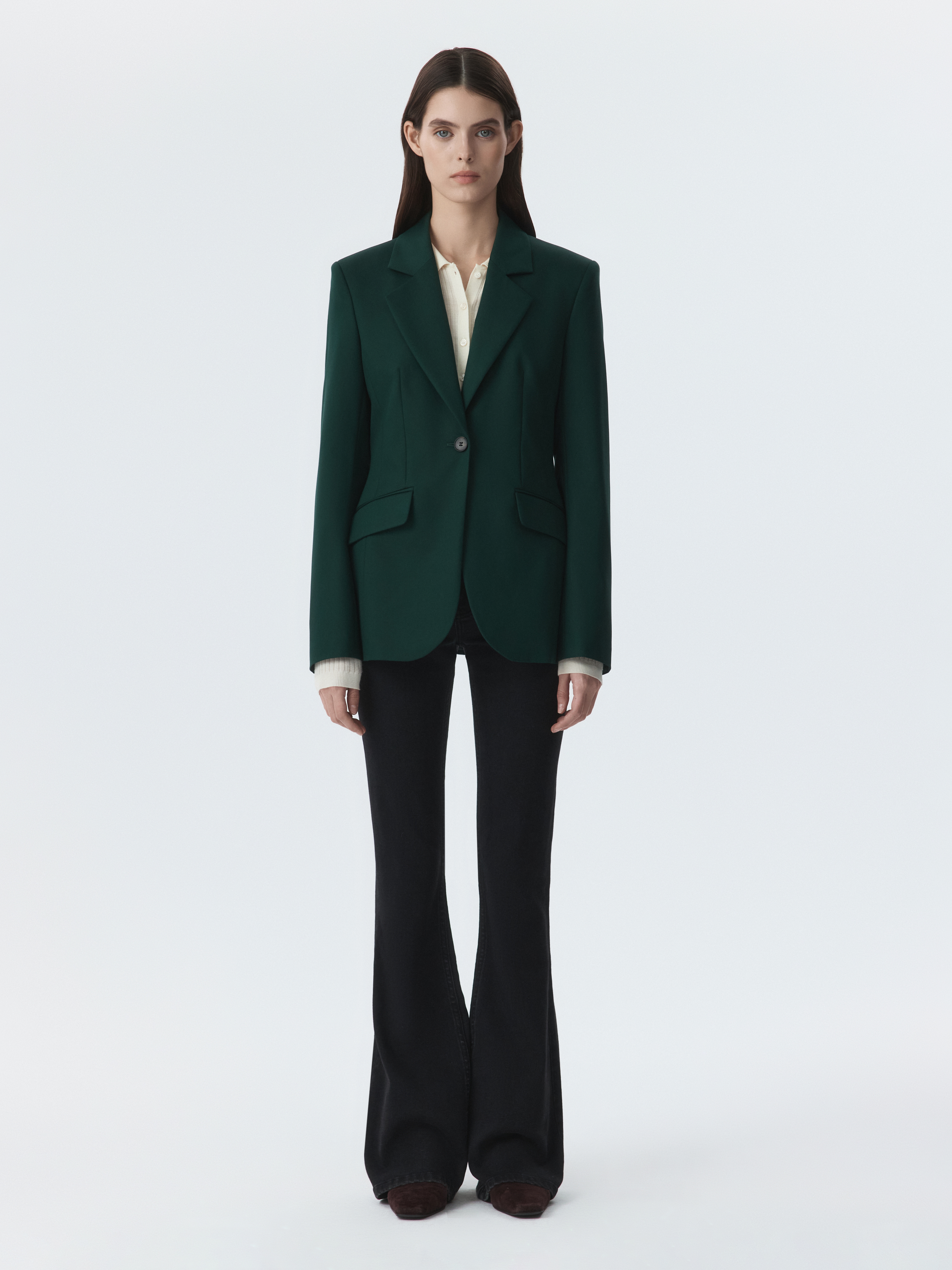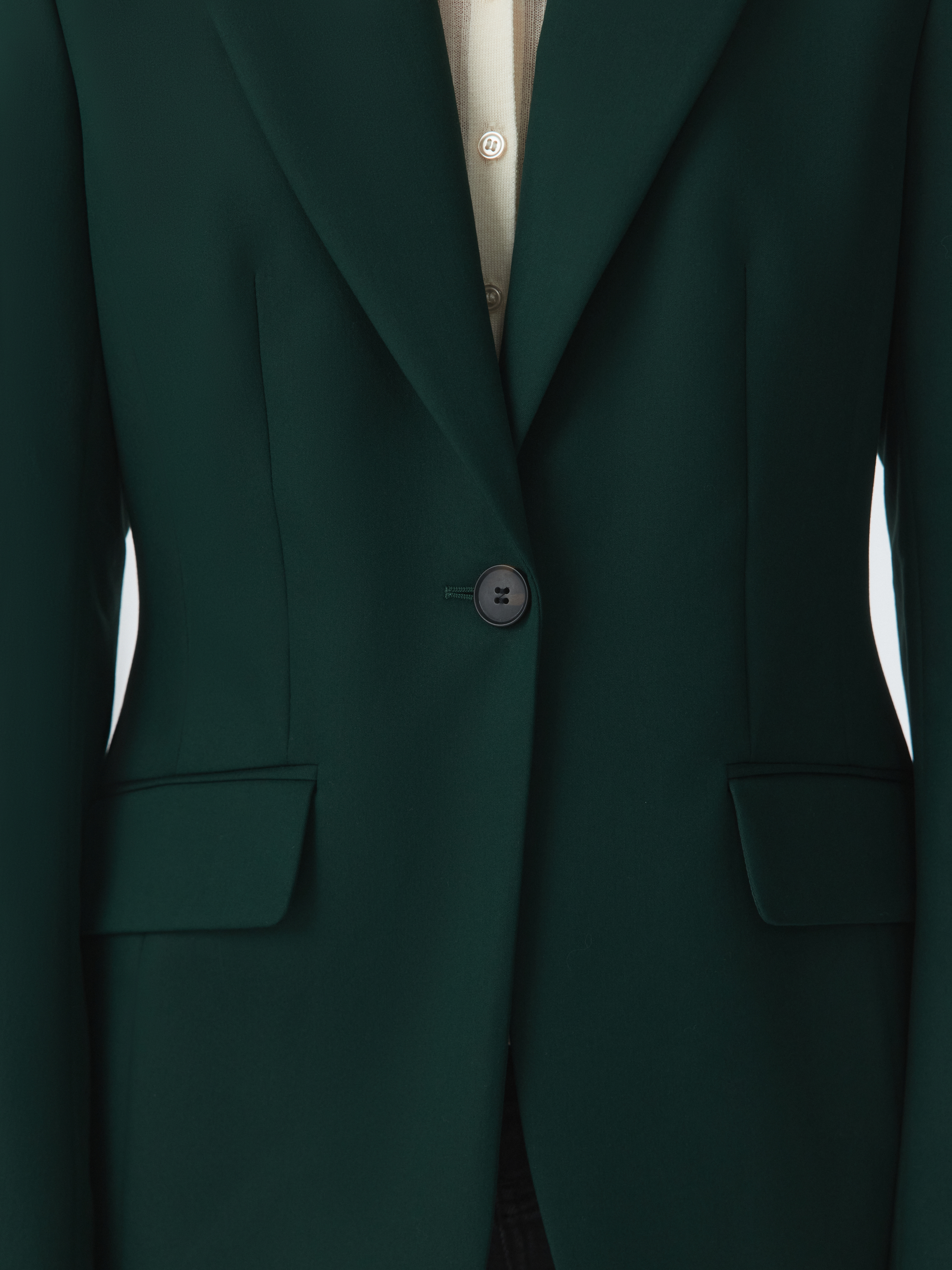 Классический жакет – базовый элемент в деловом гардеробе, но благодаря трендовой расцветке, его легко интегрировать в стиль casual. Симметричные вытачки создают идеальную посадку по фигуре. Однобортный жакет застегивается на металлическую пуговицу для создания эффектного образа.
