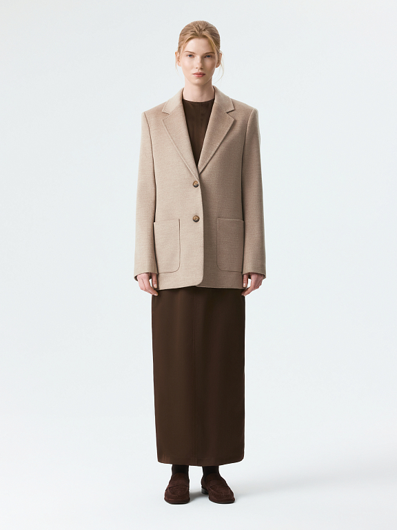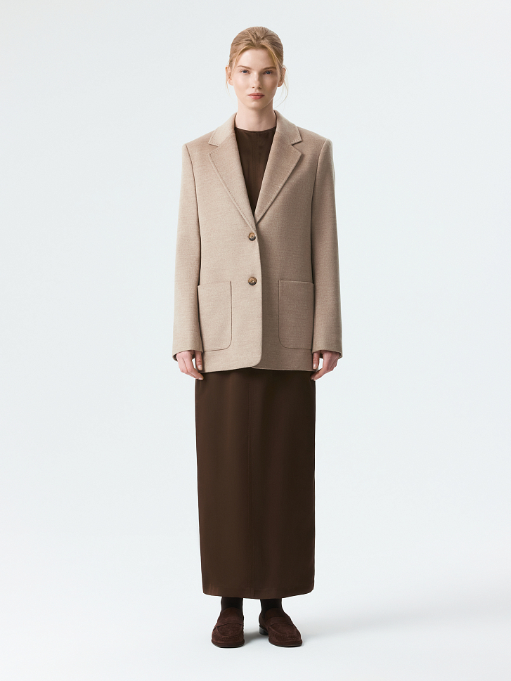 Жакет оверсайз с накладными карманами адаптирован к холодному сезону. Плотный ворсистый текстиль из фланели сохраняет тепло, а гладкая подкладка дарит комфортное прилегание. Парные брюки (4-16705_50373) дополнят костюм в расслабленном стиле.