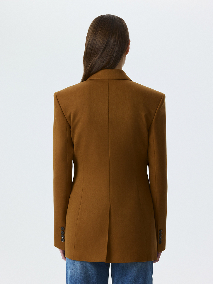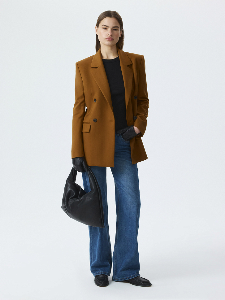 Классический двубортный жакет легко подстраивается под разные поводы, погоду и даже настроение. Модель выполнили из плотной поливискозы «в елочку» с добавлением шерсти, что обеспечивает ей мягкость и долговечность, а гладкая подкладка отводит влагу от тела.