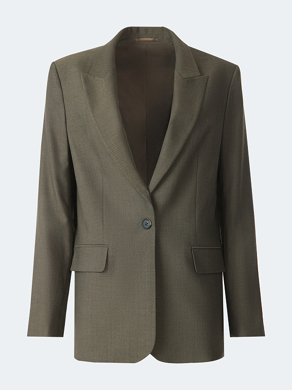 Прямой однобортный жакет на пуговице отвечает в гардеробе за универсальность: он подойдет для офиса, а поверх платья дополнит образ для праздника. Облегченный костюмный текстиль с содержанием шерсти мягко прилегает и комфортно сидит по фигуре благодаря гладкой подкладке.