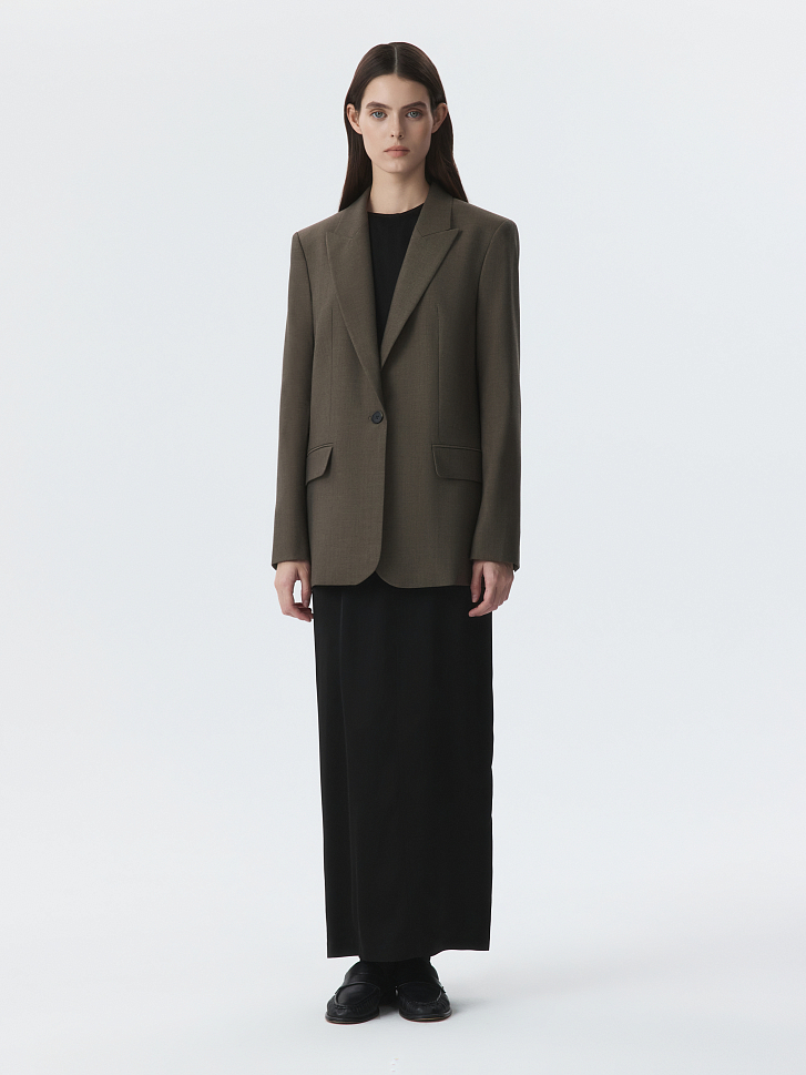 Прямой однобортный жакет – это универсальная основа гардероба, которая легко «переходит» из офиса на вечернее мероприятие. Облегченный костюмный текстиль с содержанием шерсти мягко прилегает и комфортно сидит по фигуре благодаря гладкой подкладке.