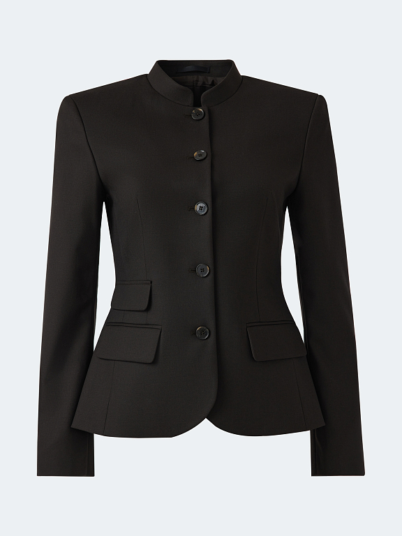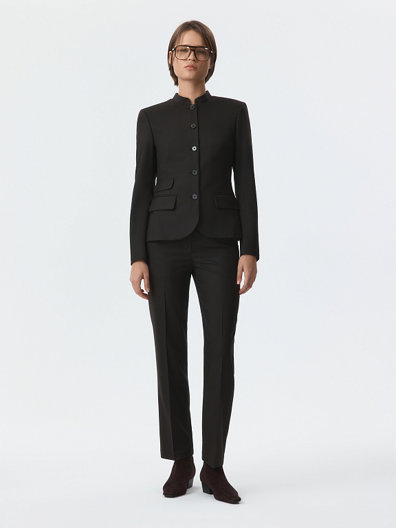 Приталенный однобортный жакет будет актуальным для деловых встреч и для повседневных выходов. Плотный костюмный текстиль из поливискозы не тянется и хорошо держит форму, а гладкая подкладка дарит комфорт. Пуговицы, стойка и клапаны – каждая деталь придает изделию характерную особенность.