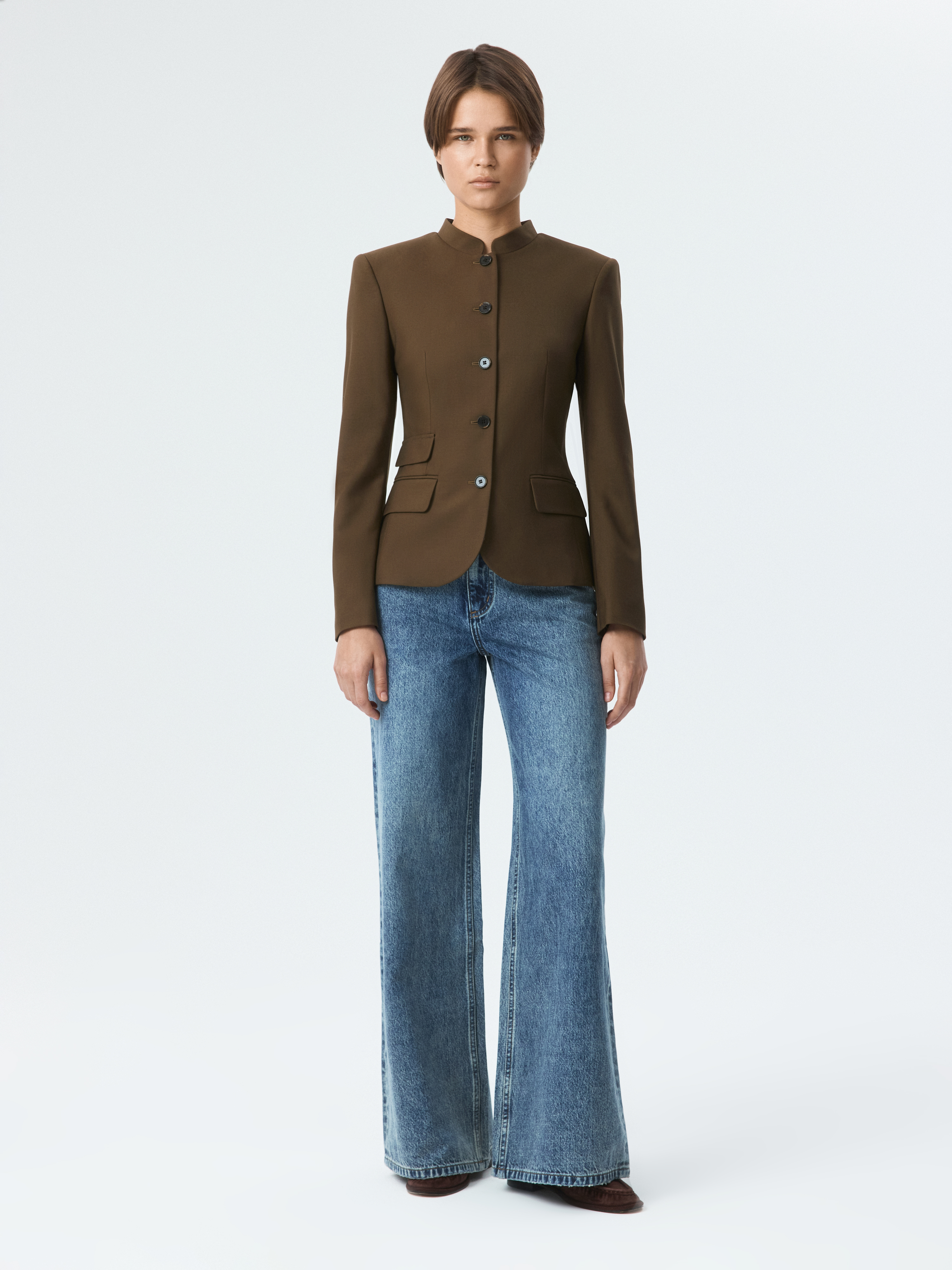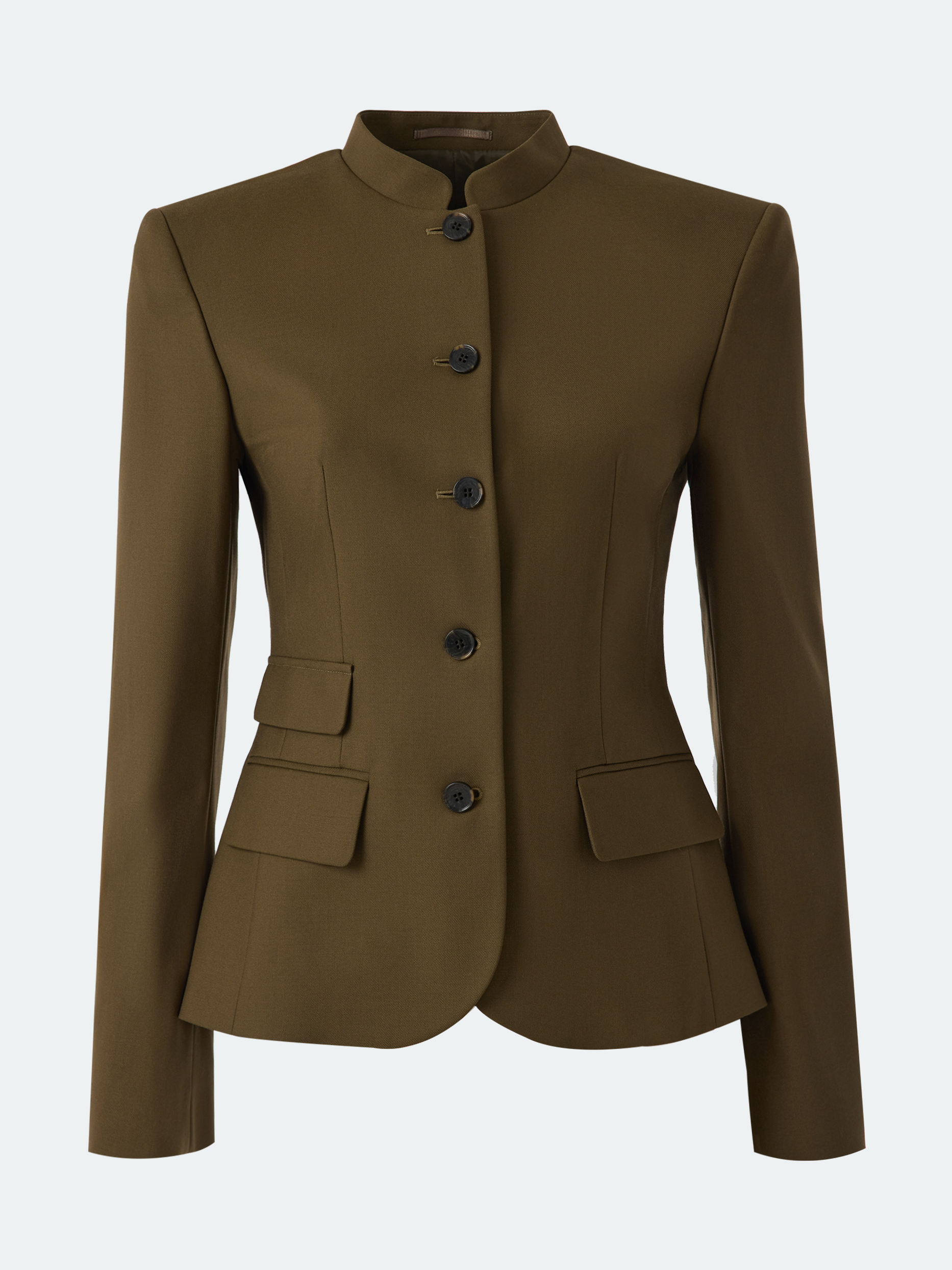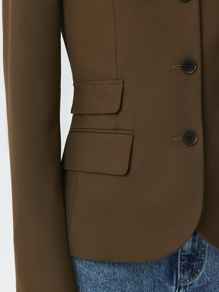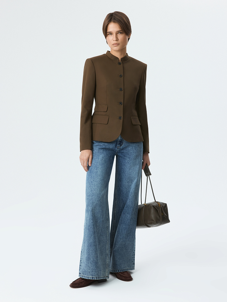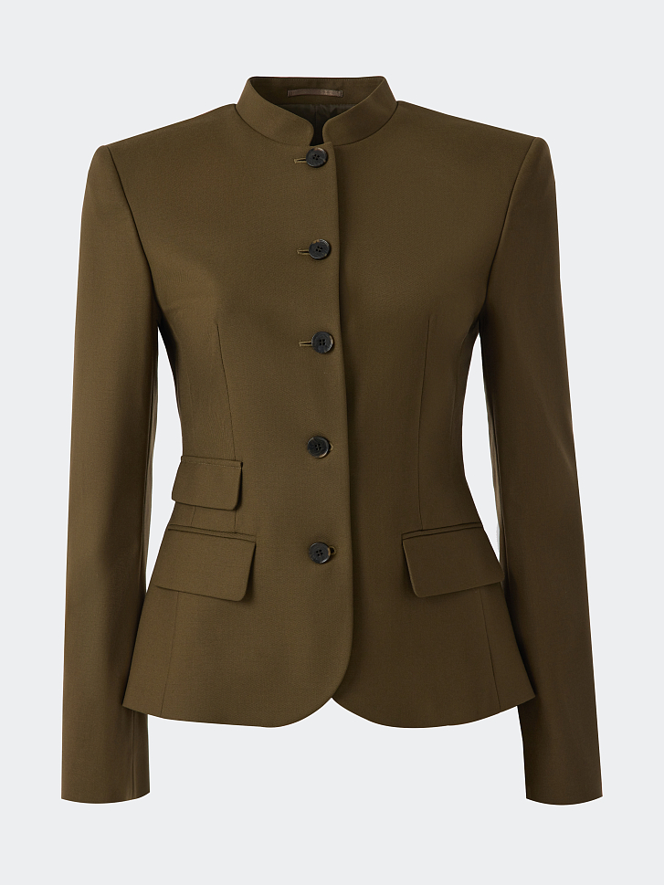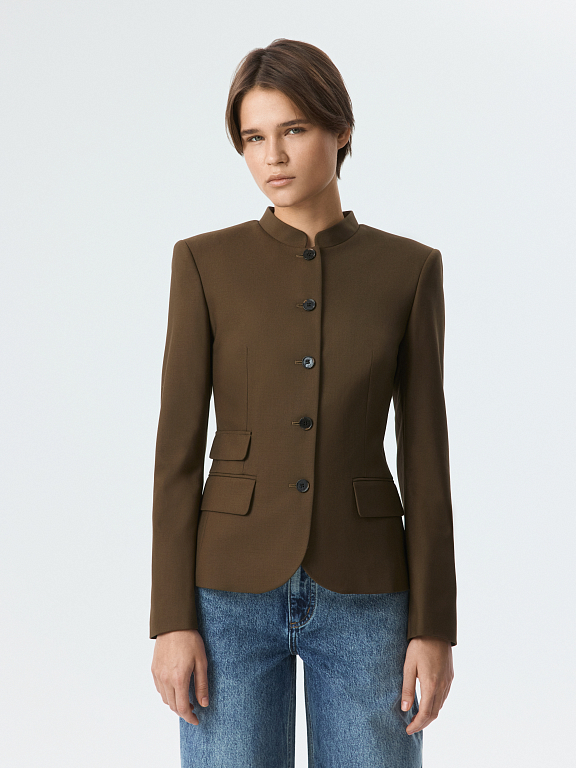 Приталенный однобортный жакет будет актуальным для деловых встреч и для повседневных выходов. Плотный костюмный текстиль из поливискозы не тянется и хорошо держит форму, а гладкая подкладка дарит комфорт. Пуговицы, стойка и клапаны – каждая деталь придает изделию характерную особенность.