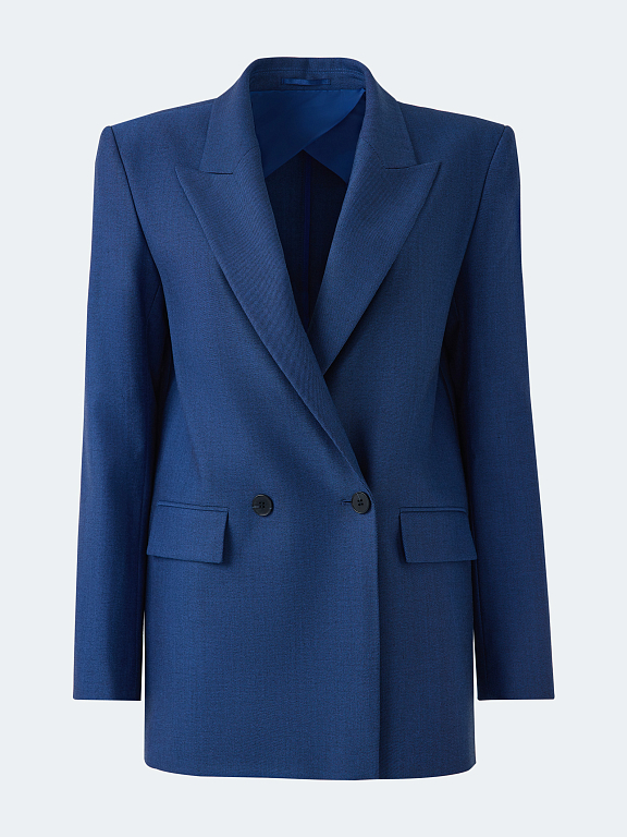 Двубортный жакет фасона оверсайз гармонично впишется в современный гардероб. В меру плотный костюмный текстиль с содержанием шерсти не тянется и хорошо держит форму, а частичная подкладка дарит комфортное прилегание. Модель расслабленно сидит по фигуре и не сковывает движения.