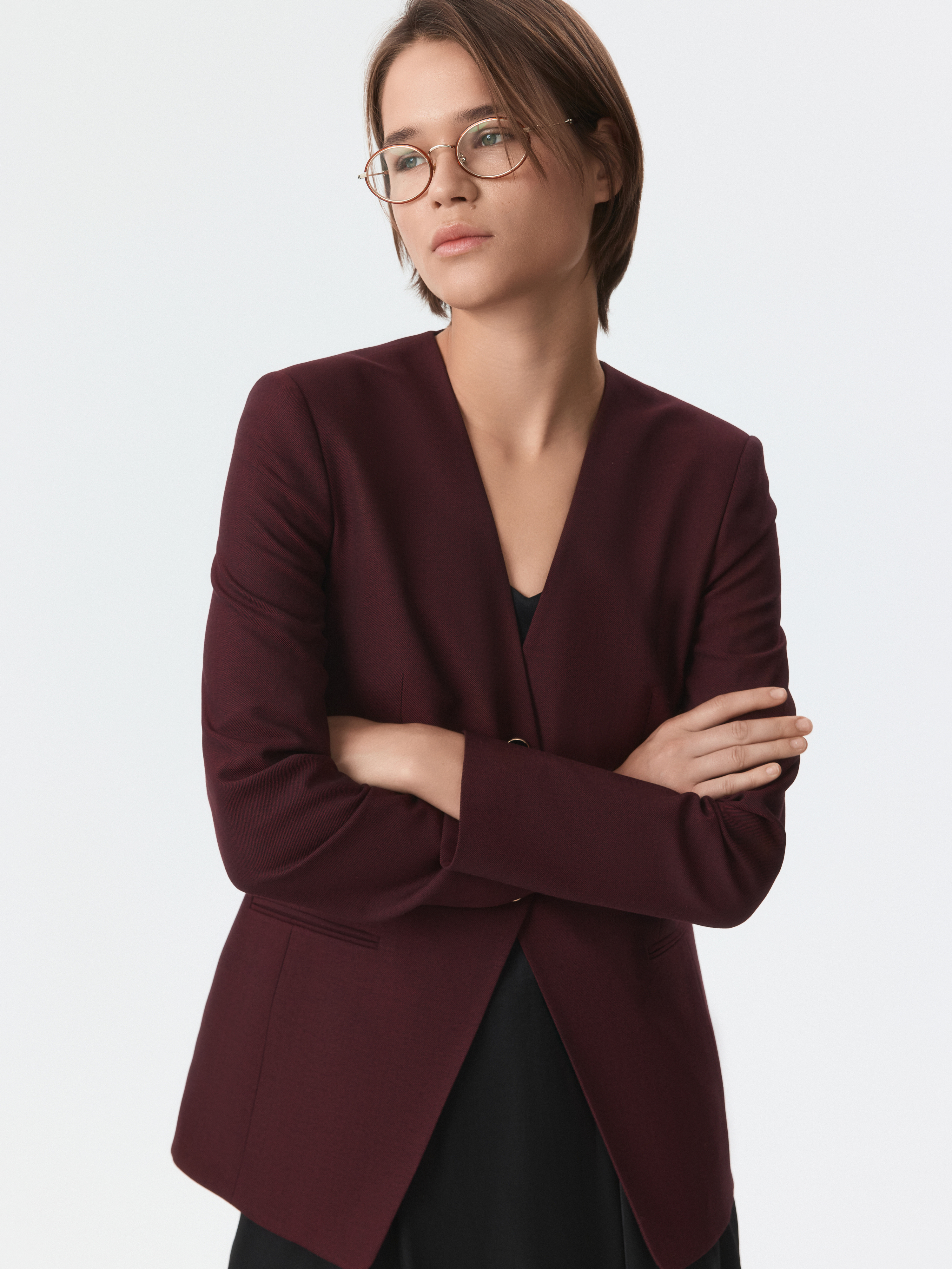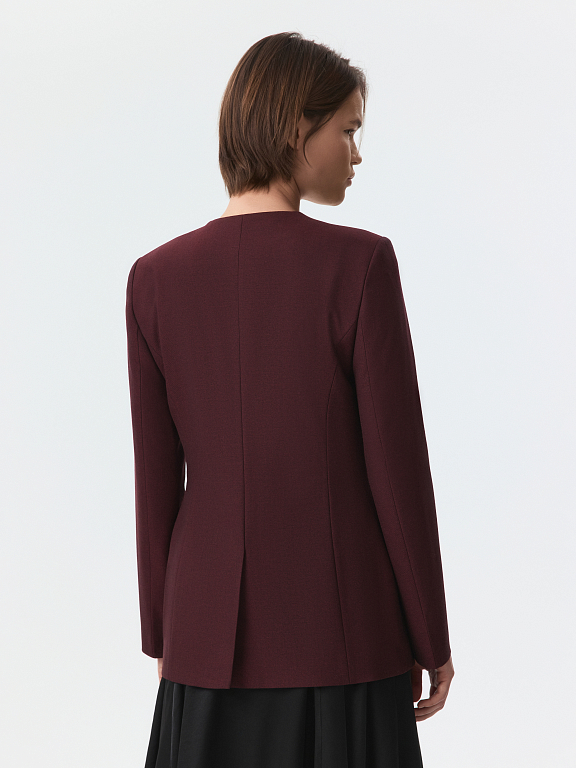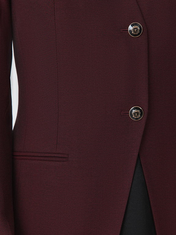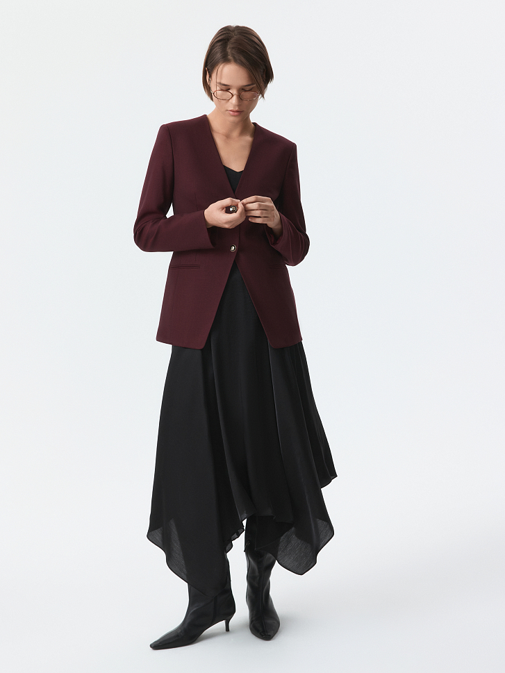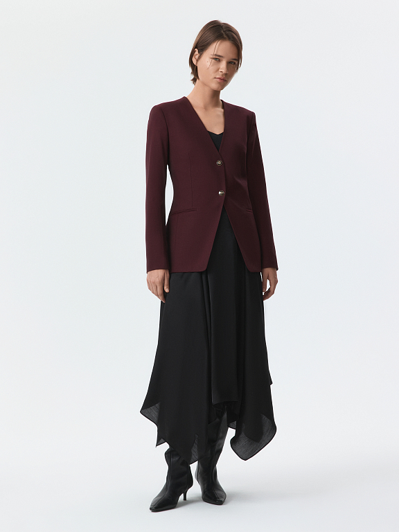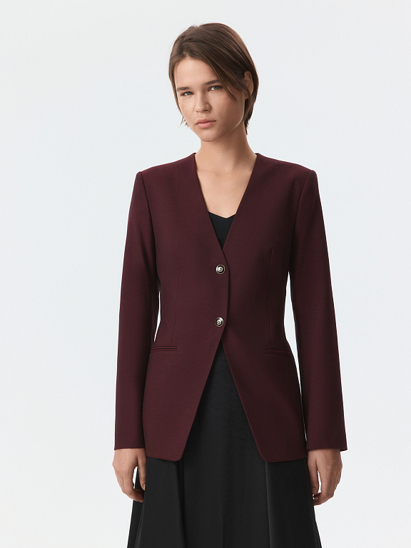 Приталенный однобортный жакет соответствует принципам делового дресс-кода — строгие линии без лишних деталей. В меру плотный текстиль с содержанием натуральной шерсти не вытягивается и комфортно прилегает благодаря гладкой подкладке. Парные брюки (1-44205_50194) завершат костюм.