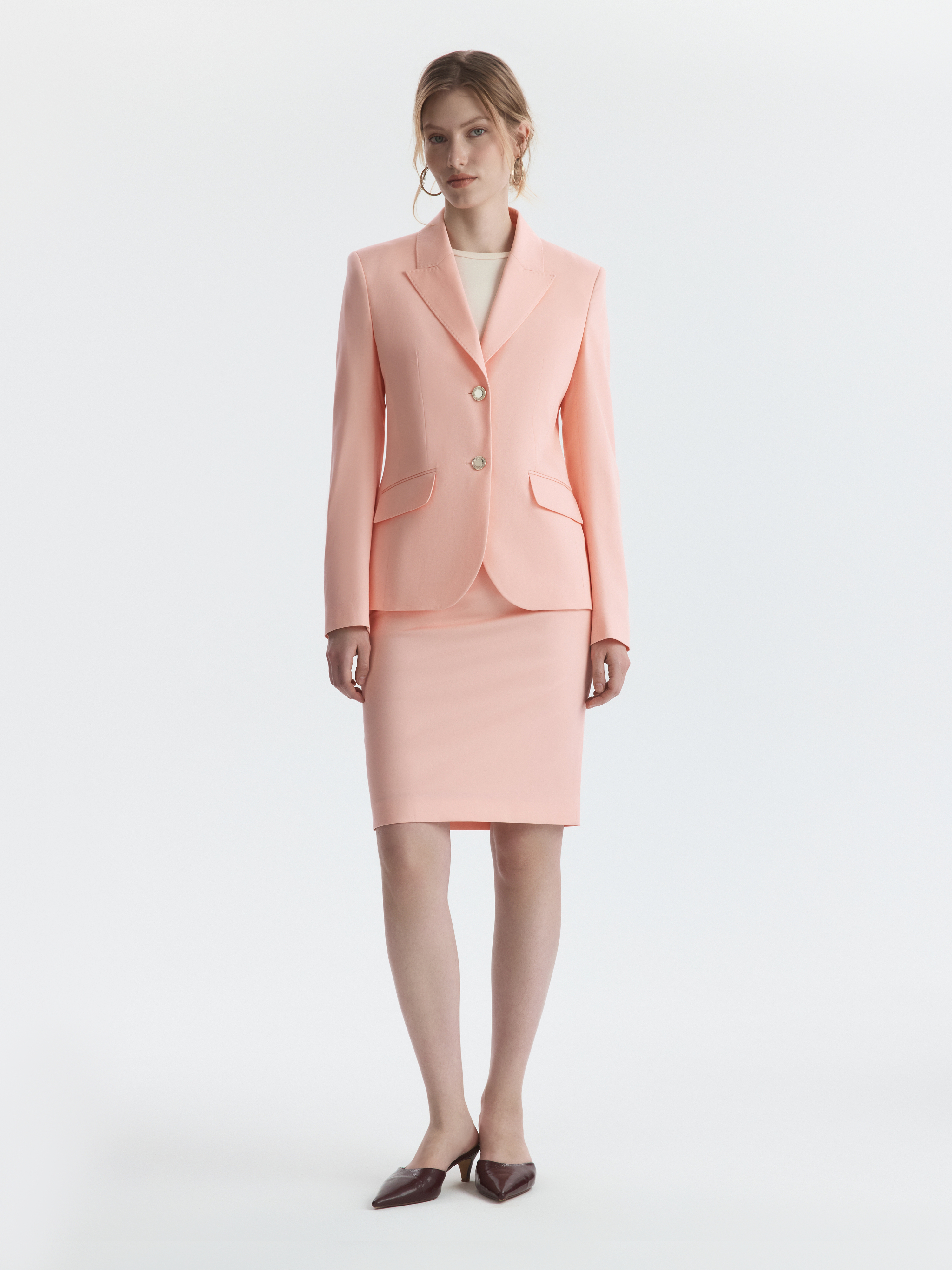 Приталенный однобортный жакет адаптирован для теплого сезона. Модель сшили из текстиля на основе натурального хлопка и тенселя (волокна целлюлозы), который хорошо пропускает воздух и обеспечивает комфорт. Акцентные пуговицы придают элегантному жакету изящность.