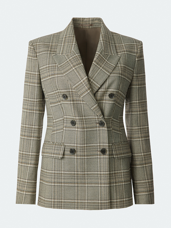 Двубортный жакет в шотландскую клетку – строгий, но выразительный. В меру плотный текстиль из поливискозы, продублированный гладкой подкладкой, не тянется и комфортно прилегает к телу. Дополнить костюм в стиле преппи можно аналогичной юбкой.