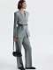 Жакет прямого кроя отвечает за универсальность в гардеробе. Плотный текстиль «в елочку» не мнется и хорошо держит форму. V-вырез без лацканов и потайная застежка подчеркивают минималистичный дизайн. Для создания женственного силуэта предусмотрели тонкий кожаный пояс.