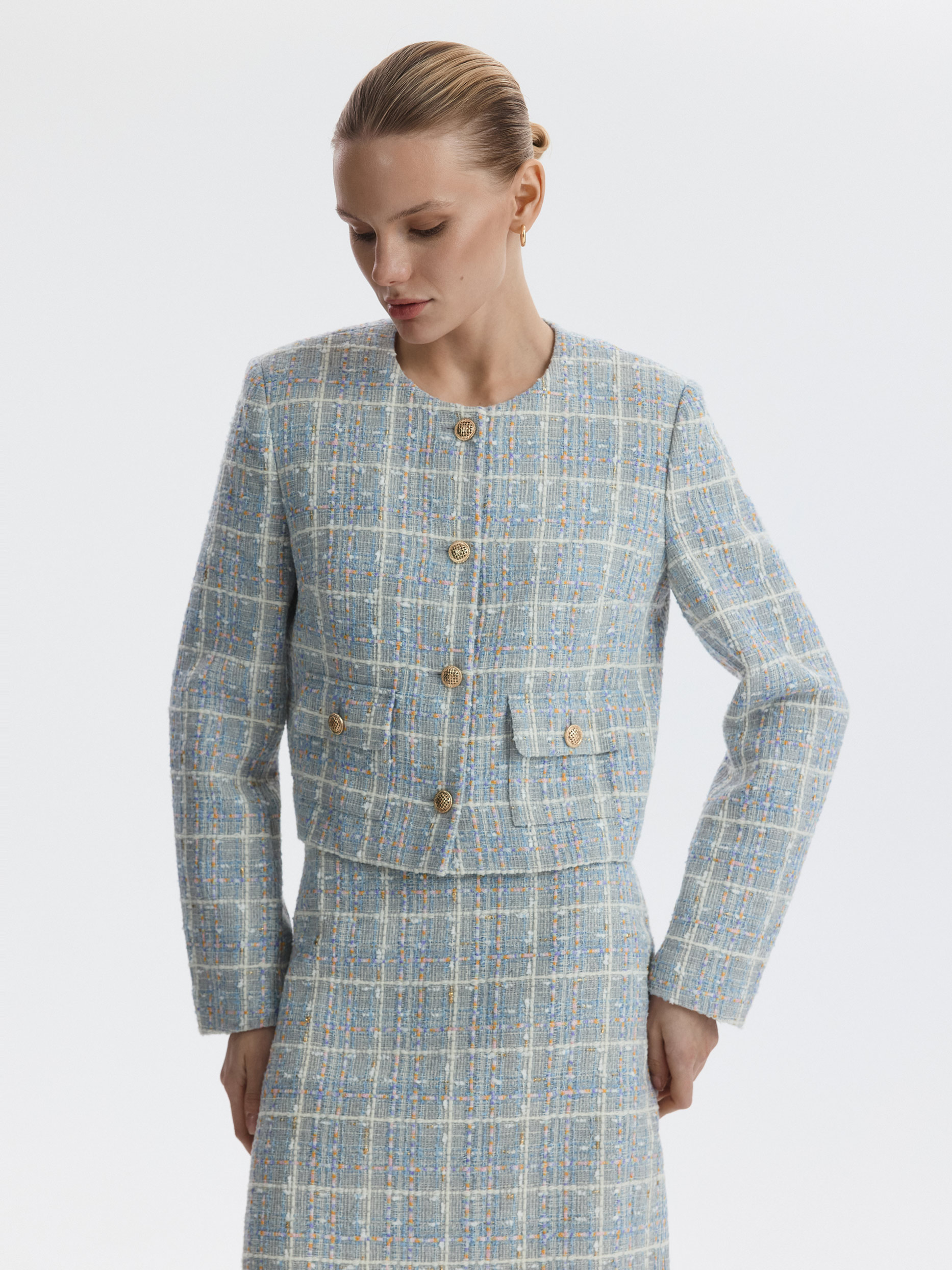 Твидовый жакет укороченного кроя