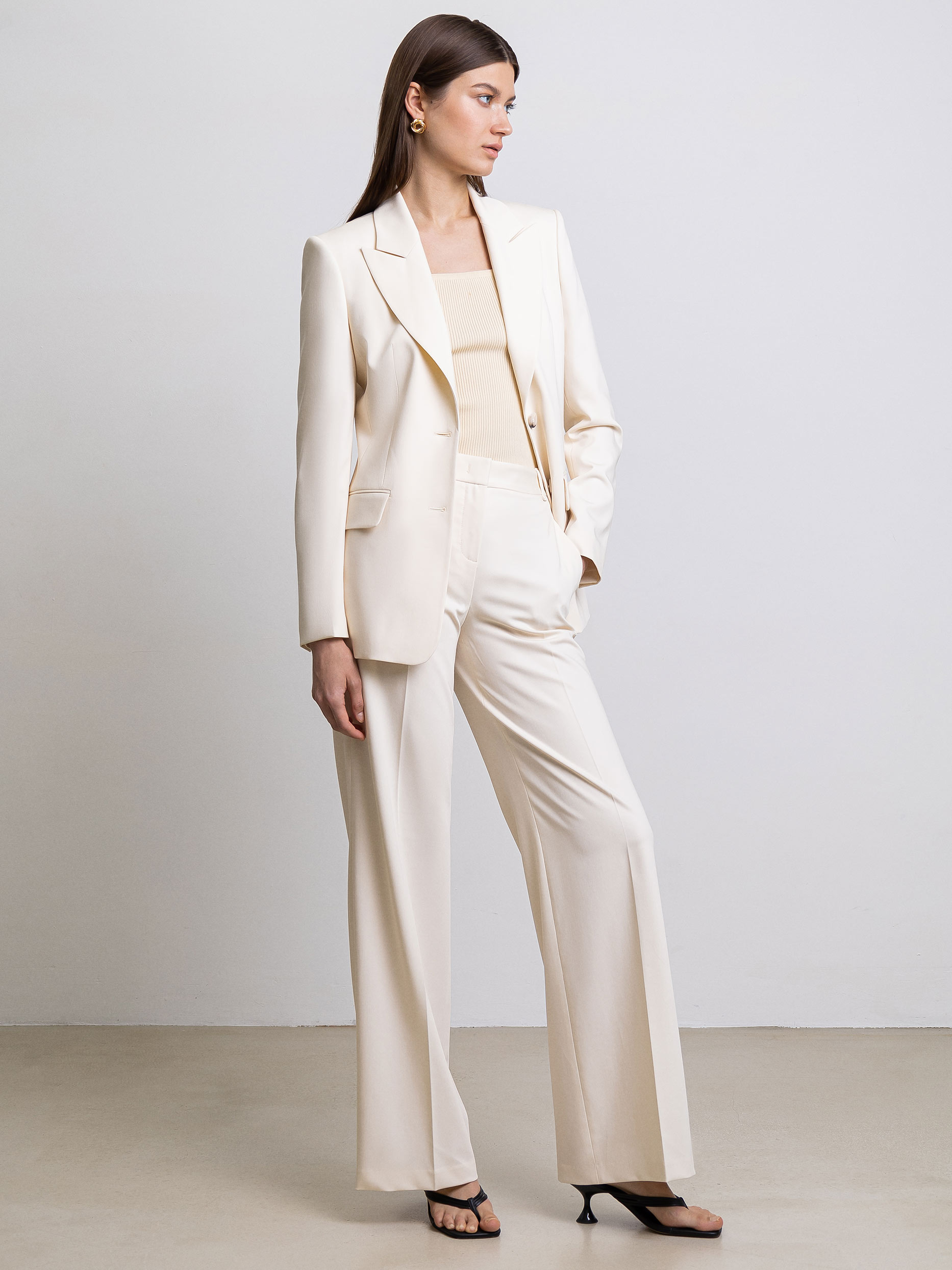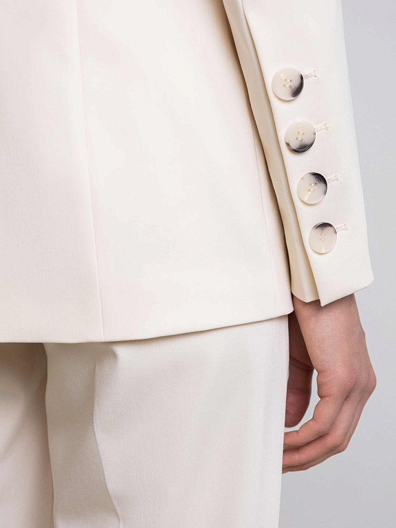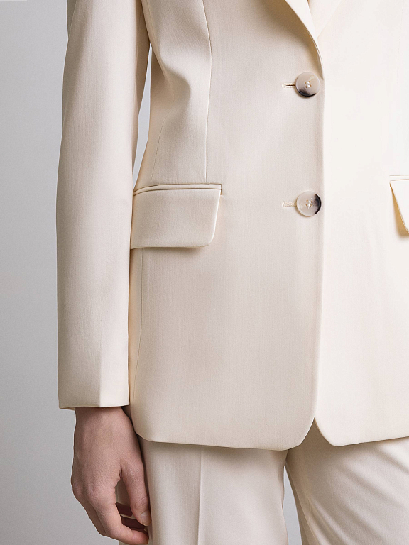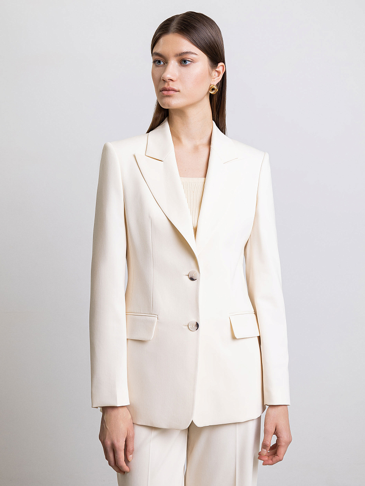 Однобортный жакет никогда не выйдет из моды, ведь он идеально подходит для работы и для мероприятий вне офиса. Костюмная ткань средней плотности не мнется и не вытягивается. Носите классический жакет отдельно или дополните образ парными брюками в тон.