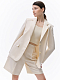 Прямой жакет классического кроя выполнен из смесового льна, благодаря чему такой элемент гардероба будет уместен не только в офисе, но и во время летнего отпуска. Акцентированные плечи и четкие линии придают образу строгости, но ткань средней плотности «в елочку» смягчает силуэт.