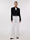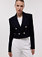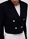 Двубортный жакет стал менее классическим за счет укороченной длины. Плотный фактурный текстиль не вытягивается и хорошо держит форму. Благодаря золотистой фурнитуре жакет выглядит празднично и сможет дополнить даже вечерний наряд.