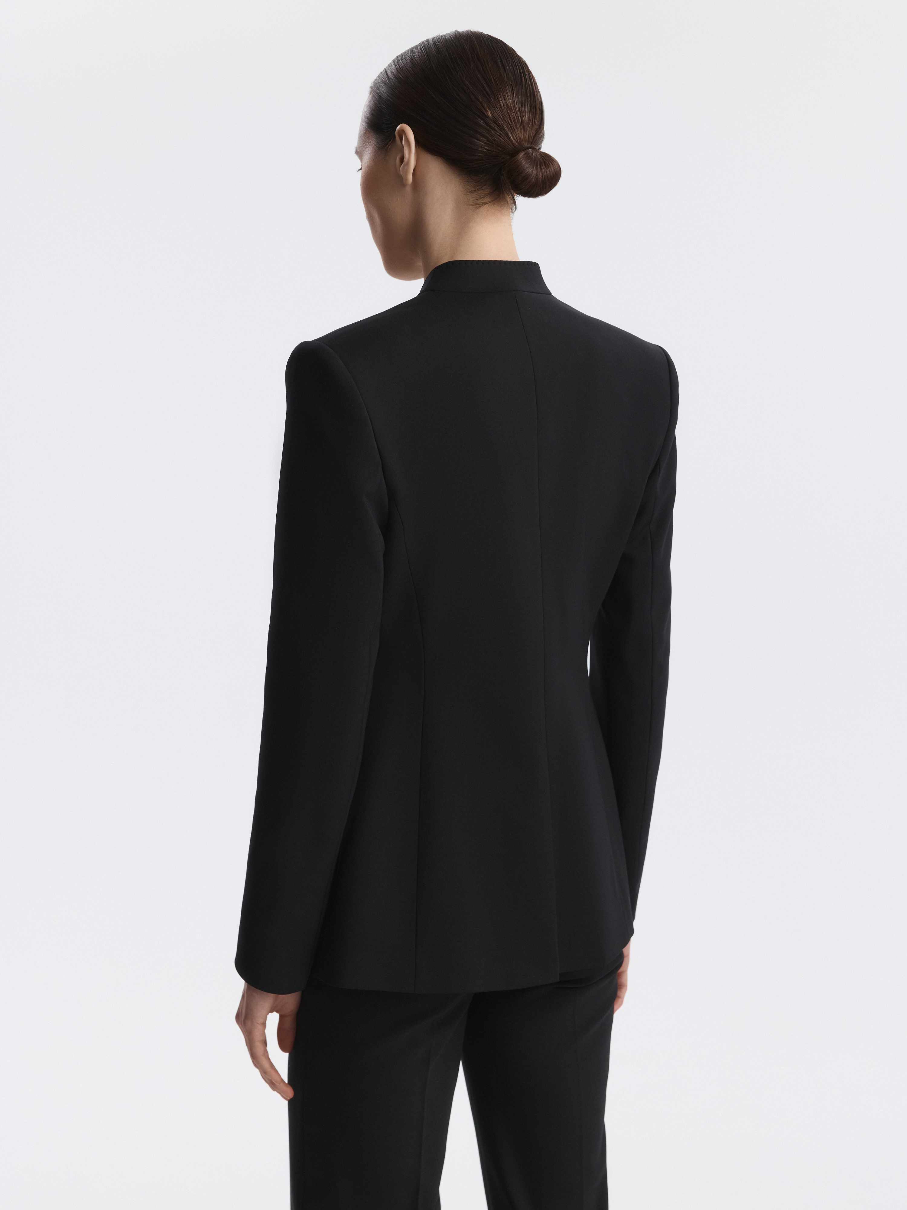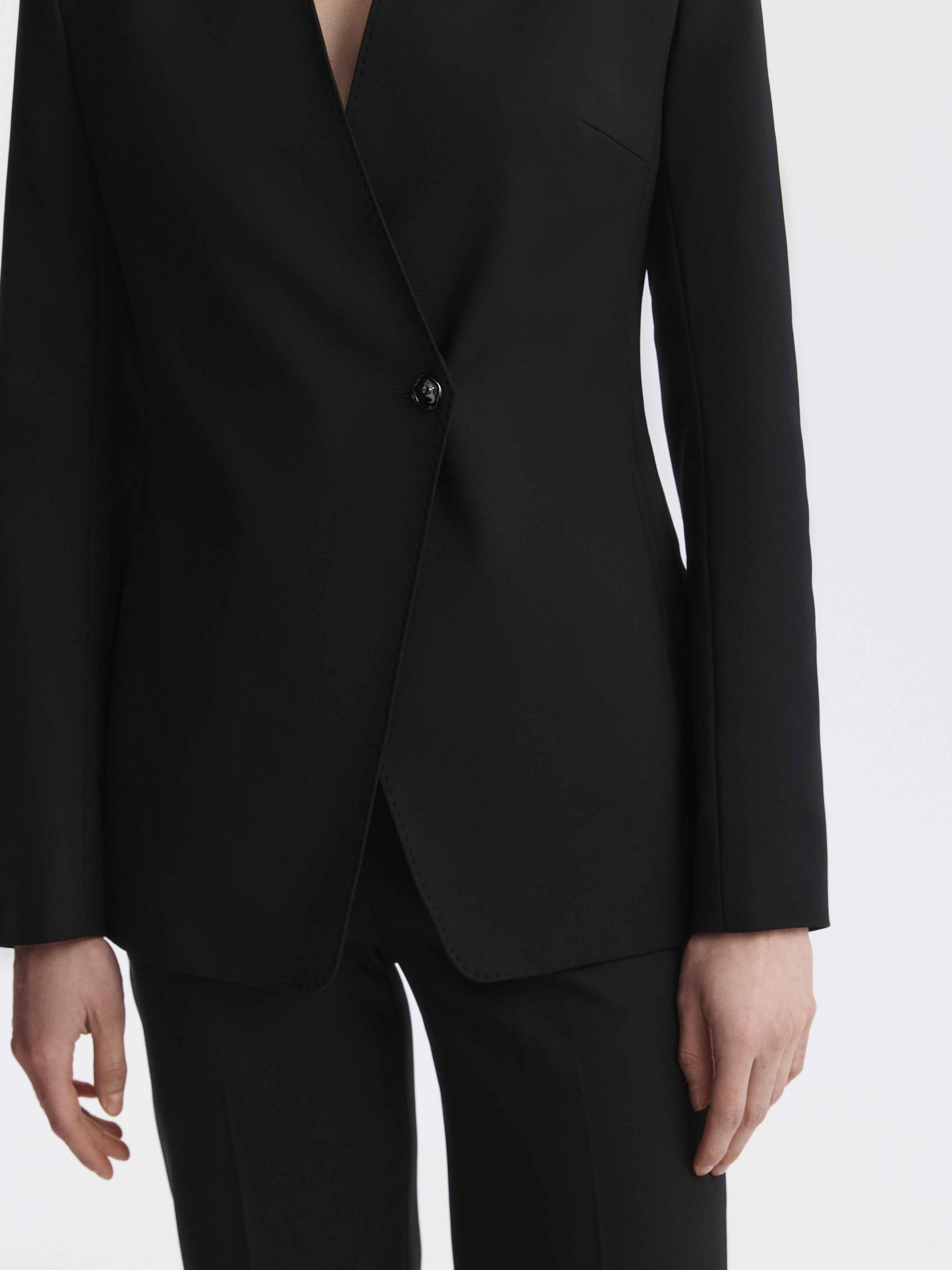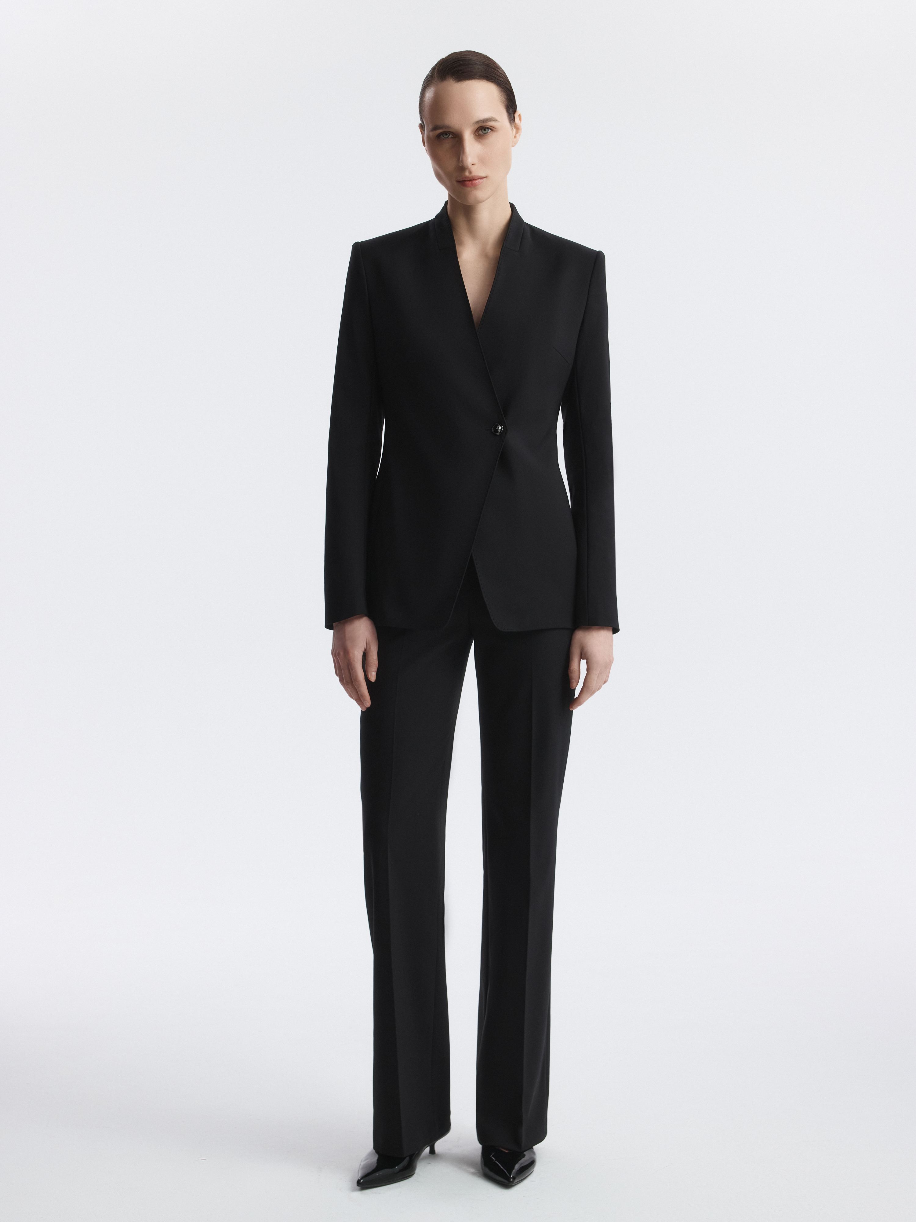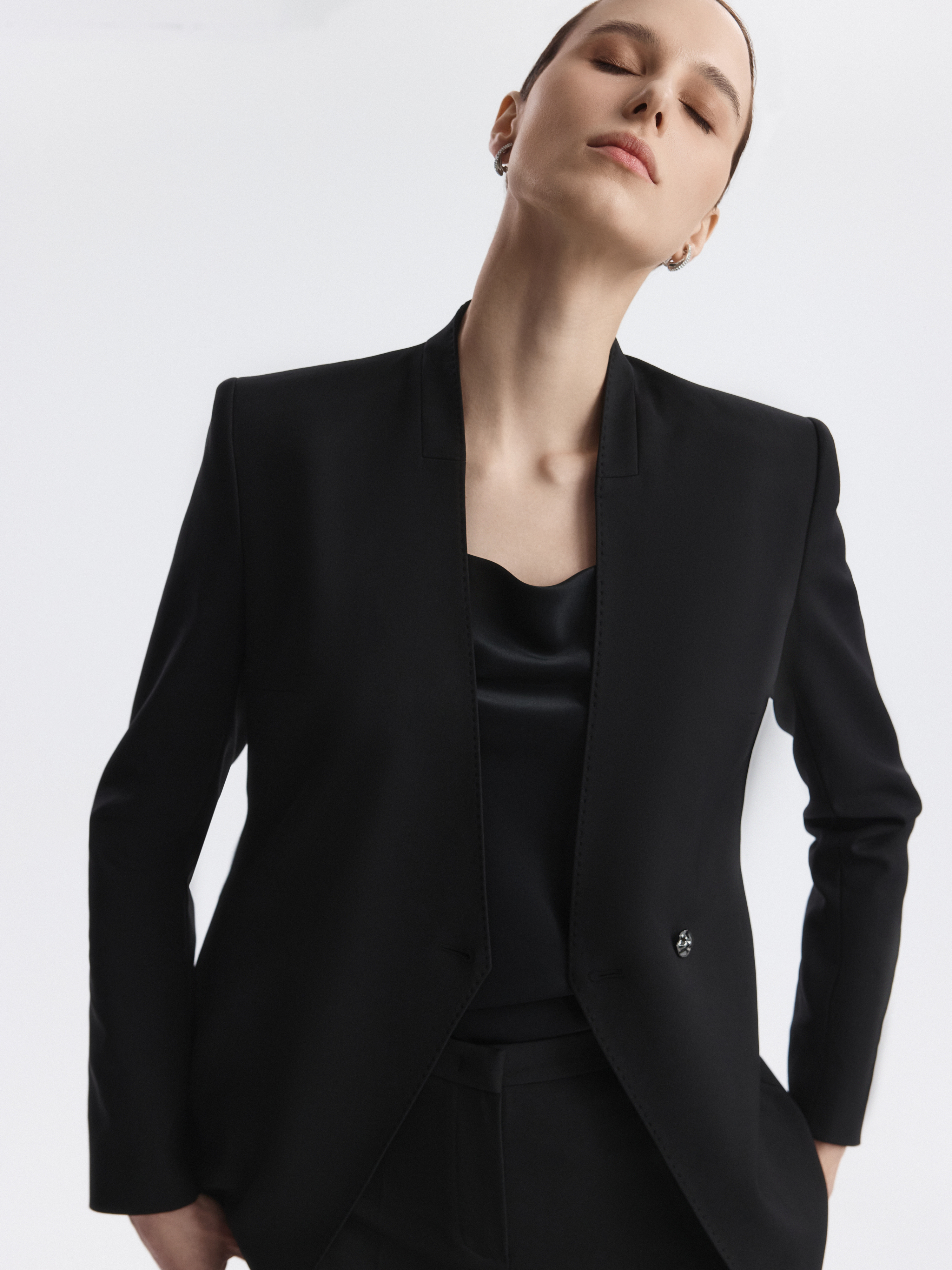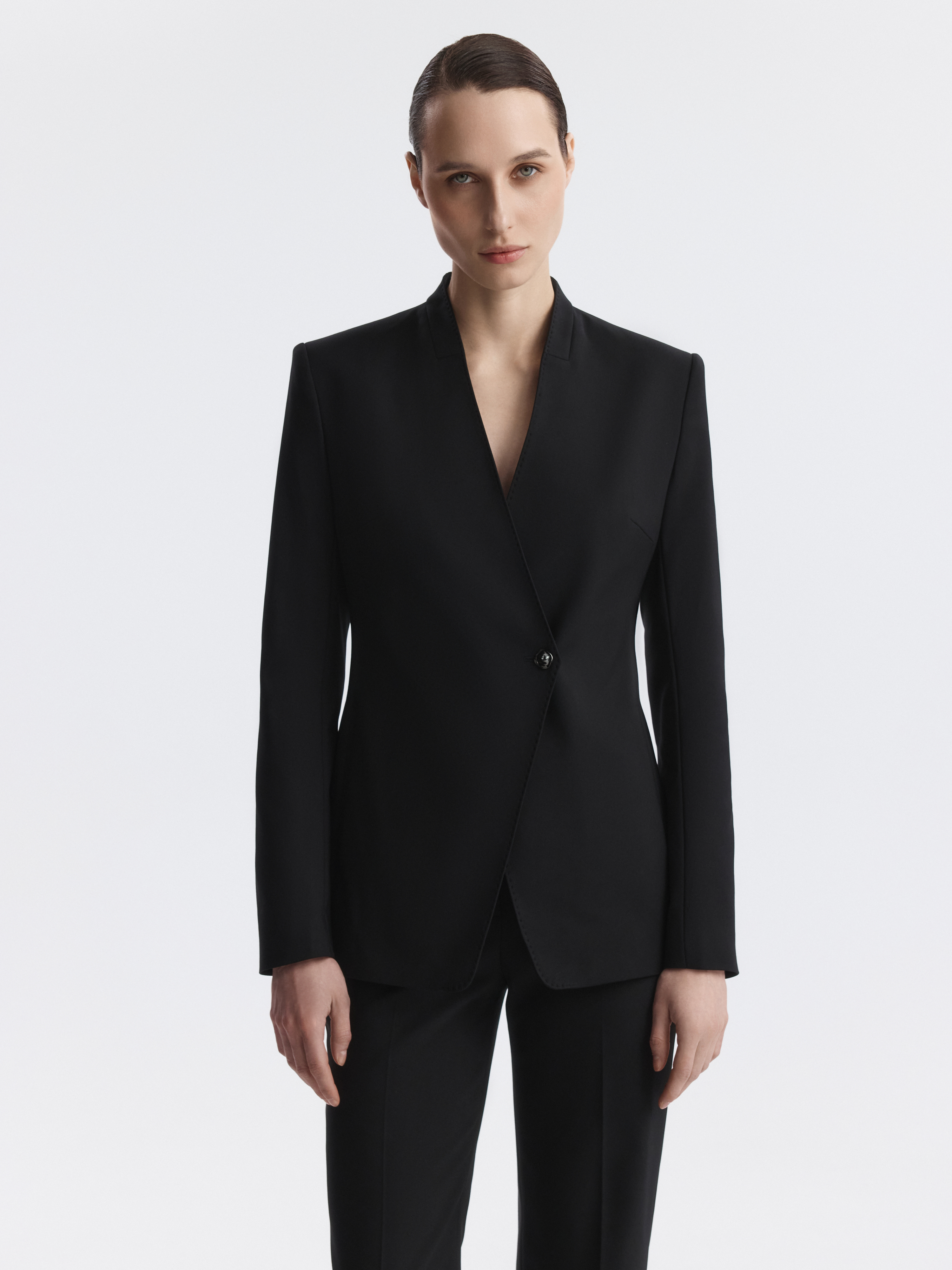Жакет с подчеркнутой талией и асимметричной застежкой выглядит уместно и на деловых переговорах, и на торжественном ужине. В меру плотный текстиль на основе хлопка не тянется, а тонкая подкладка из вискозы дарит комфортную посадку.