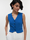 Жилет приталенного кроя станет прекрасным дополнением к брючному костюму, но будет хорошо смотреться и соло в качестве топа. Плотный фактурный текстиль из поливискозы долговечный: он не мнется и не вытягивается.