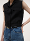 Укороченный жилет с английским воротником можно носить как центральный элемент образа или соединить с водолазкой. Изделие из костюмной поливискозы комфортно прилегает и не вытягивается. Модель сочетается с любым базовым низом, но особенно безупречно будет смотреться с парными брюками.