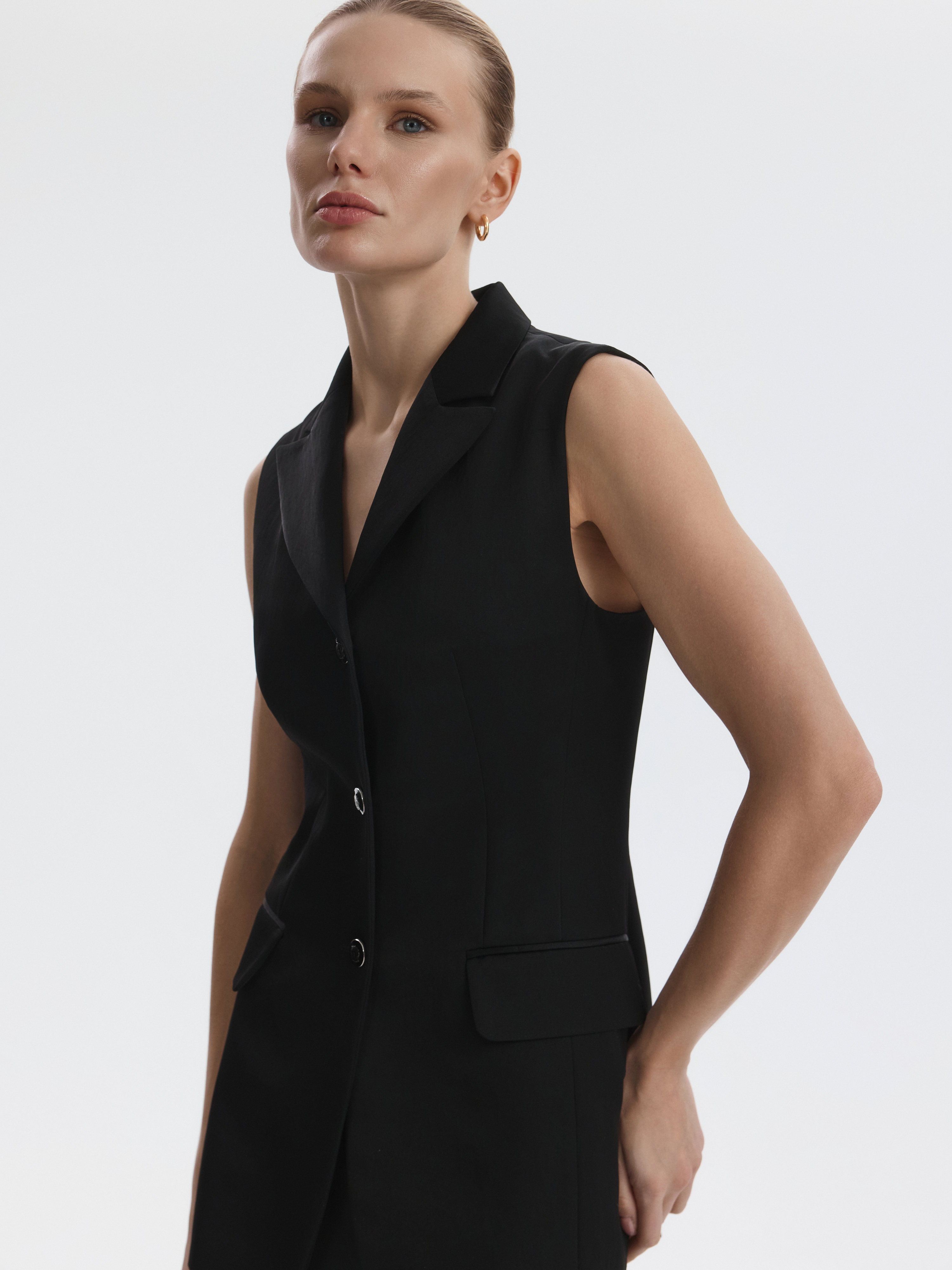 Атласный жилет предлагает решения для разных событий: от деловой встречи до выхода в свет. Плотный шелковистый текстиль не тянется и обладает износоустойчивостью, а гладкая подкладка дарит комфортное прилегание даже без нижнего слоя.