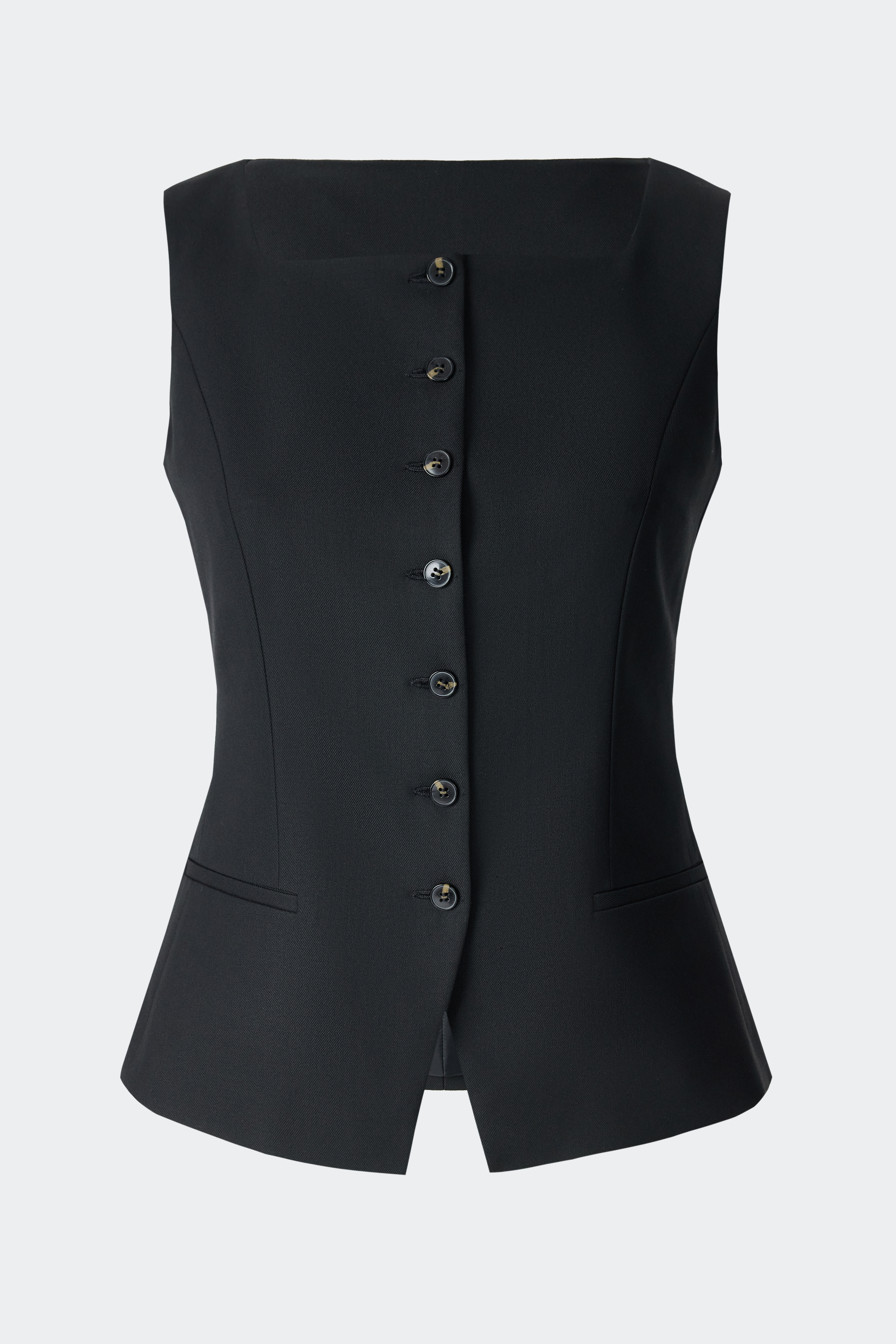 Приталенный жилет с квадратным вырезом переосмысляет деловой стиль. Плотный гладкий текстиль из поливискозы не тянется и не мнется, а подкладка дарит комфортное прилегание. Костюмный жилет выглядит строго и элегантно даже без нижнего слоя.