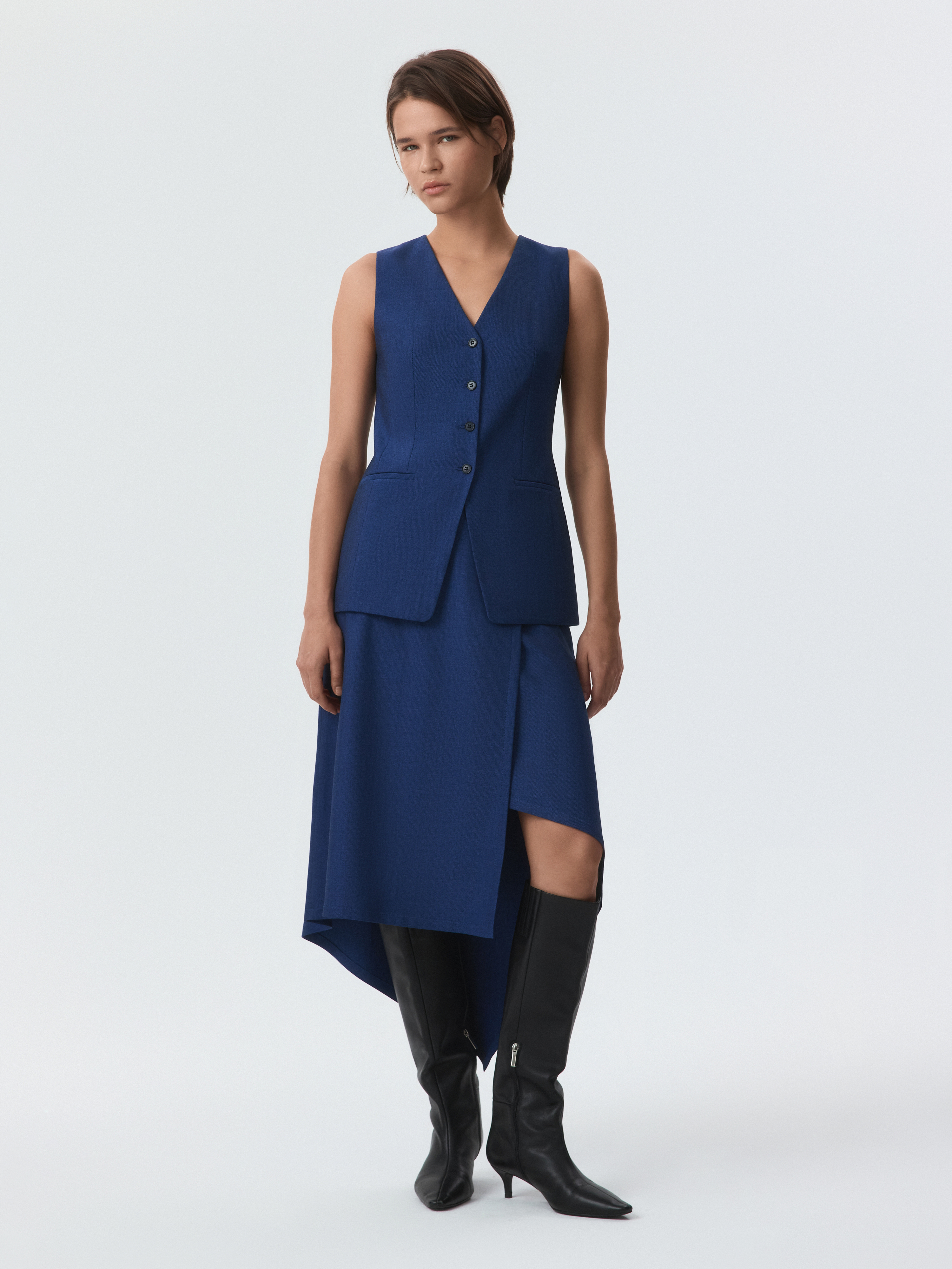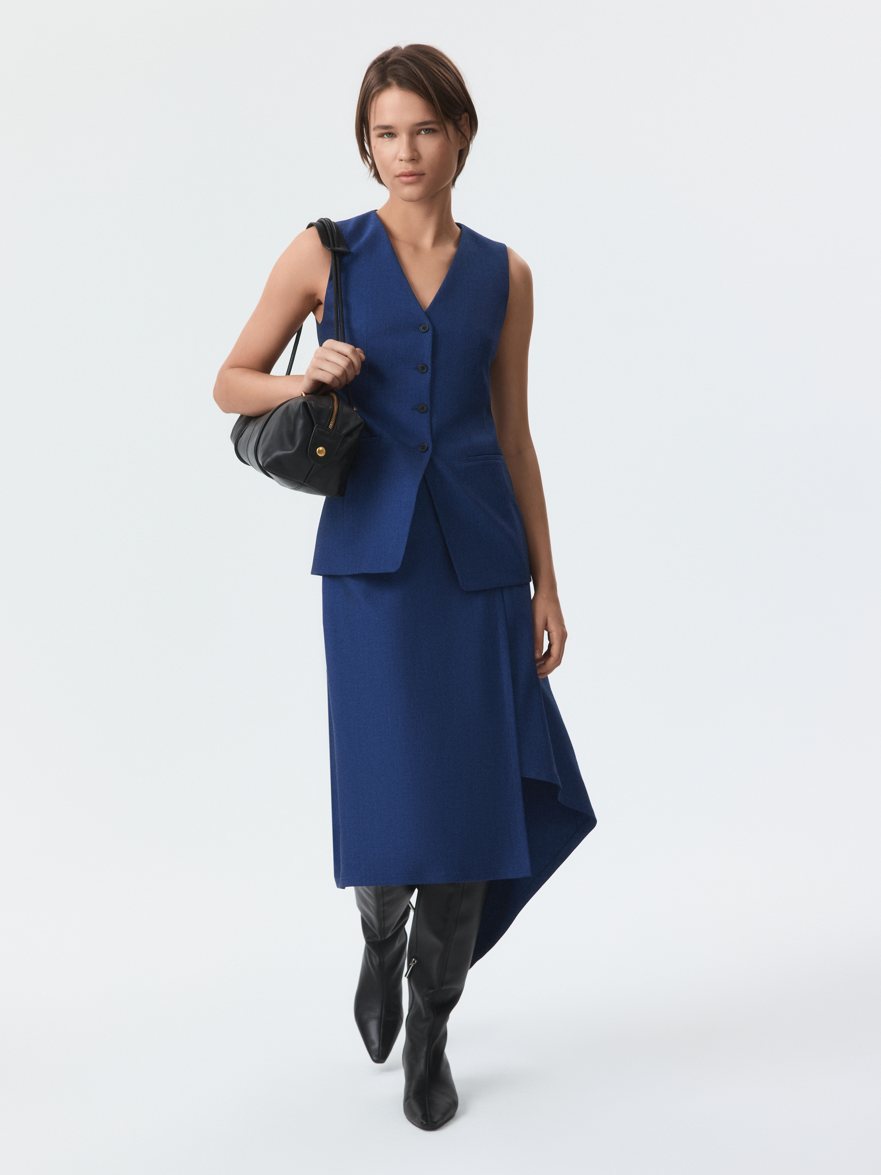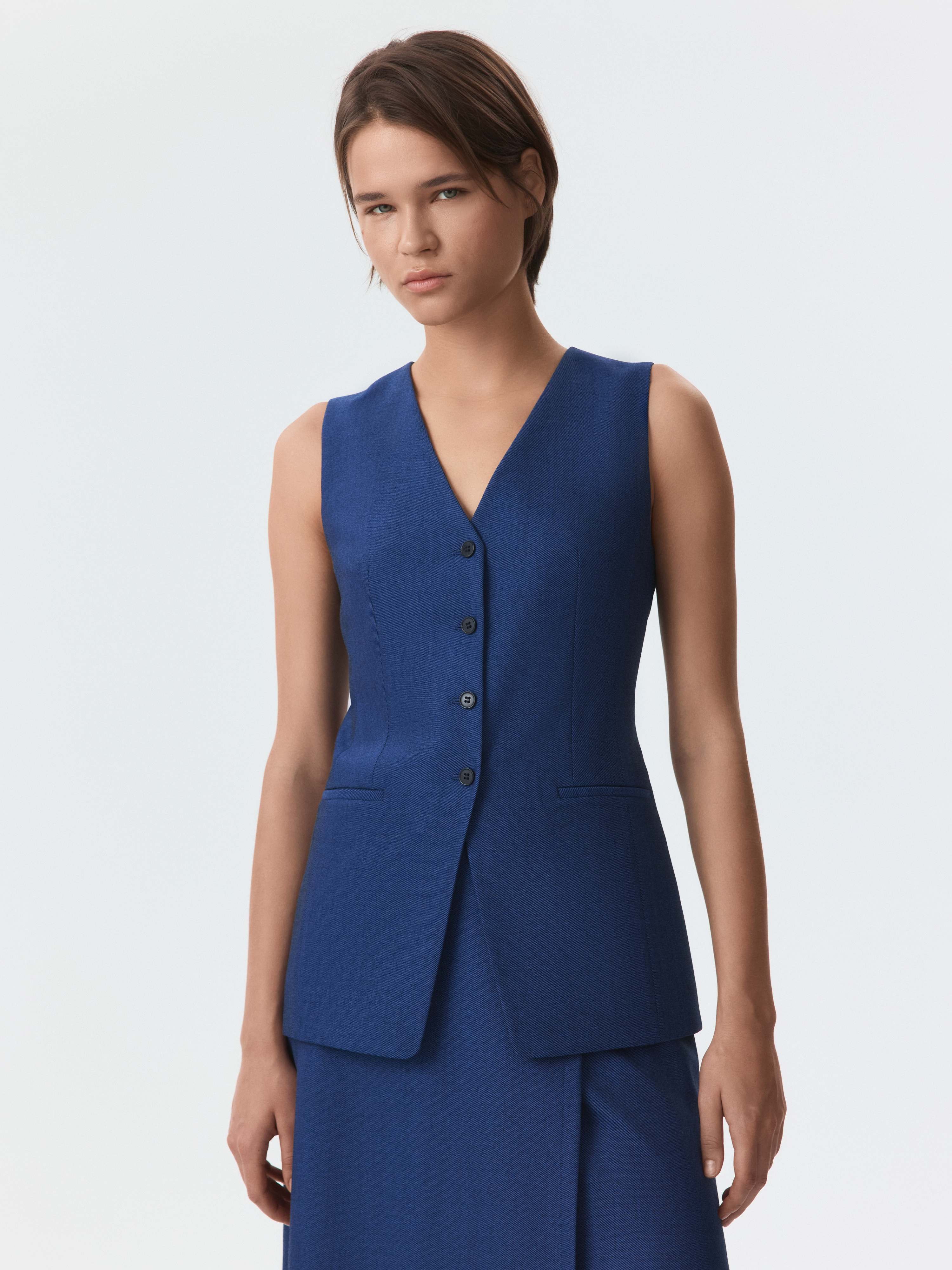 Костюмный жилет – классика на каждый день. В меру плотный текстиль из поливискозы не тянется и не требует особого ухода, а благодаря гладкой подкладке комфортно прилегает к телу даже без нижнего слоя. Дополните образ юбкой или брюками из аналогичного материала.