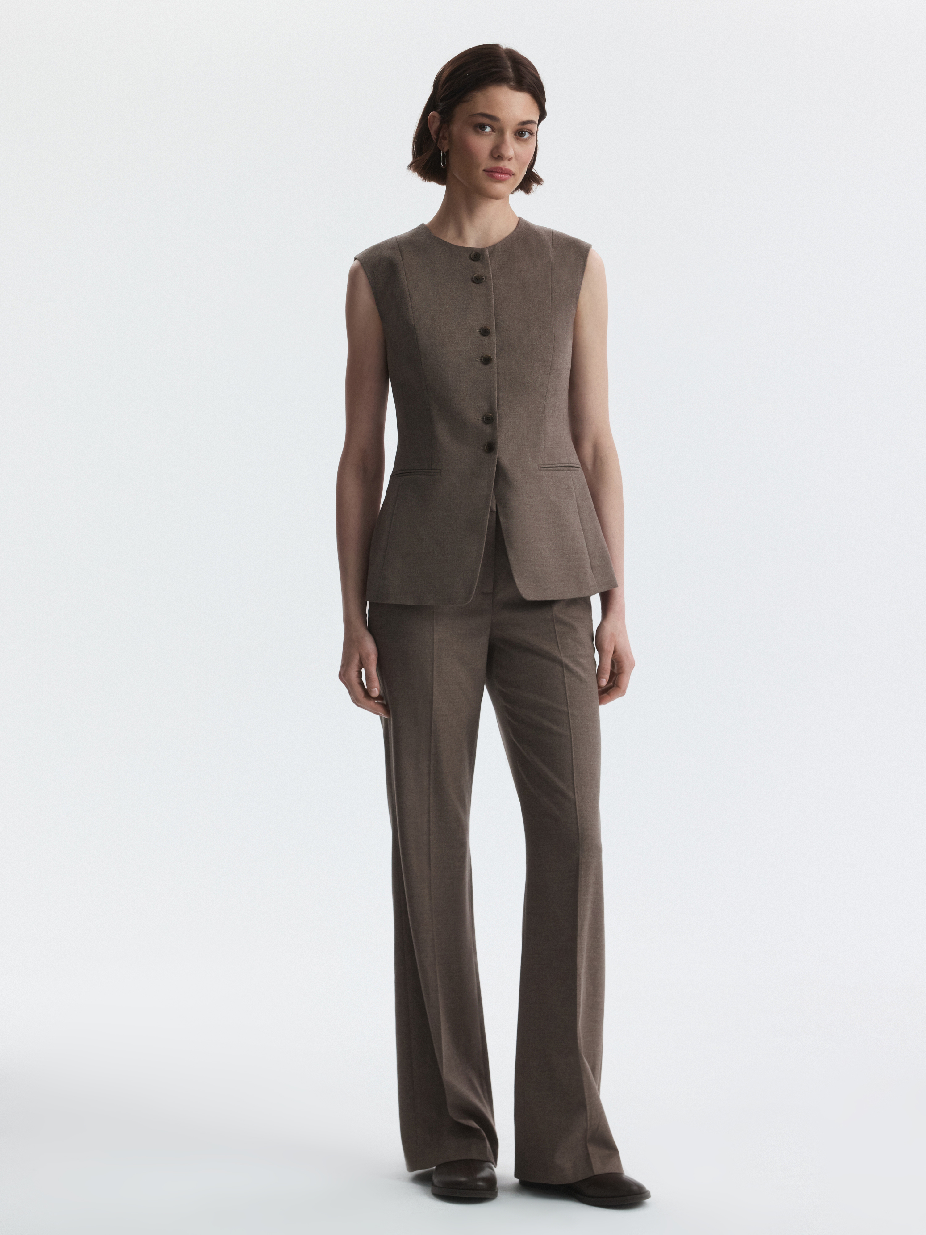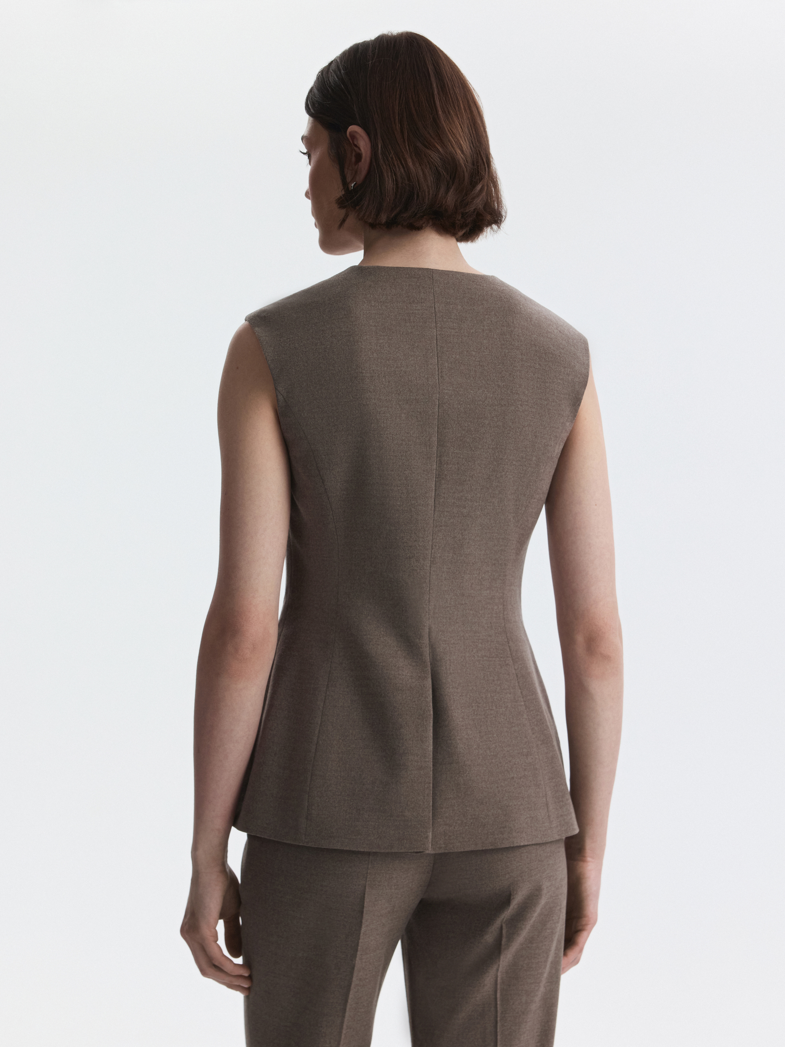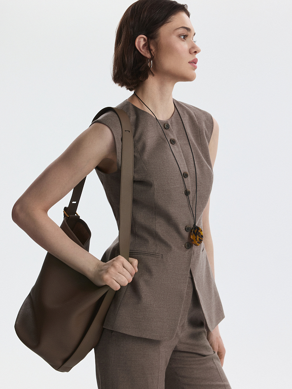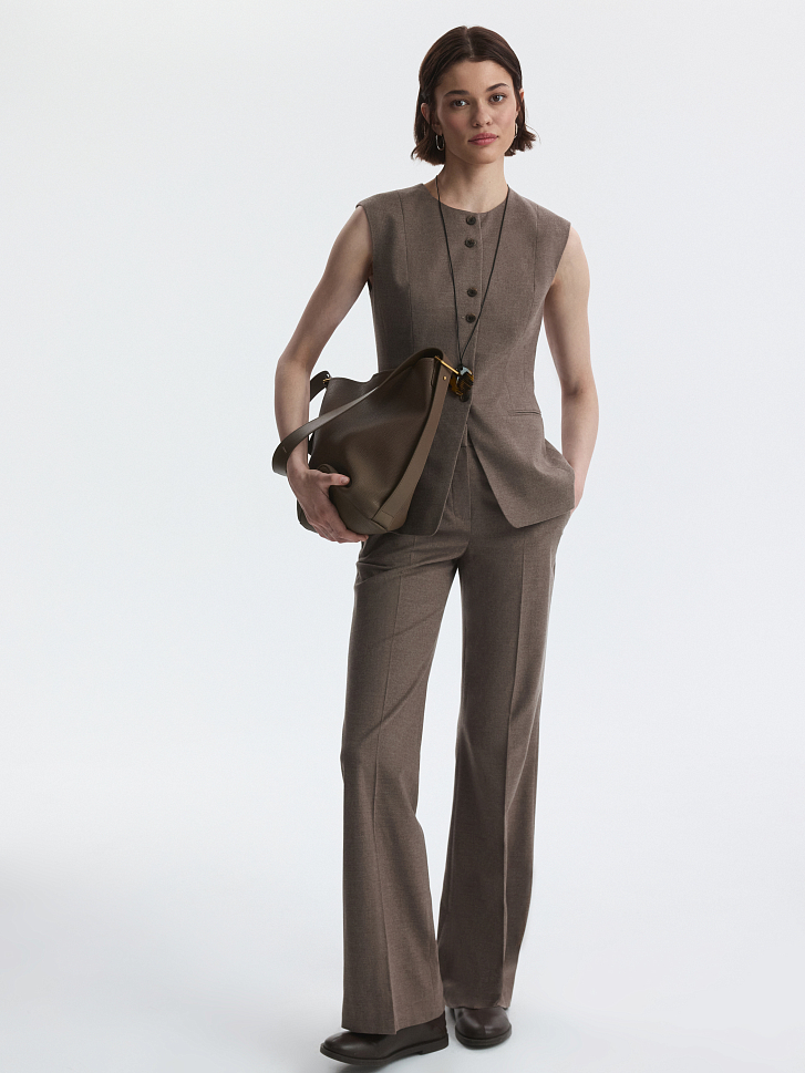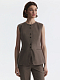 Жилет приталенного кроя с круглым вырезом адаптируется под разные форматы: от офисного образа до вечернего. В меру плотный костюмный текстиль не тянется и обладает износоустойчивостью, а гладкая подкладка дарит комфортное прилегание даже без нижнего слоя.