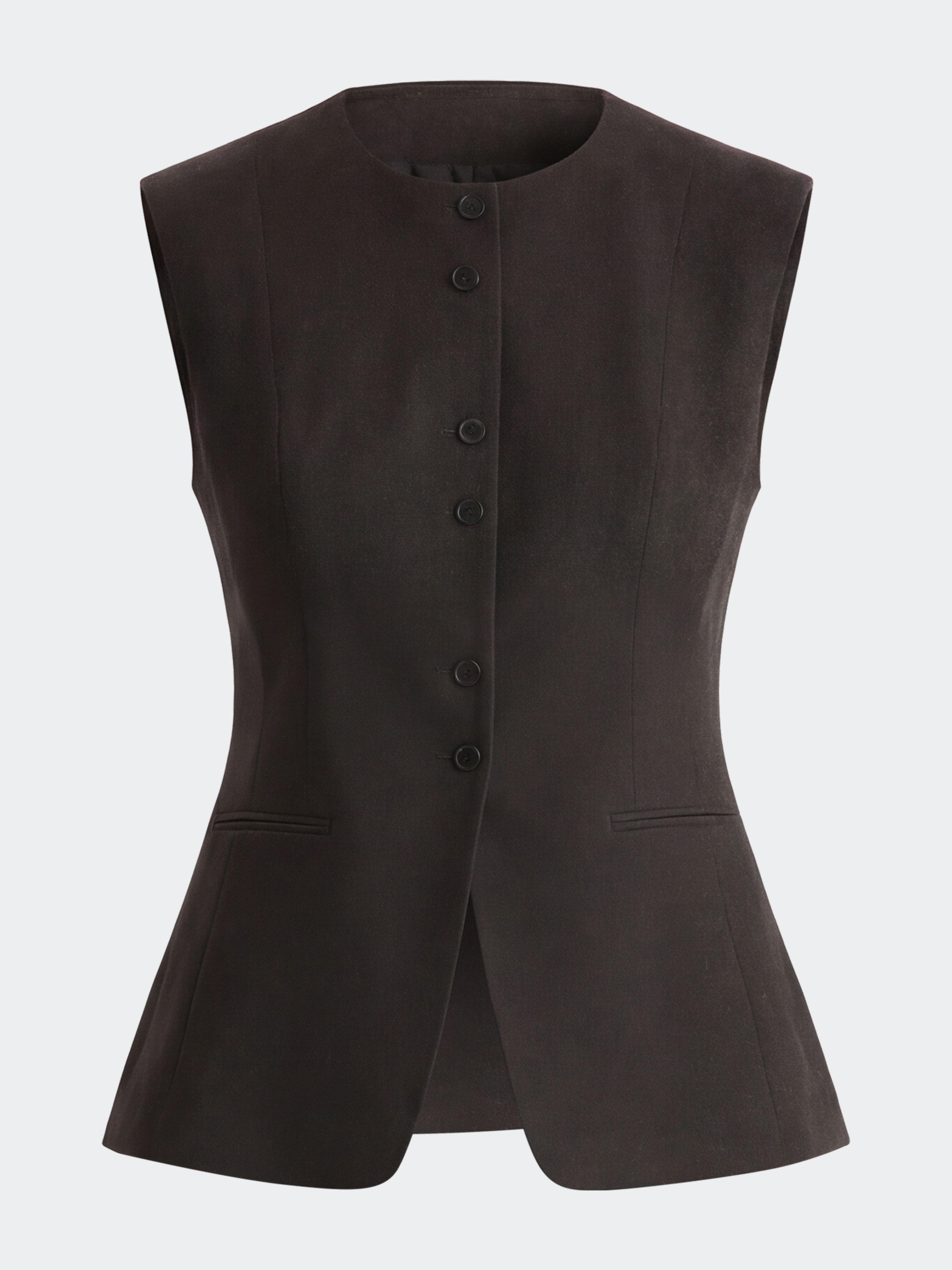 Приталенный жилет с круглым вырезом предлагает решения для разных событий: от деловой встречи до выхода в свет. В меру плотный костюмный текстиль не тянется и обладает износоустойчивостью, а гладкая подкладка дарит комфортное прилегание даже без нижнего слоя.