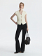 Приталенный жилет с рукавами – новая интерпретация классической модели. Плотный атласный текстиль с шелковистой на ощупь фактурой не тянется и обеспечивает посадку по фигуре, а гладкая подкладка комфортно прилегает к телу. Золотые фигурные пуговицы играют роль акцентов.
